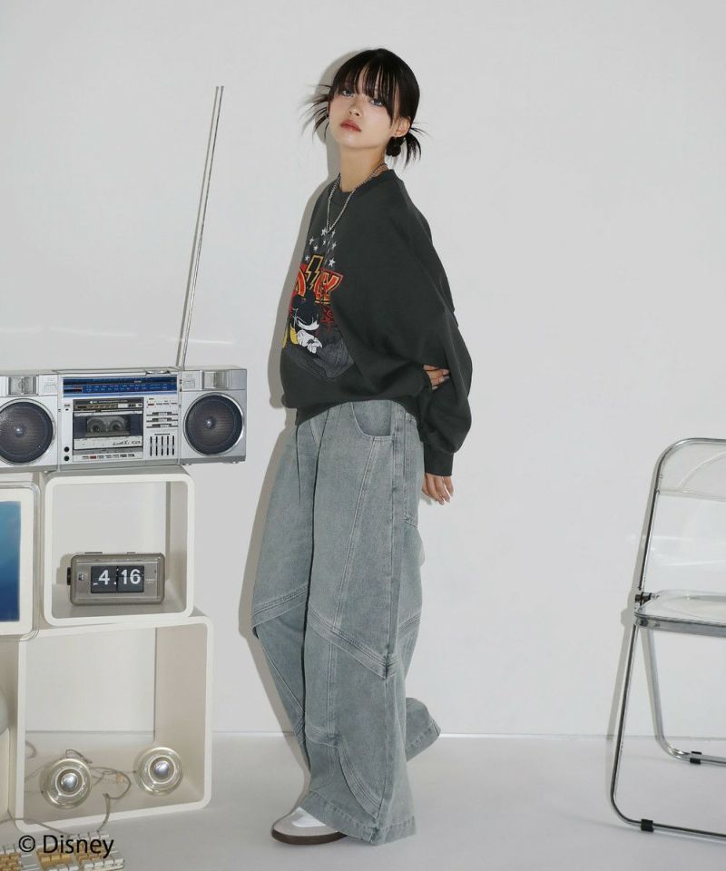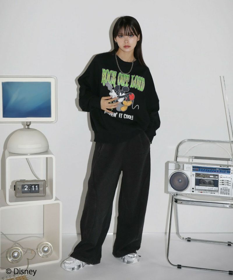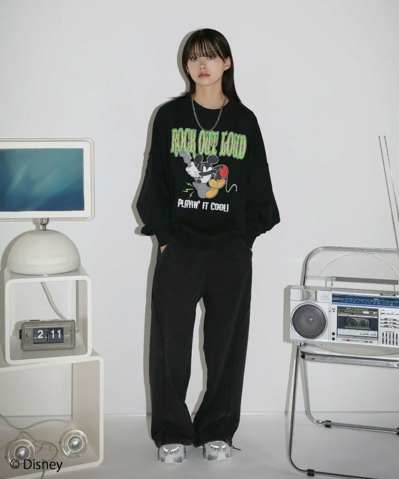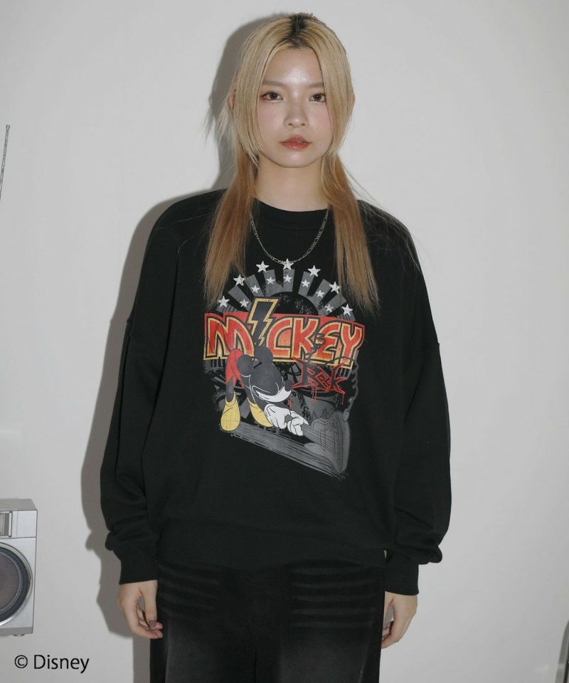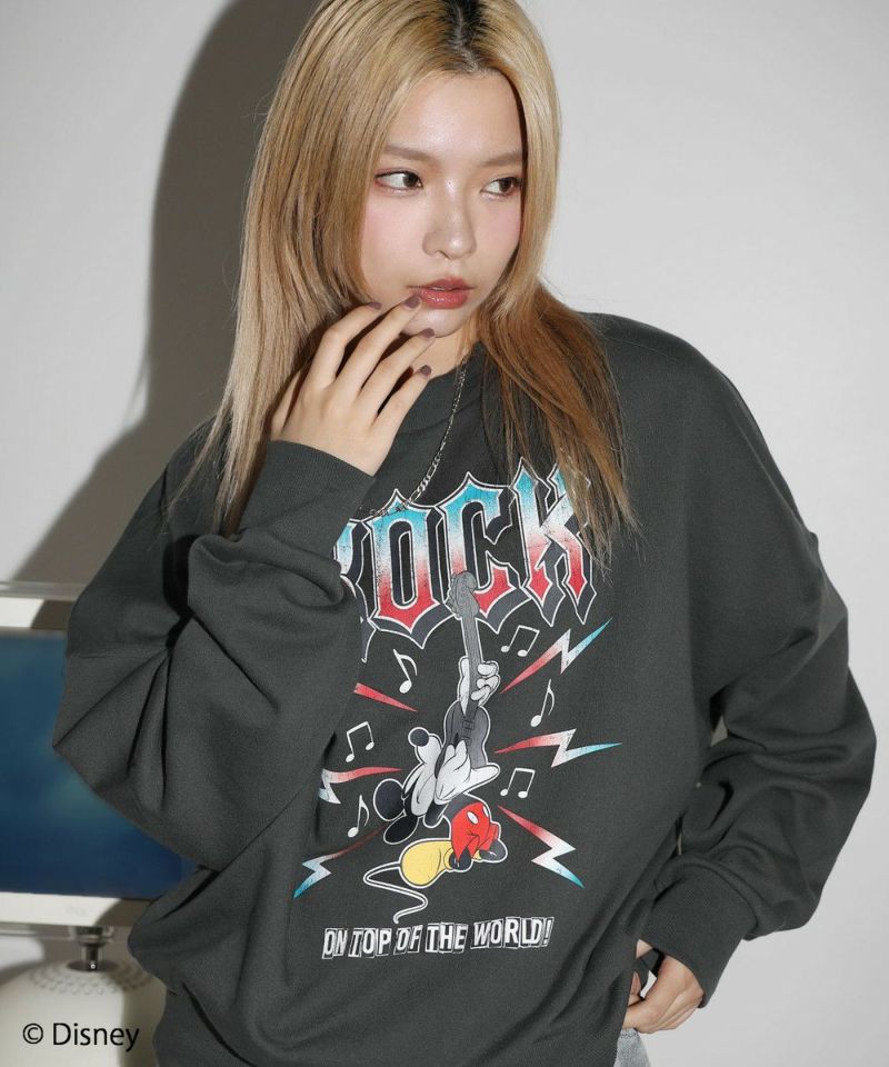 定番のオーバーサイズスウェットに、ヴィンテージ感のあるミッキーマウスとROCKの文字をプリントしました。落ち着いたブラックとグレーのベースカラーに、インパクトのあるプリントが目を惹く一着です。リラックスできるサイズ感で街着はもちろんルームウェアとしても活躍します。カラーとプリントデザインの違う6種類の中からお気に入りの一着を選ぶのも楽しめ、ペアルックやお揃いコーデにもオススメ。ゆったりとしたシルエットで、メンズ・レディース問わず着ていただけます。