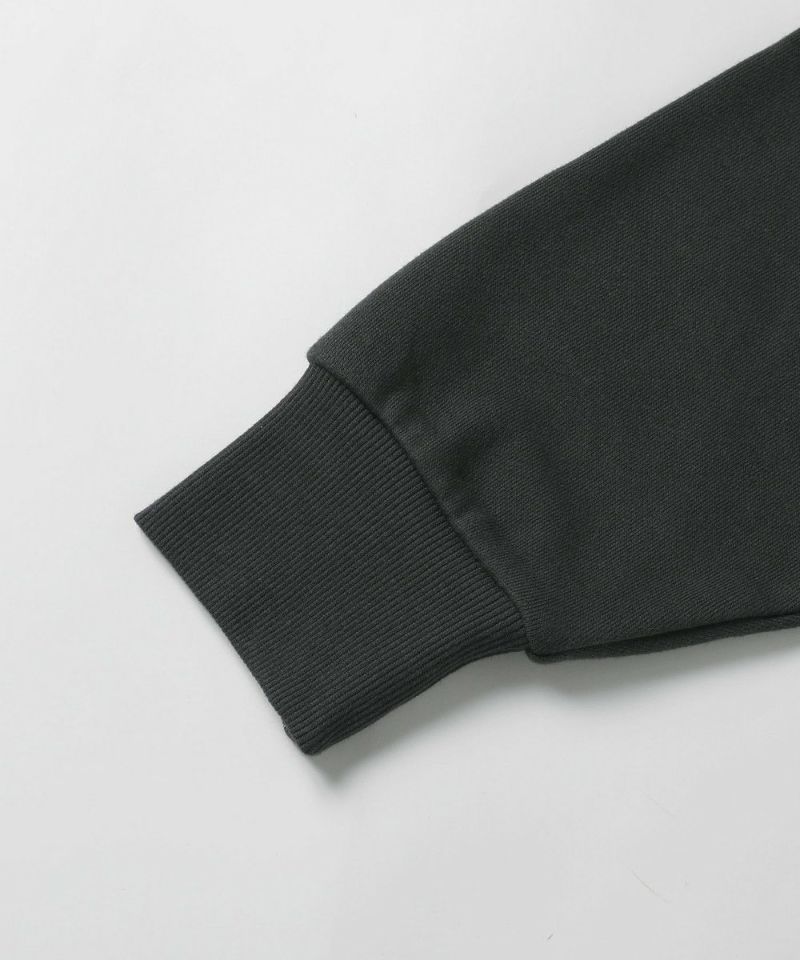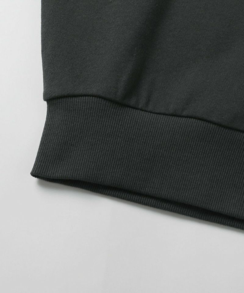 綿100%の裏毛素材を使用。程よく柔らかく肌なじみの良い素材で、デイリーに着まわせます。リブ部分はウレタン混の為、優しくフィットします。