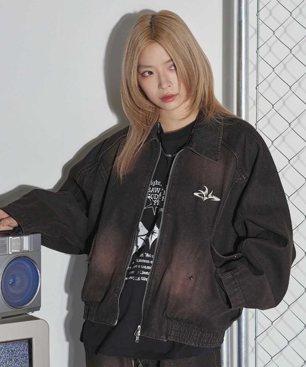 12ozヴィンテージライクメタルロゴジップアップショートブルゾン
