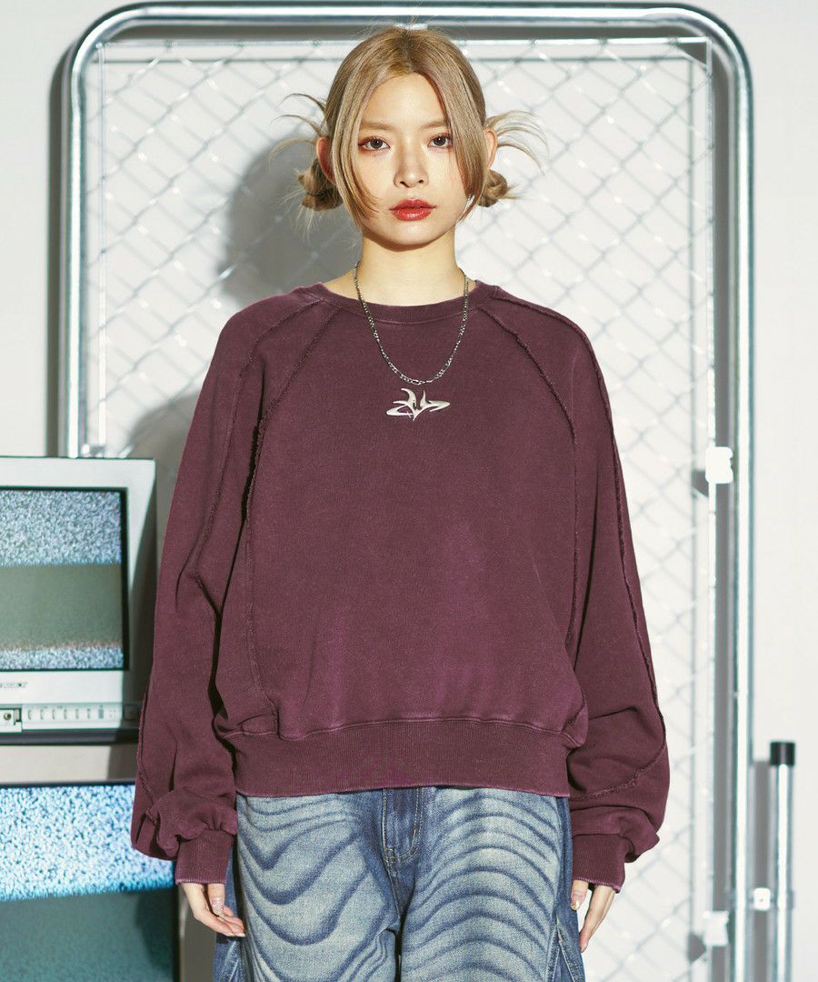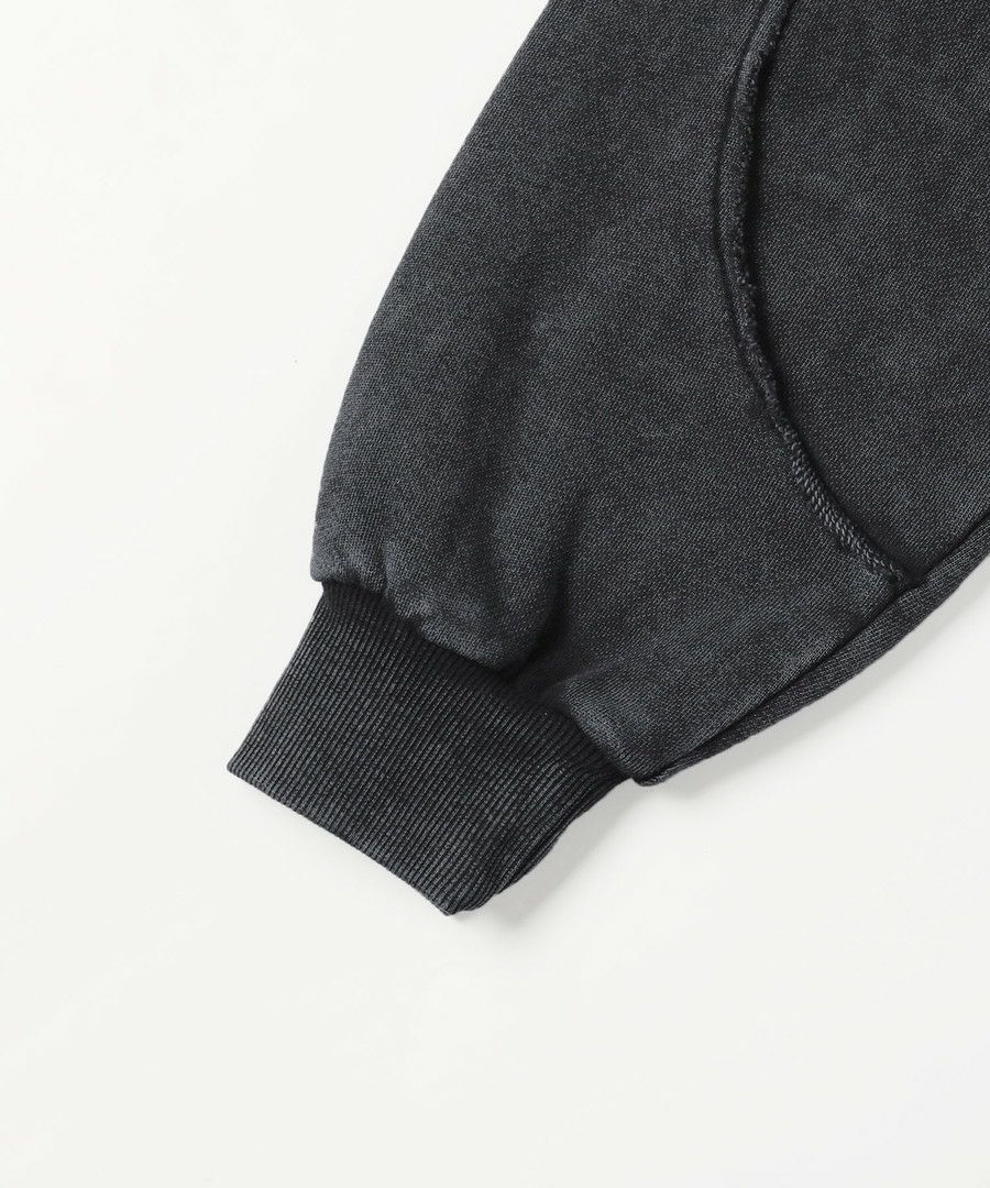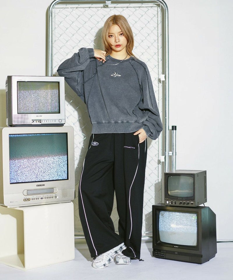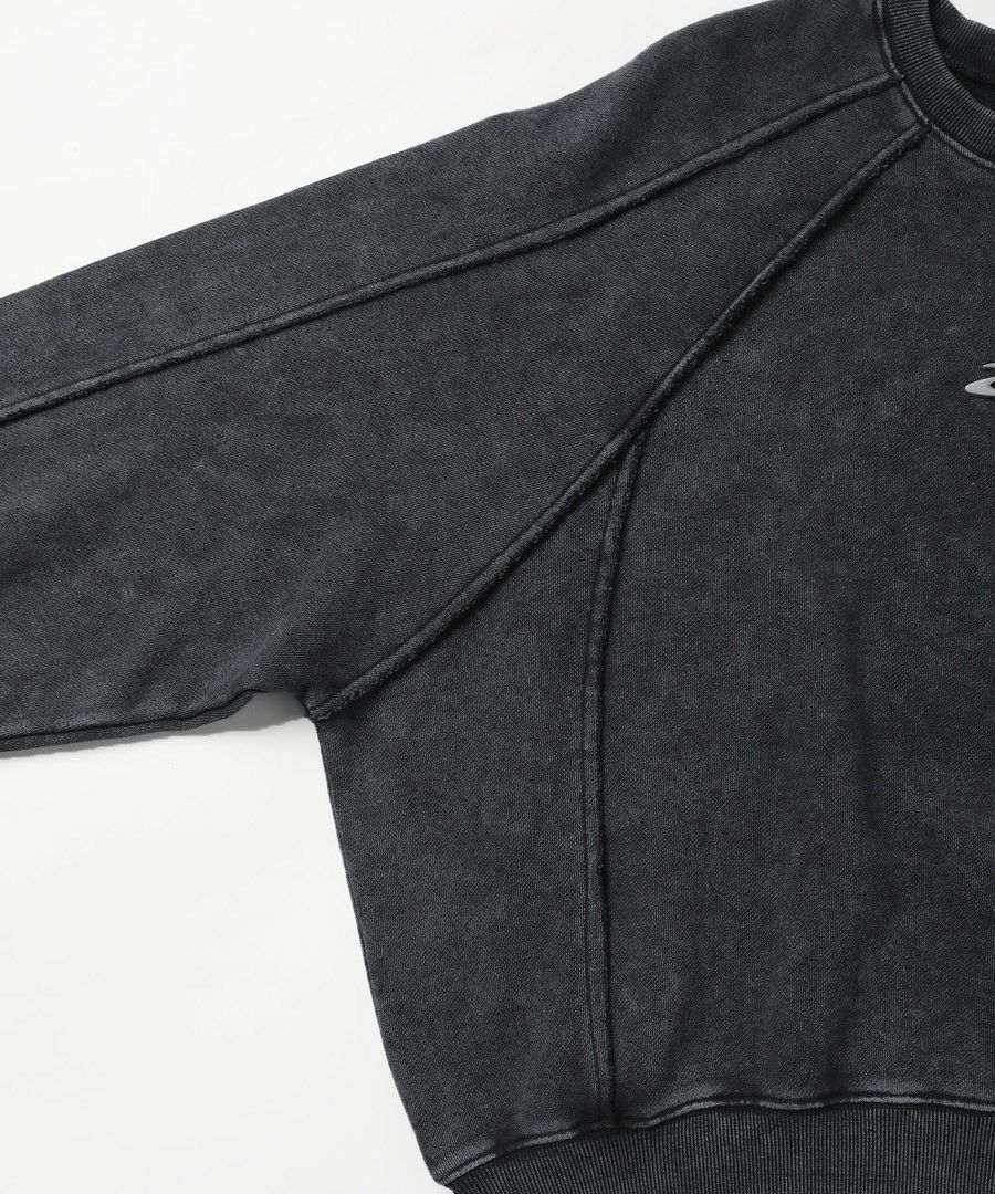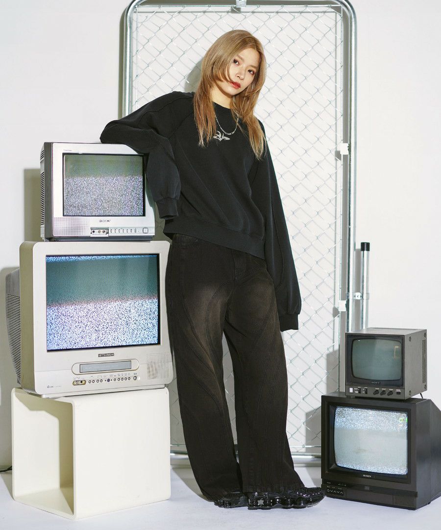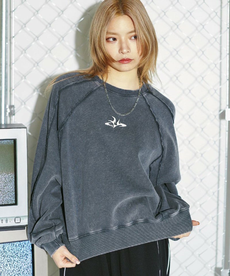 オーバーダイ/ウォッシュ加工オーバーサイズウェーブ切替ワイドストレートバギーデニムパンツ 11.5oz