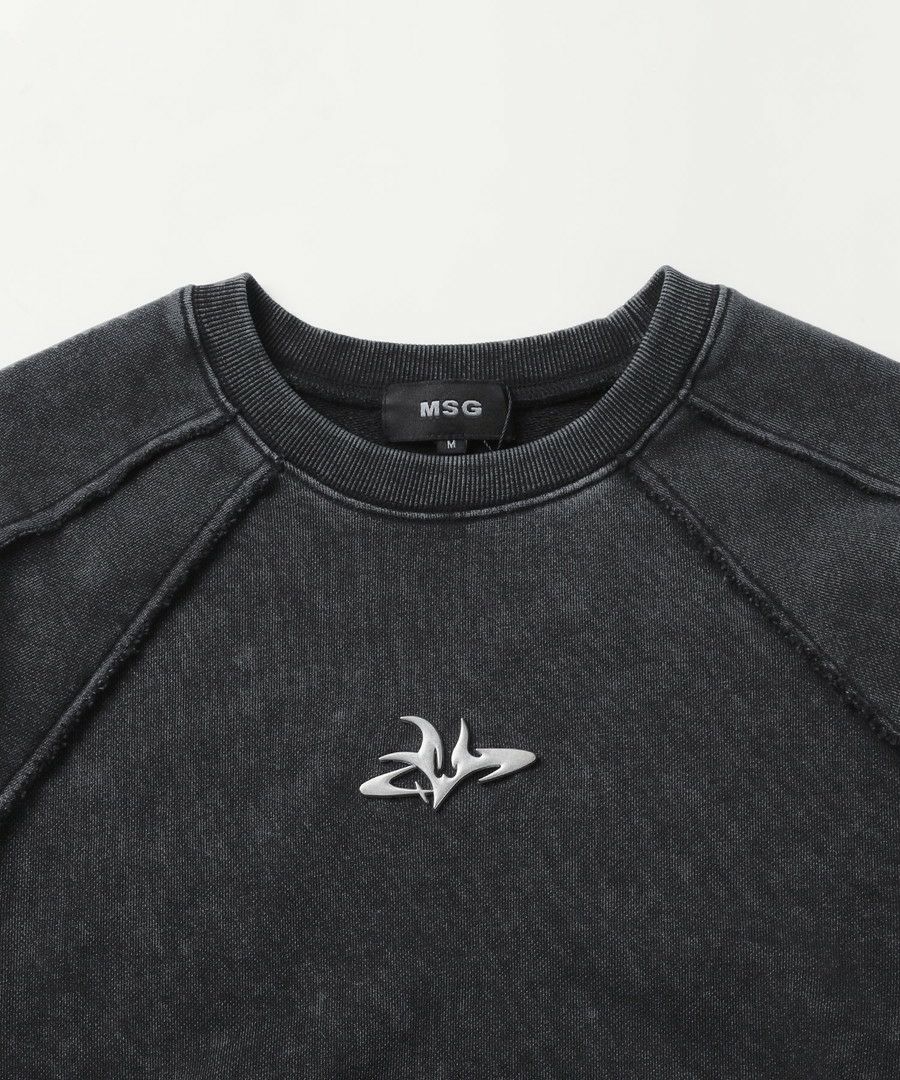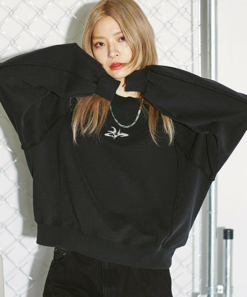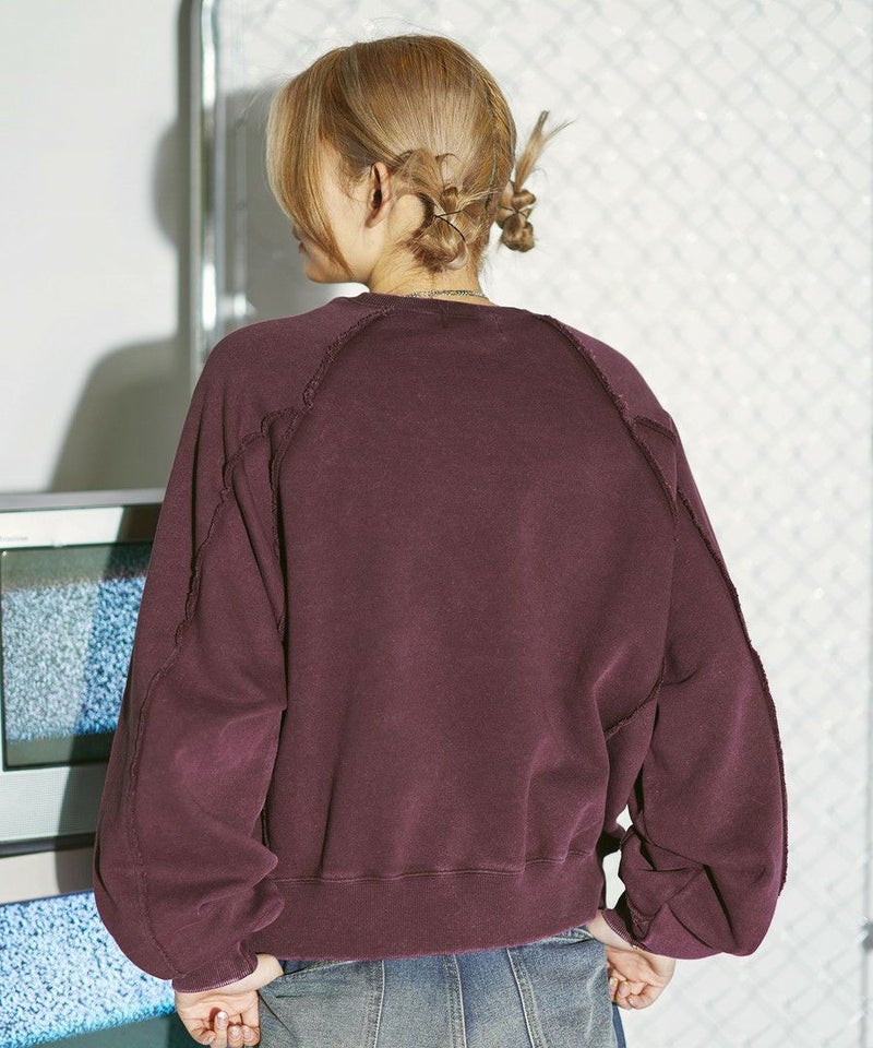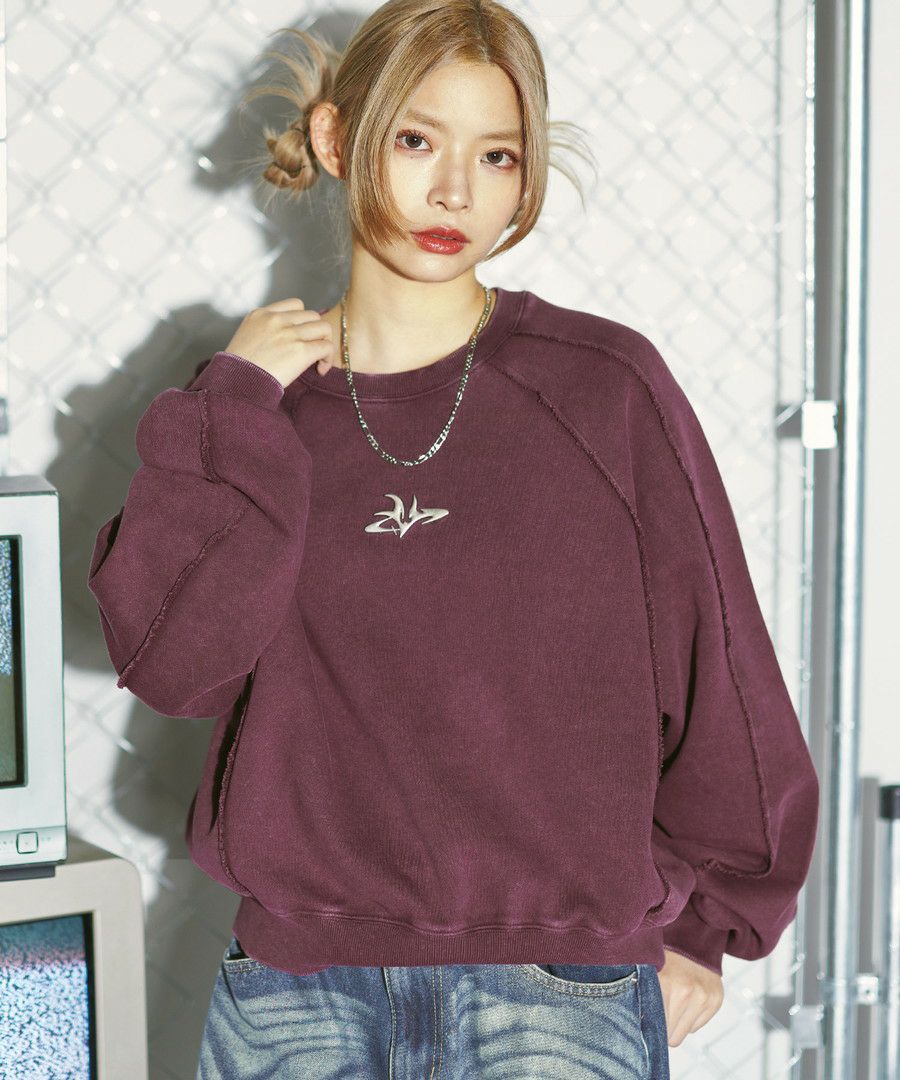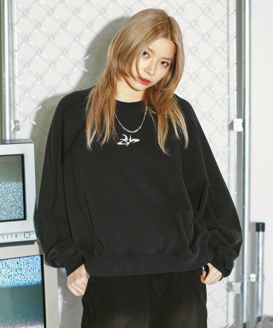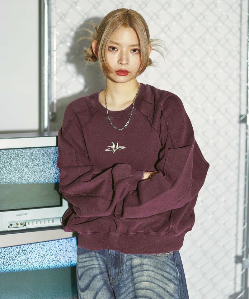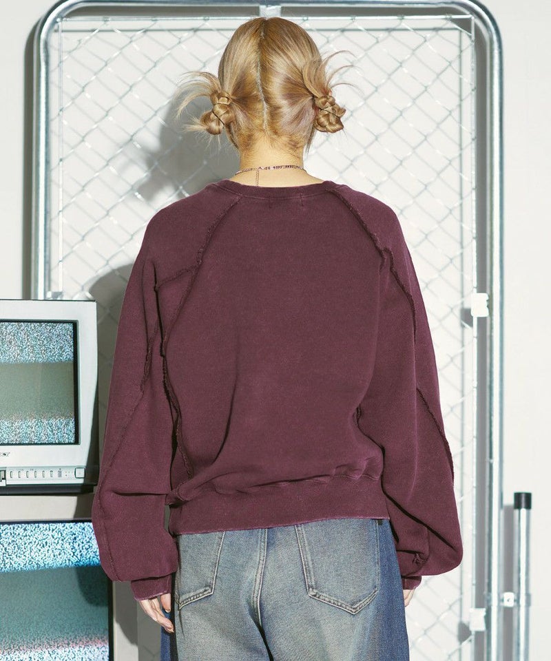 オーバーダイ/ウォッシュ加工オーバーサイズウェーブ切替ワイドストレートバギーデニムパンツ 11.5oz