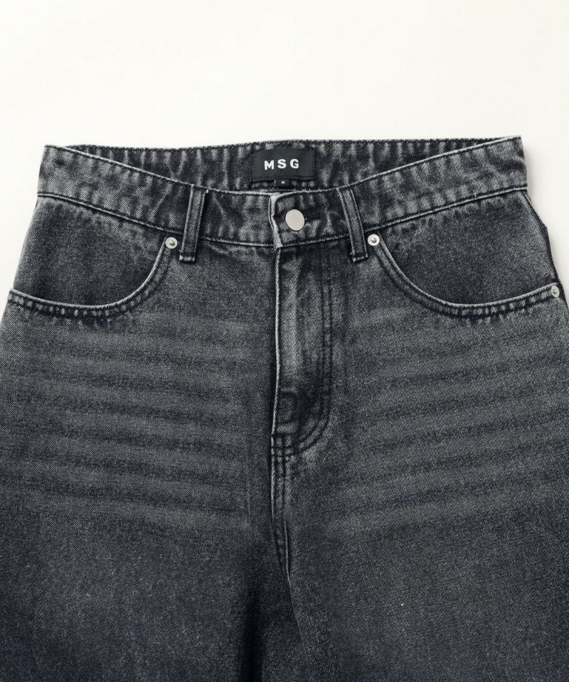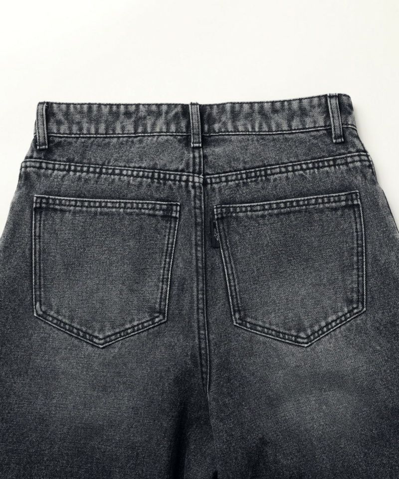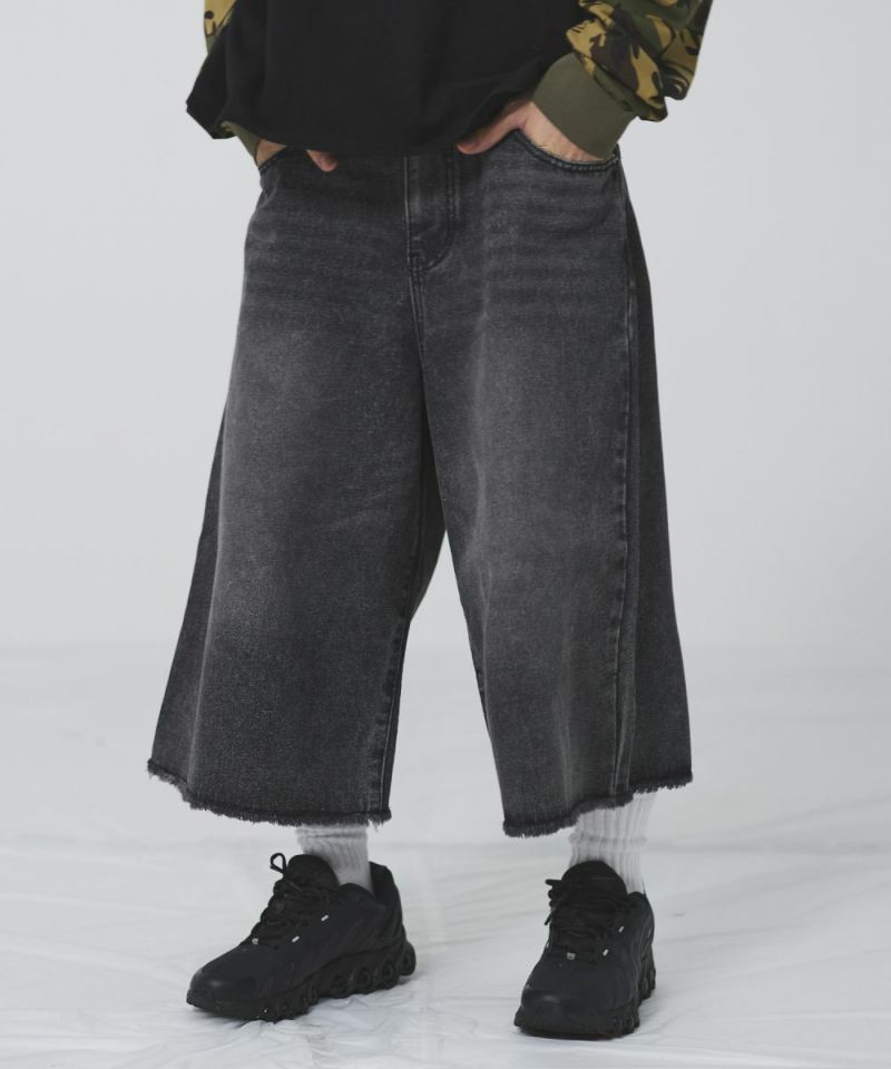 ・ヴィンテージ加工を施したワイドデニムショートパンツ。