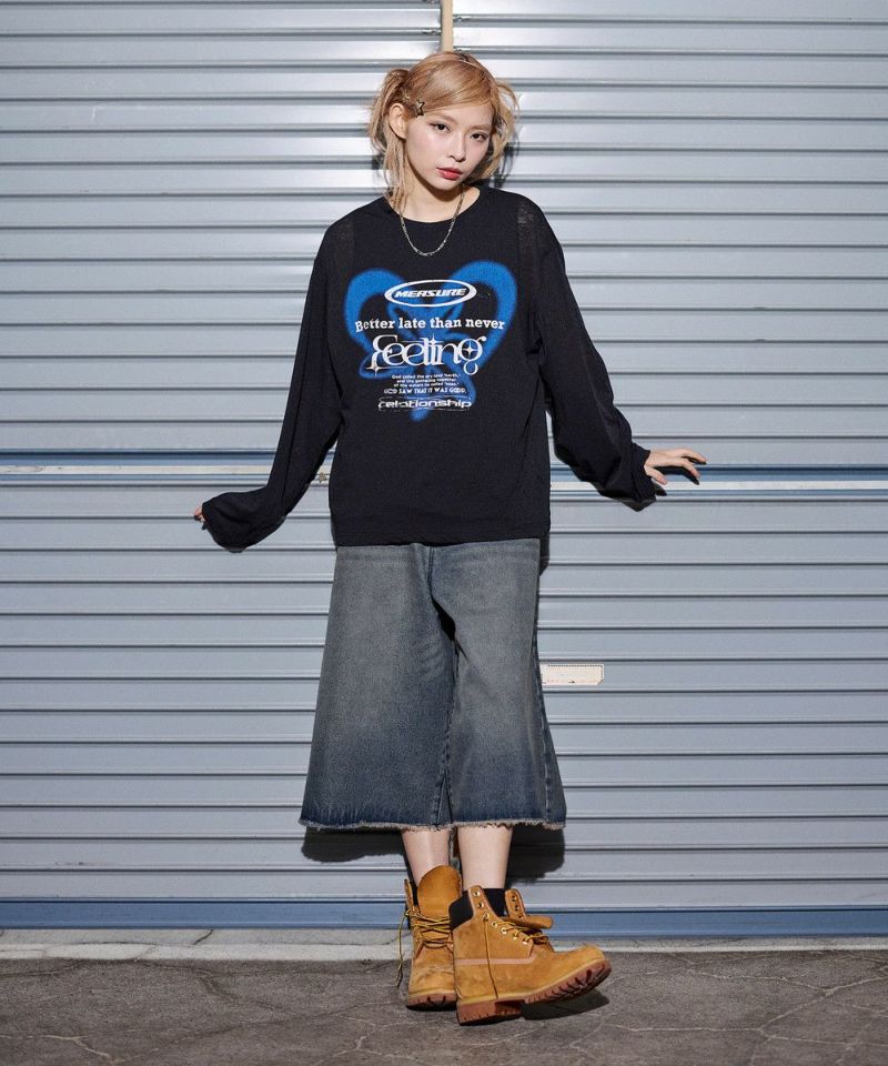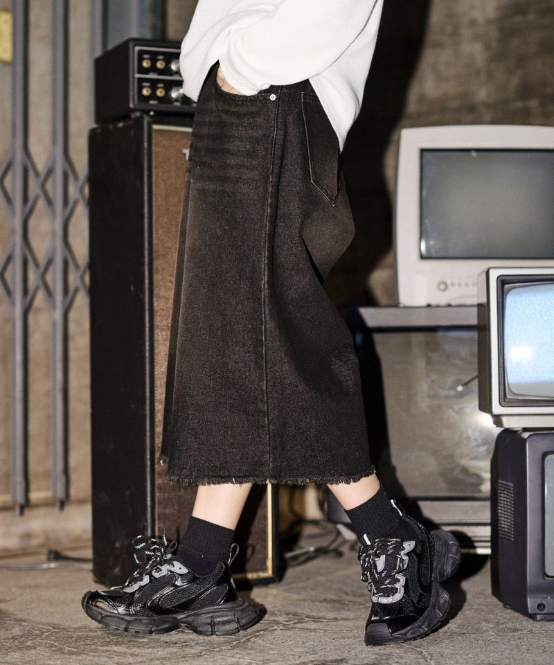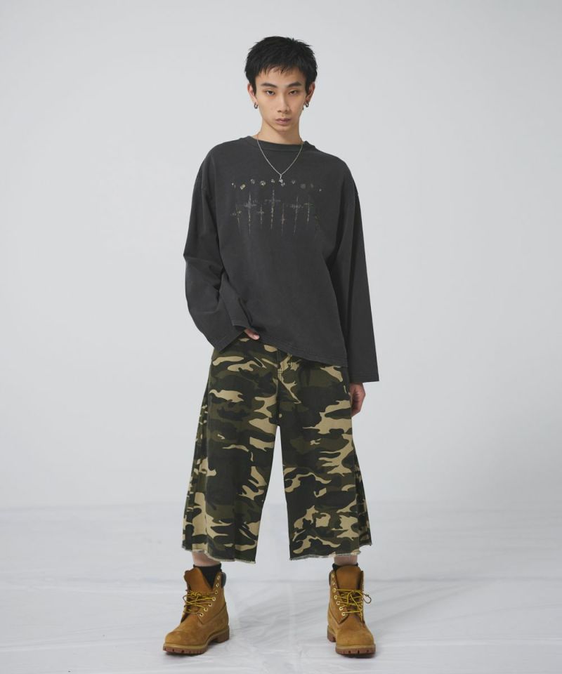 ・裾に向かって大きく広がるワイドシルエットがストリートライクな印象です。