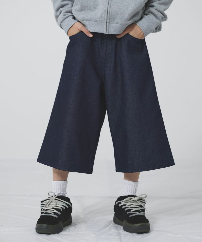 ヴィンテージ加工 ワイドデニムハーフパンツ