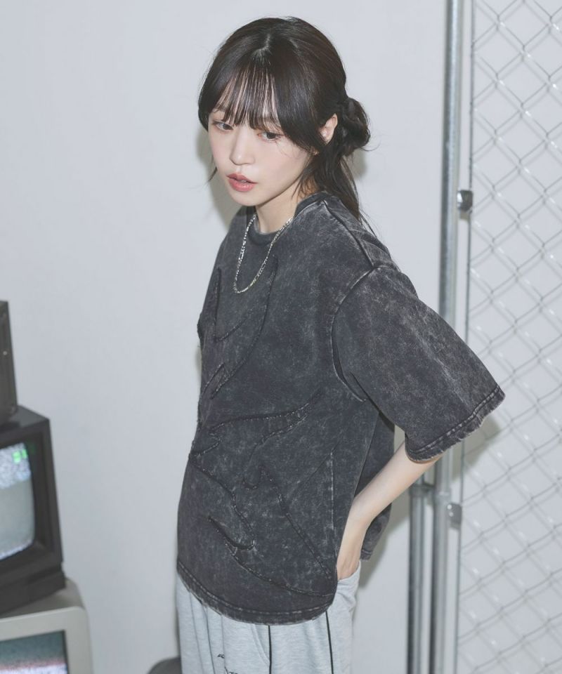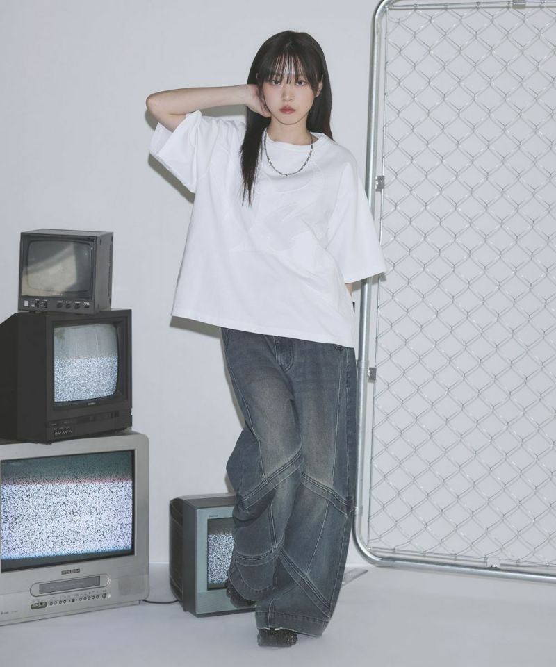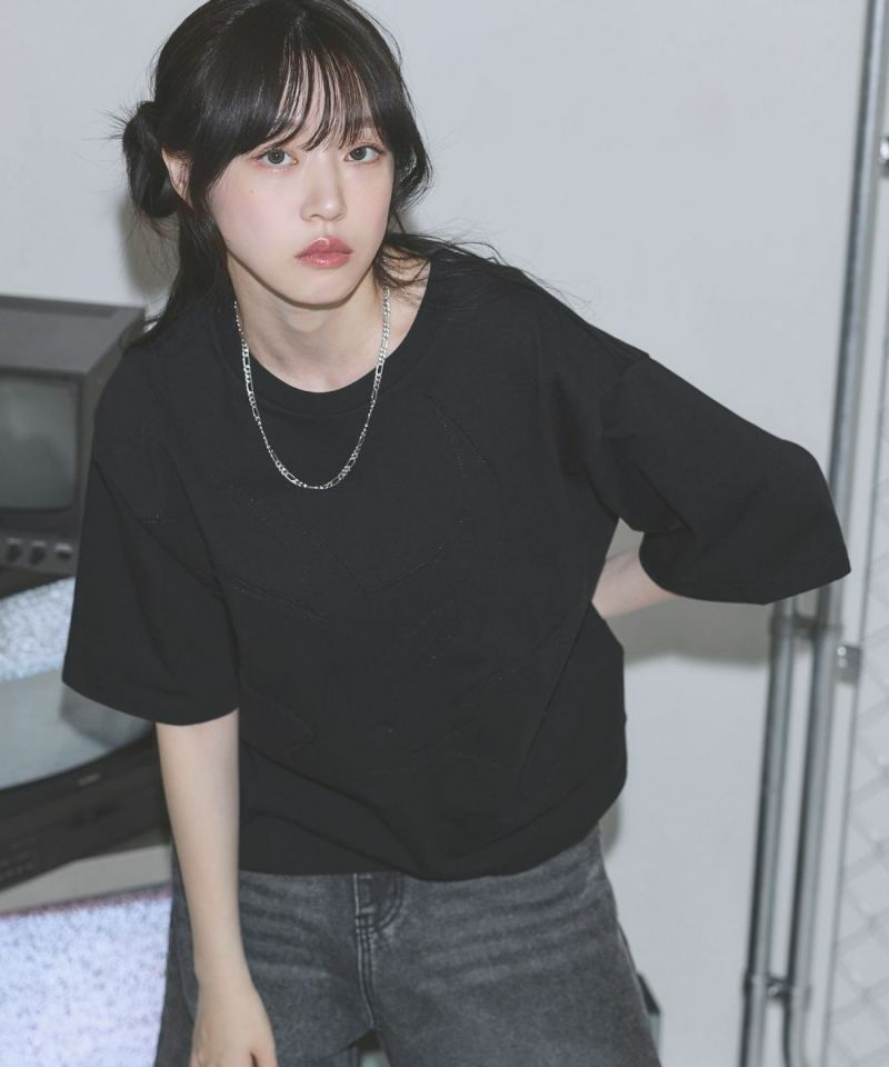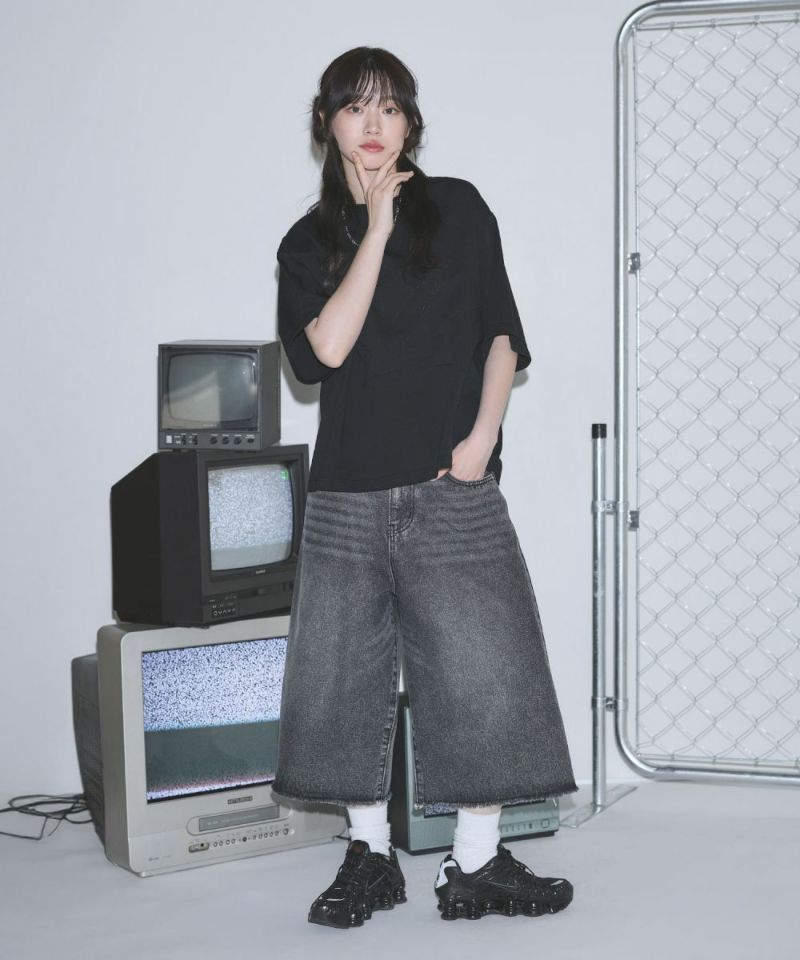 ・やや短めの丈感と、程よくゆとりのあるボックスシルエットが今っぽさを演出します。