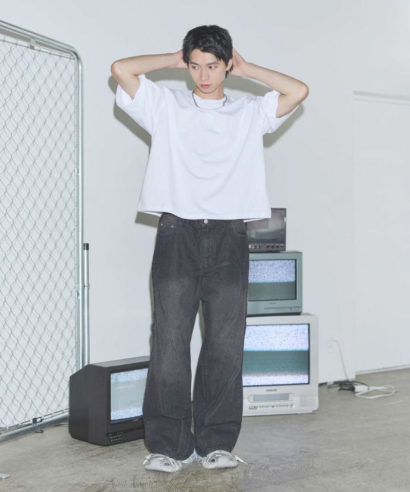 ・ワイド系のデニムやカーゴパンツ、ハーフパンツなど幅広いボトムスと合わせるのがおすすめ。