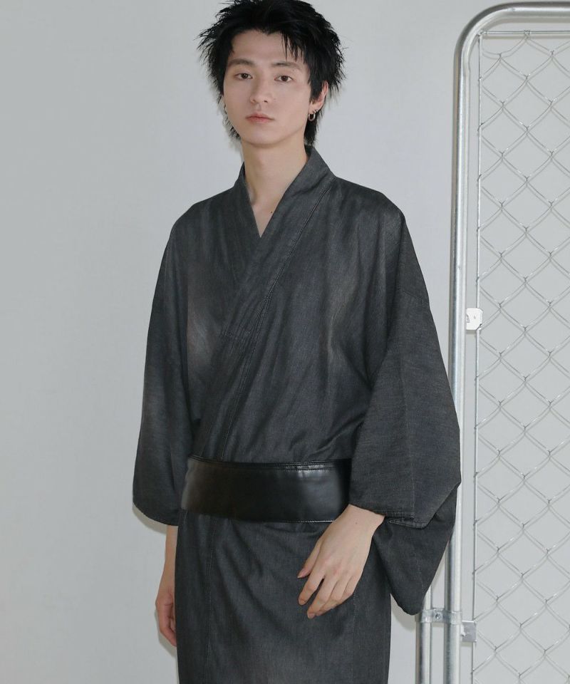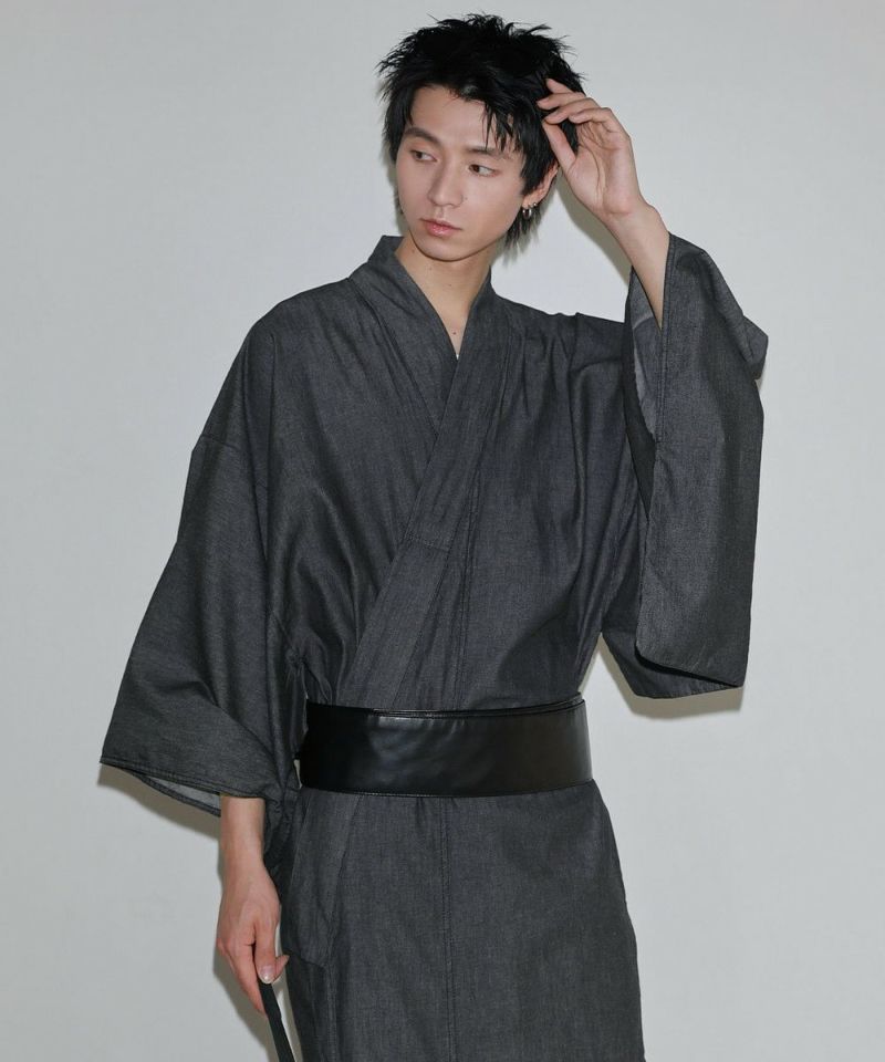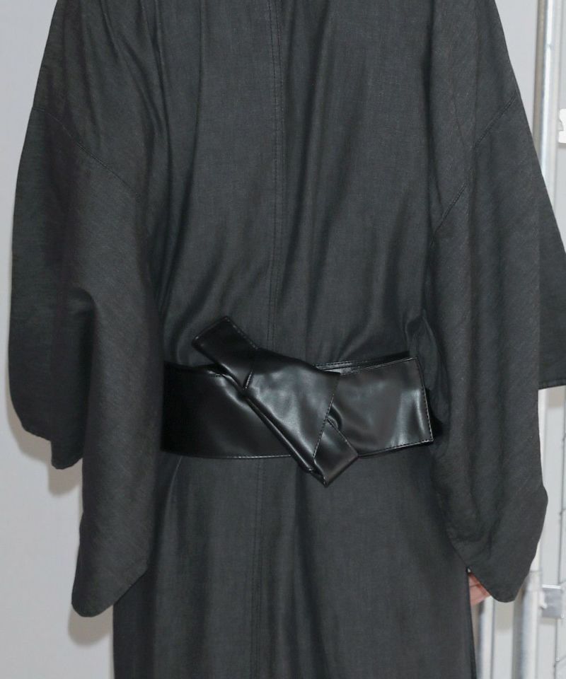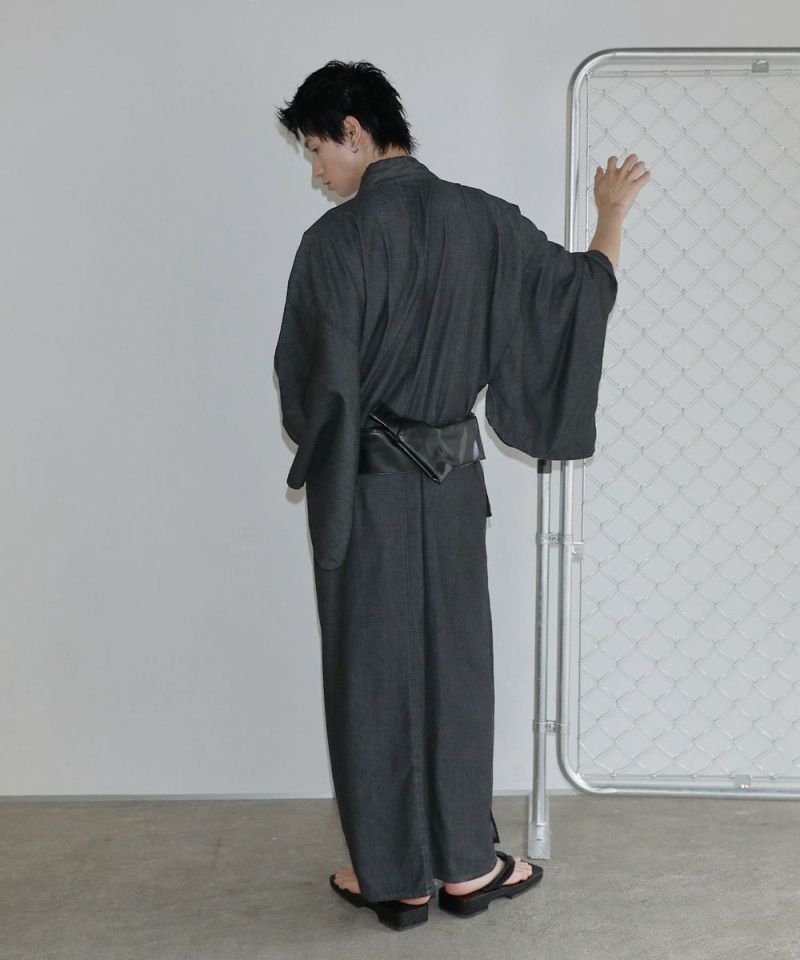 シンプルで洗練されたデザインの浴衣に、アクセントになるPUレザーの帯。