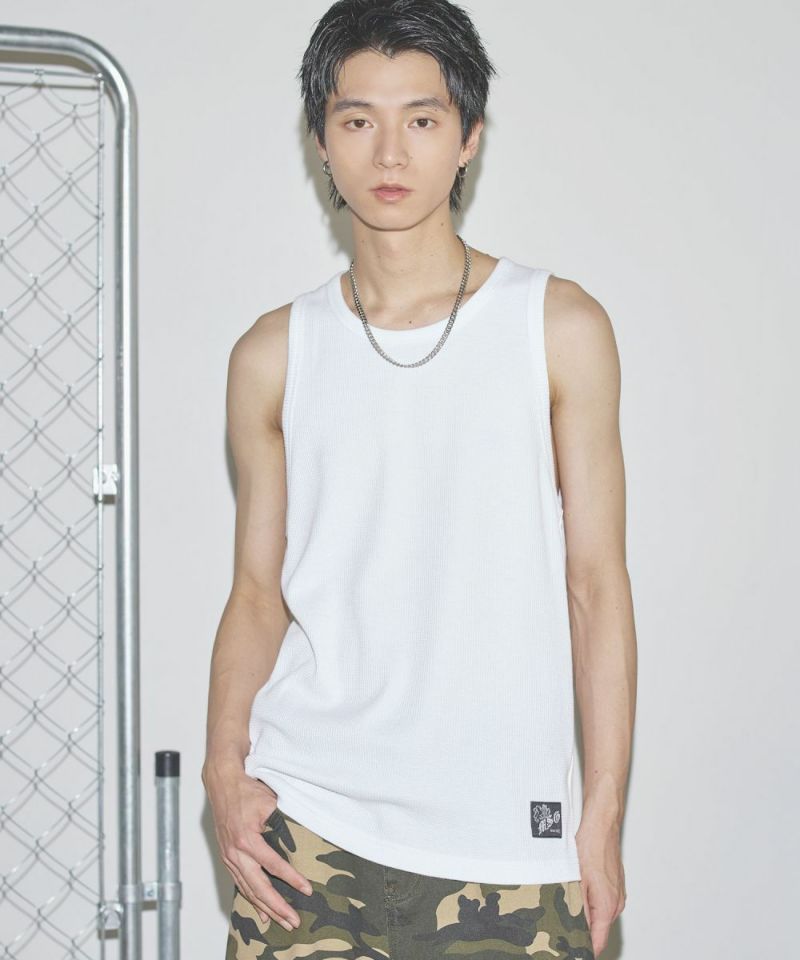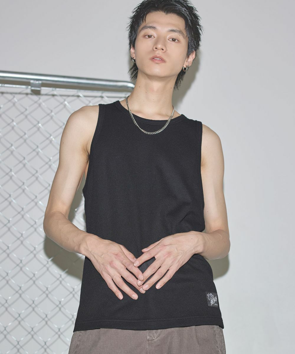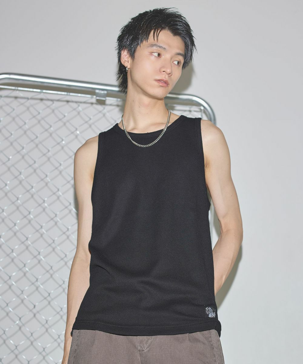 ワンポイントワッフルタンクトップ
