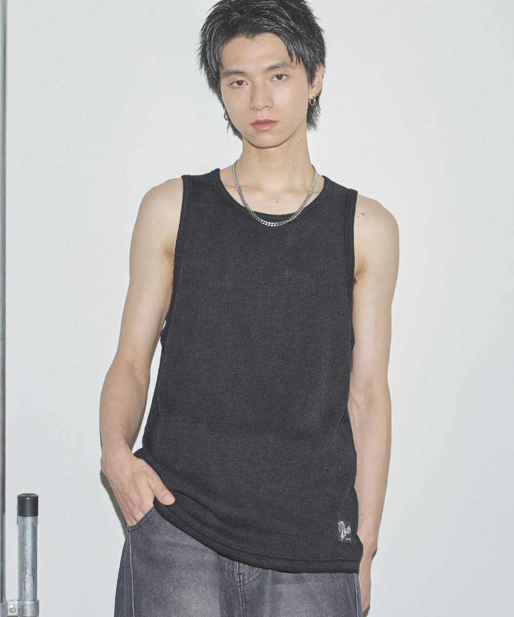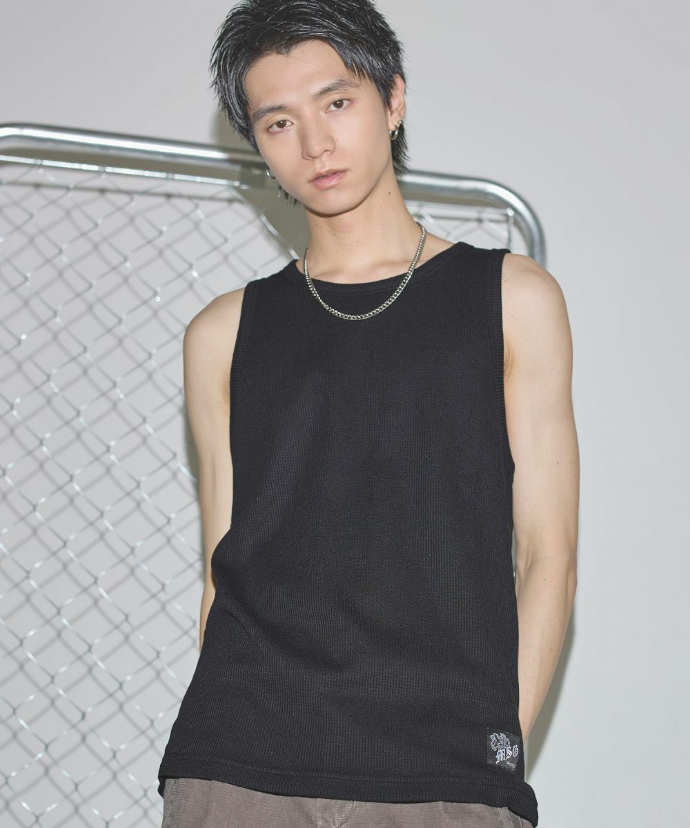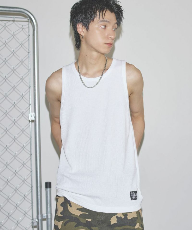 ワンポイントワッフルタンクトップ