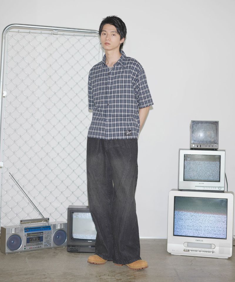 ハーフスリーブショート丈ミニチェックシャツ【UNISEX】