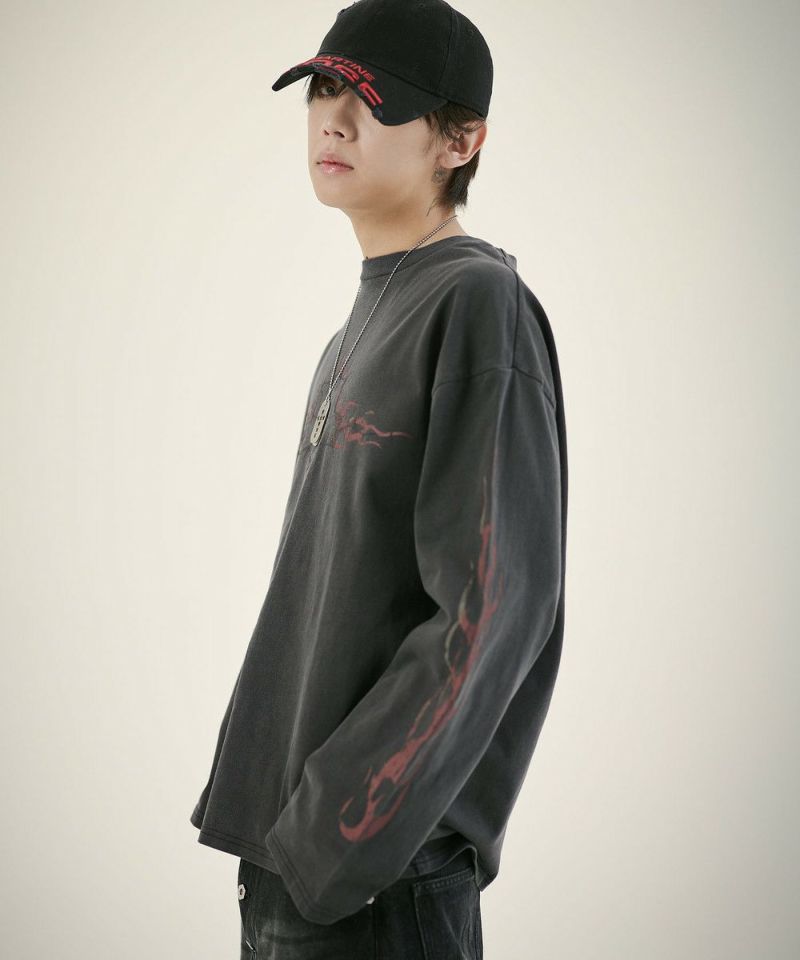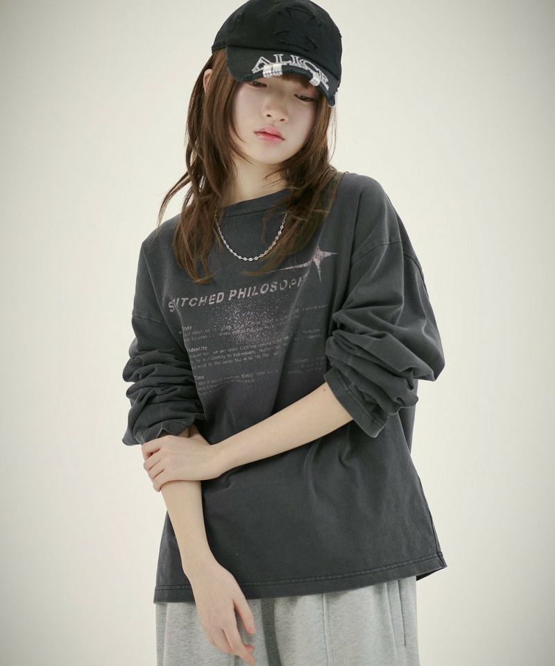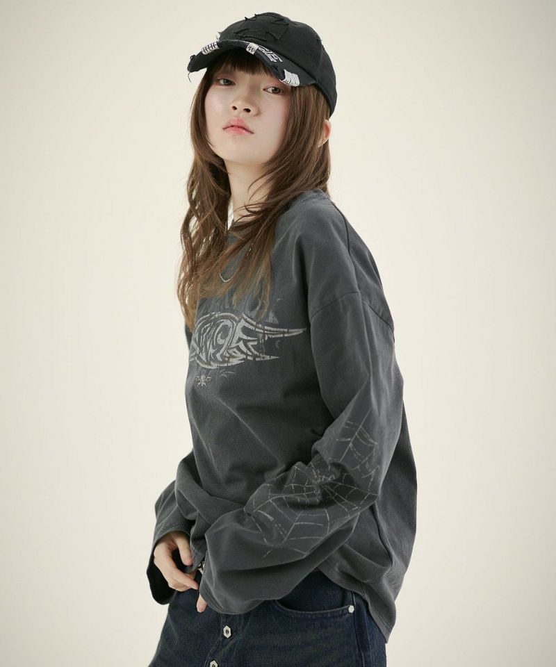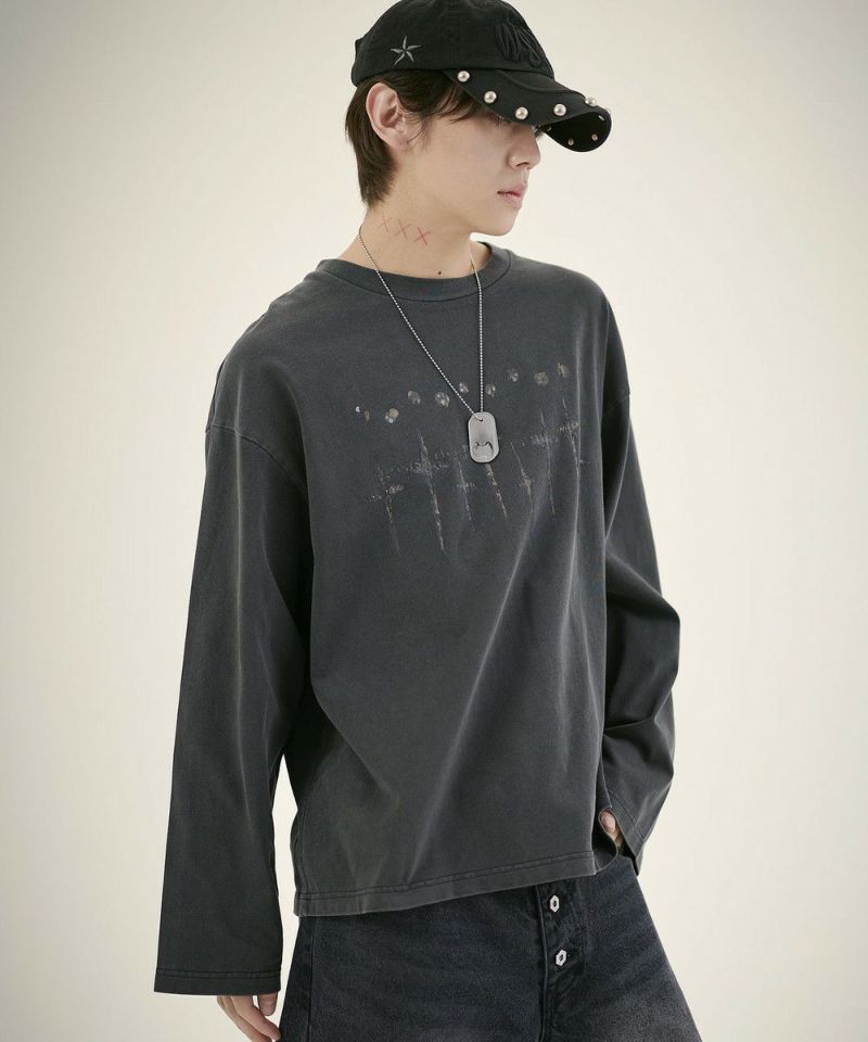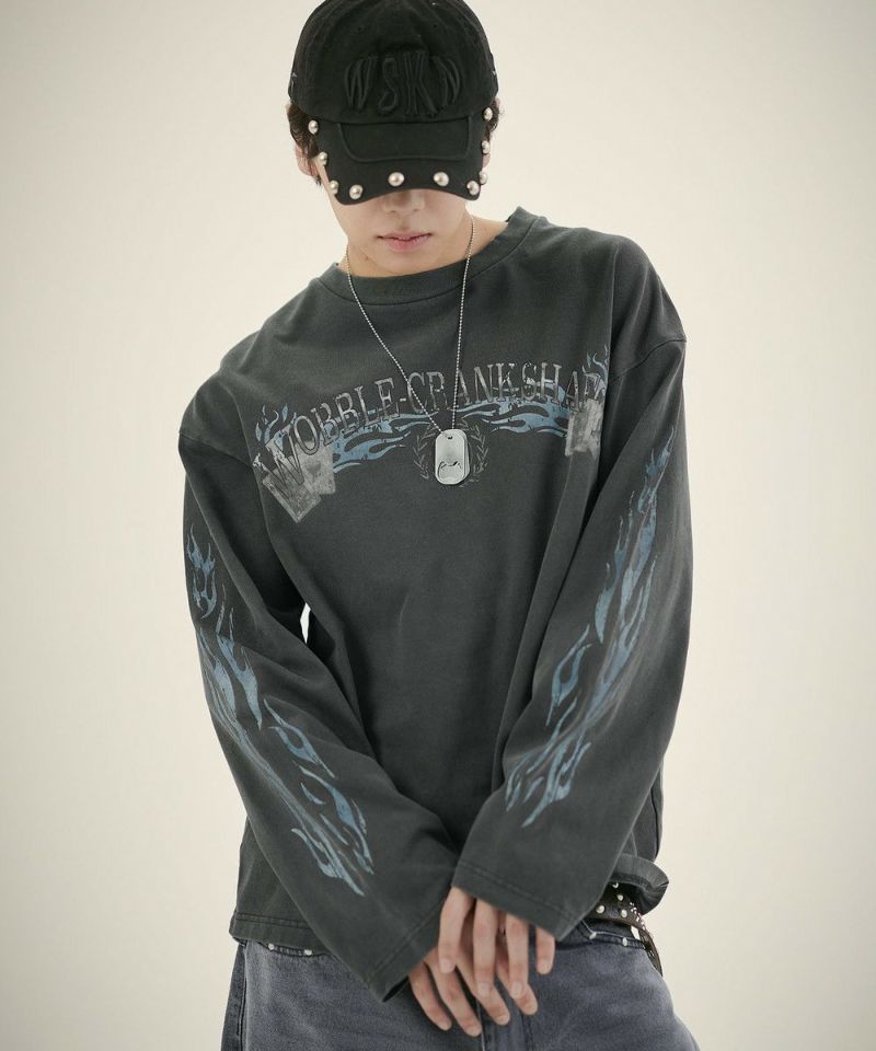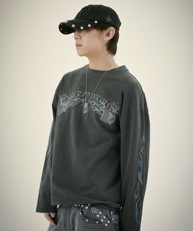 ルーズシルエットアソートグラフィックヴィンテージライクロングTシャツ