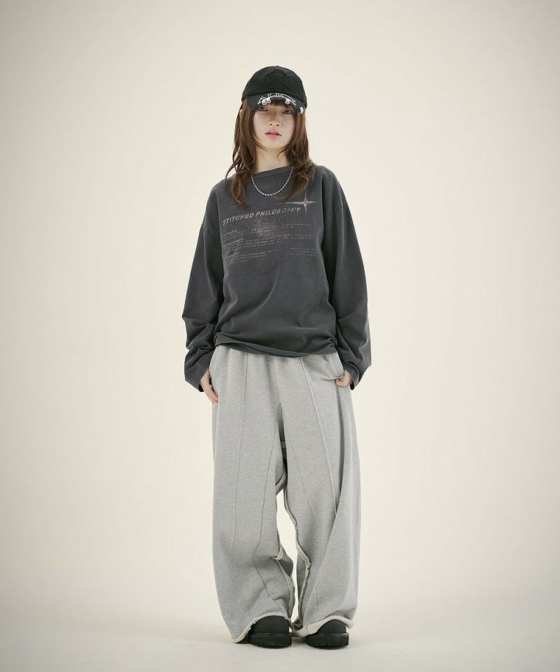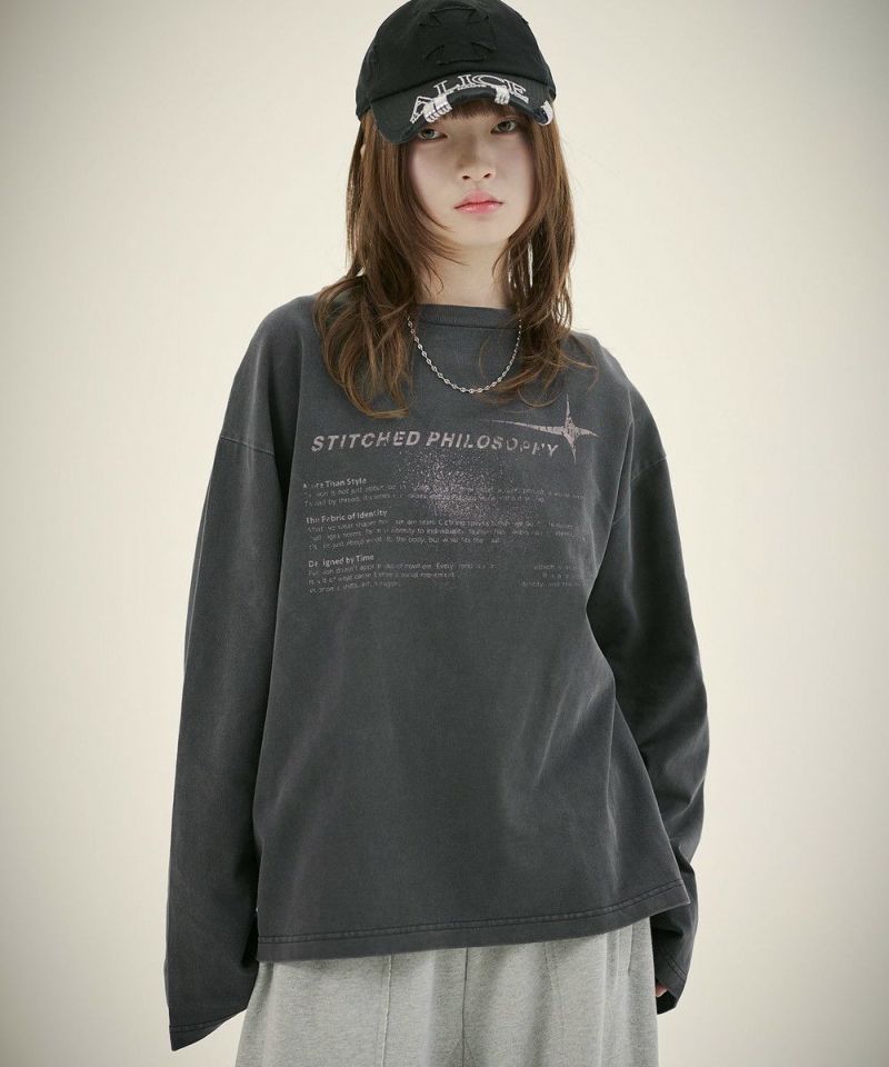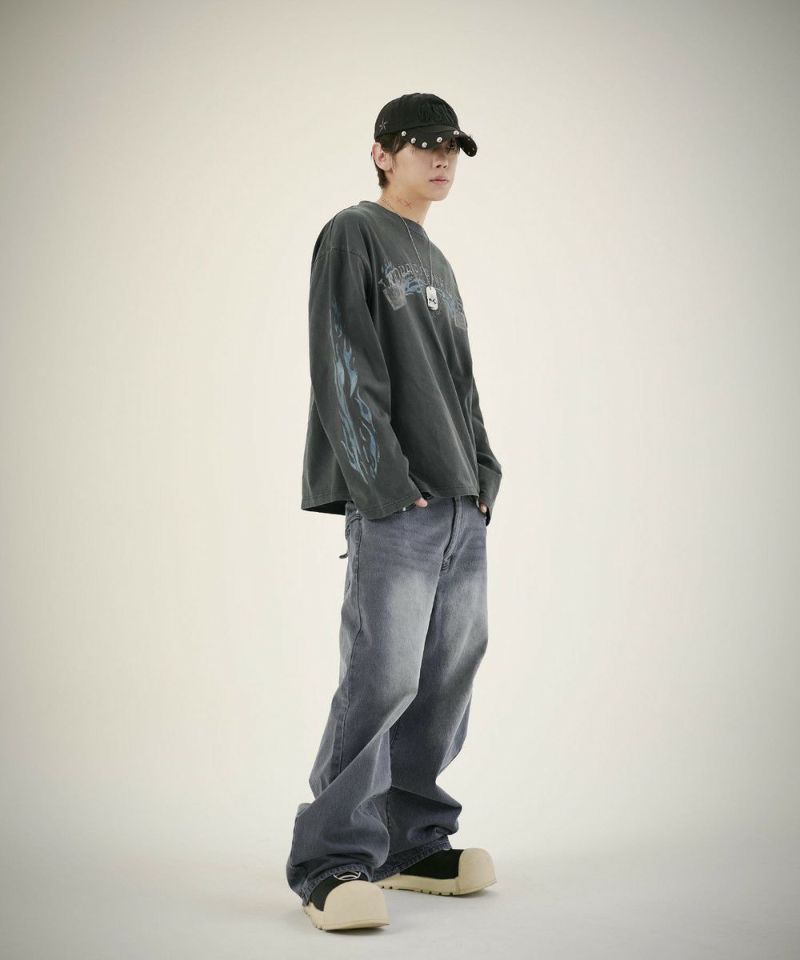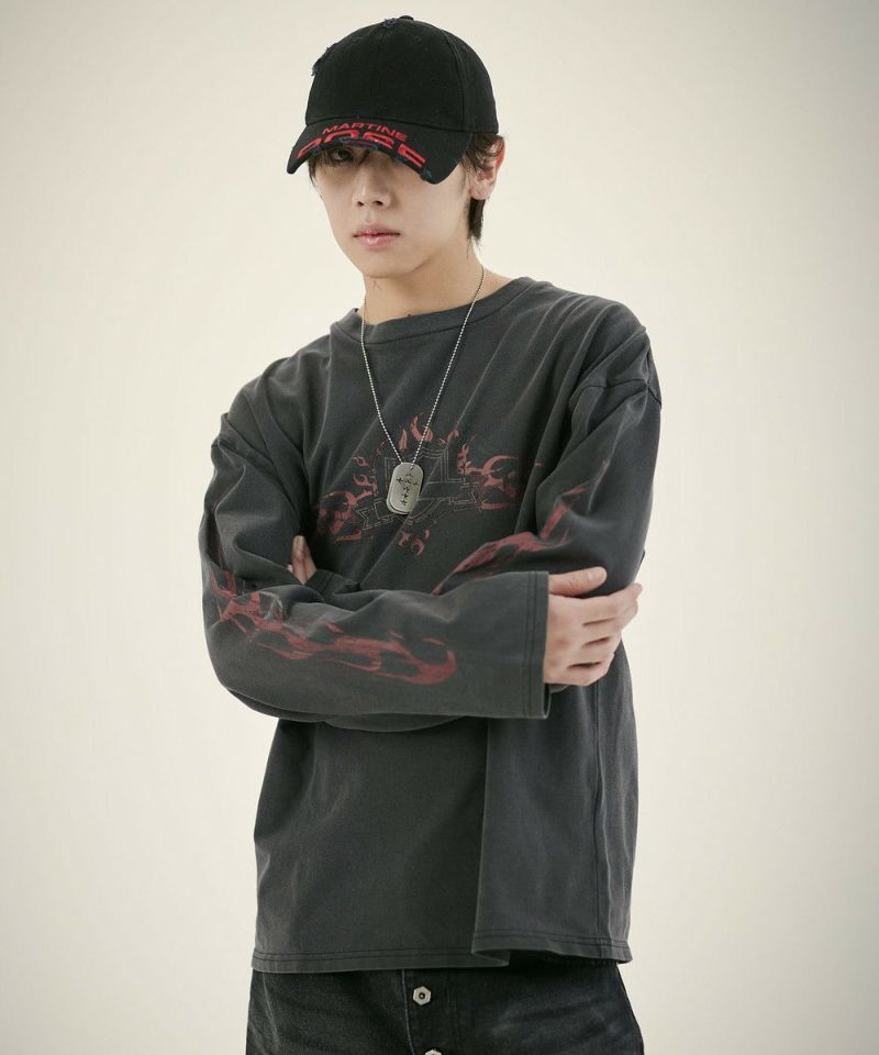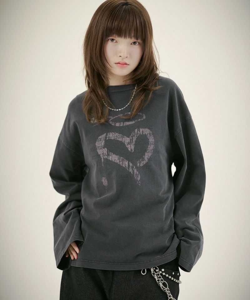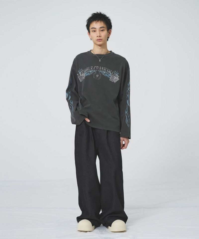 ルーズシルエットアソートグラフィックヴィンテージライクロングTシャツ