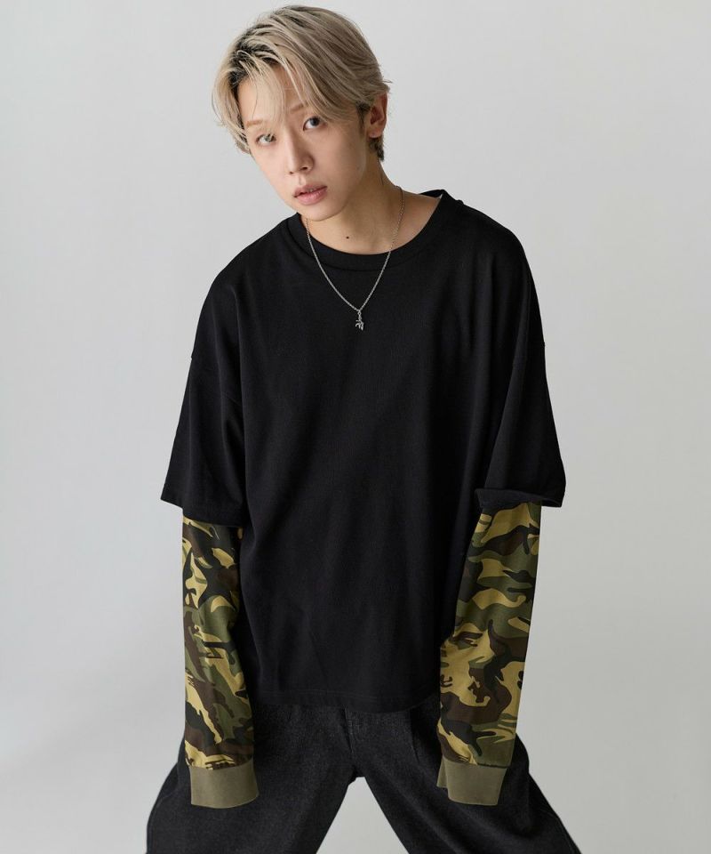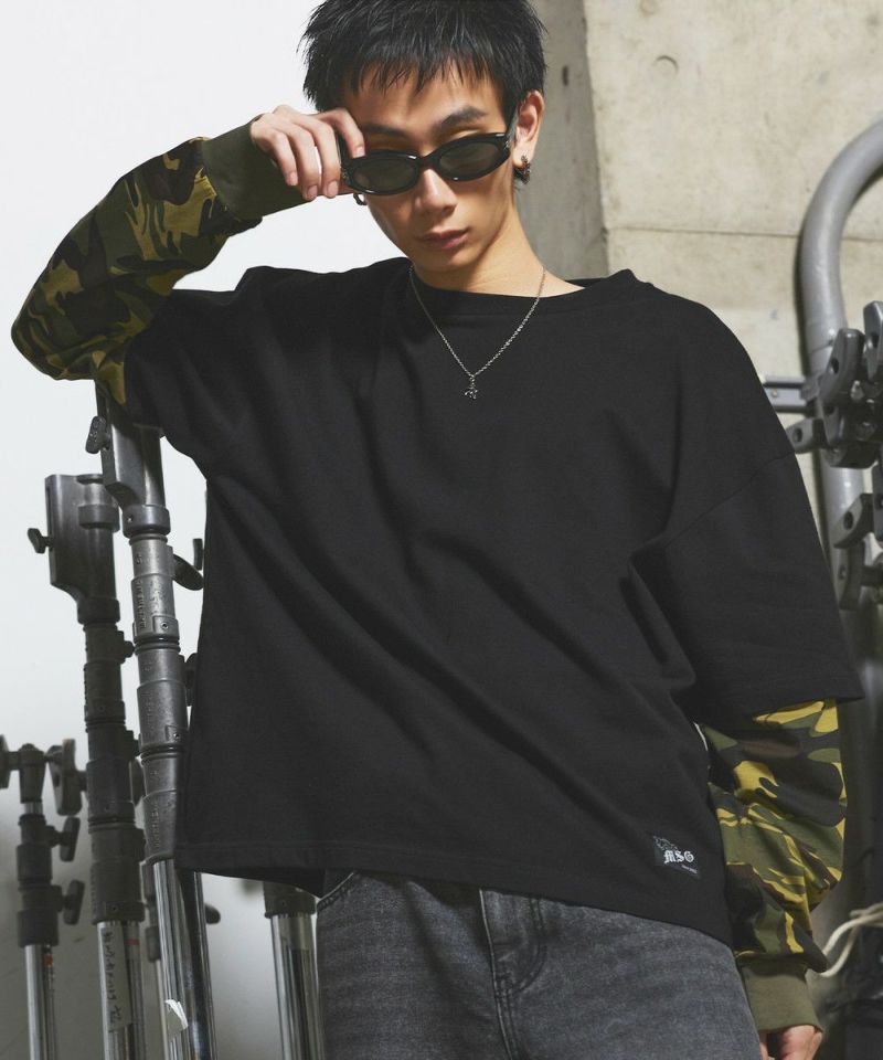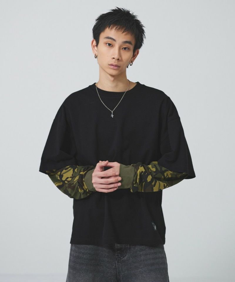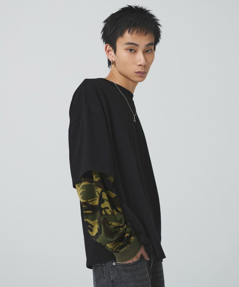フェイクレイヤードロンT カモフラージュ柄 ボーダー