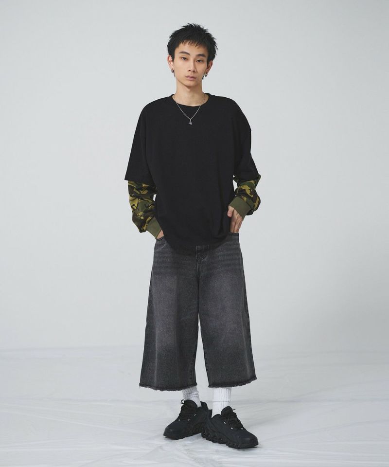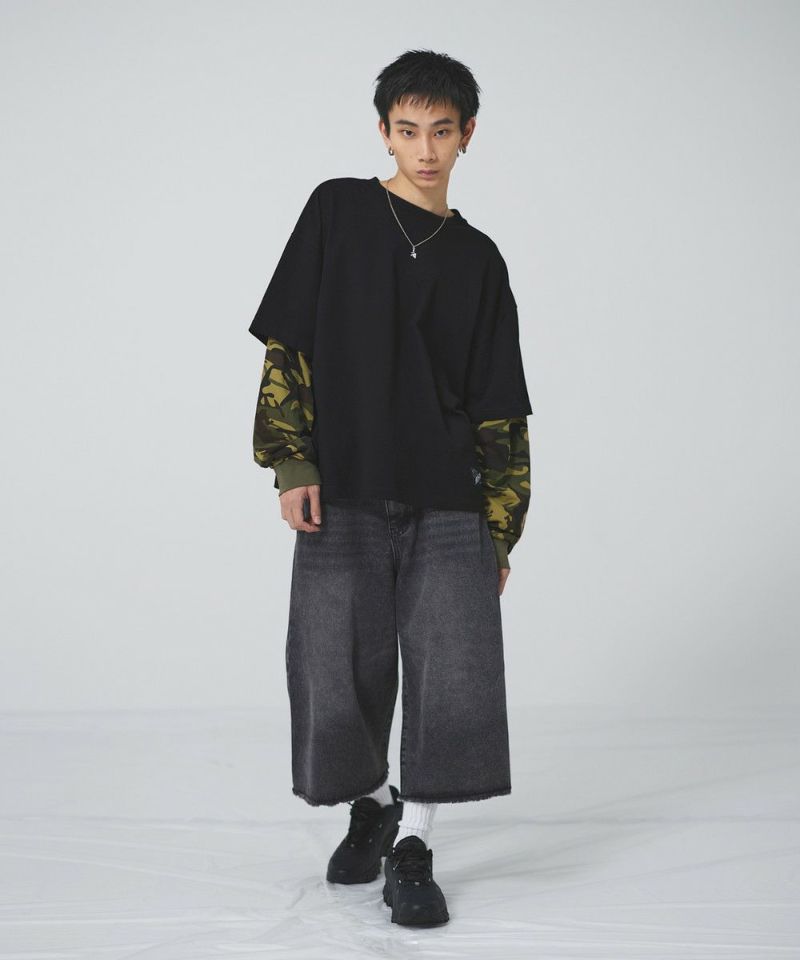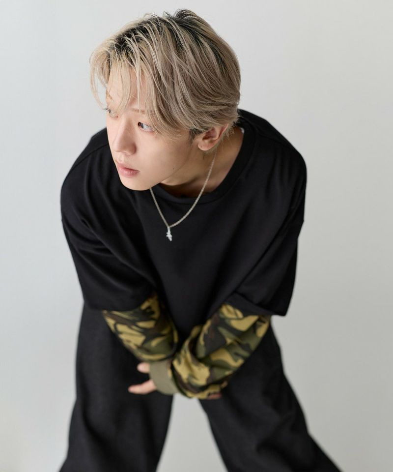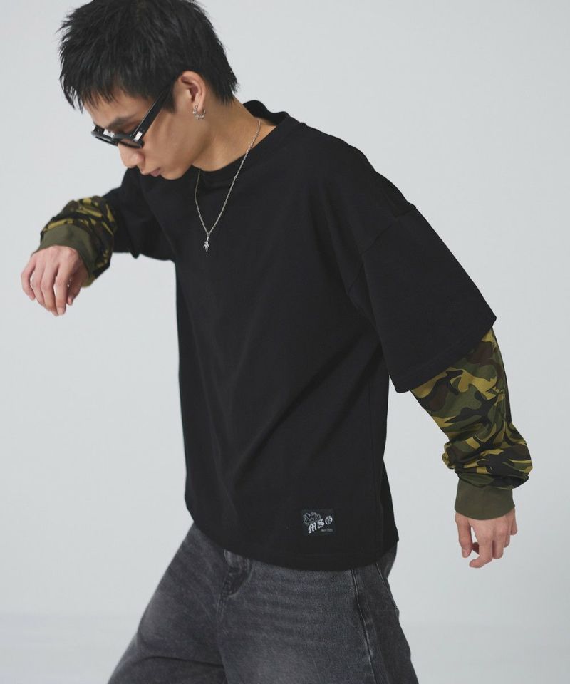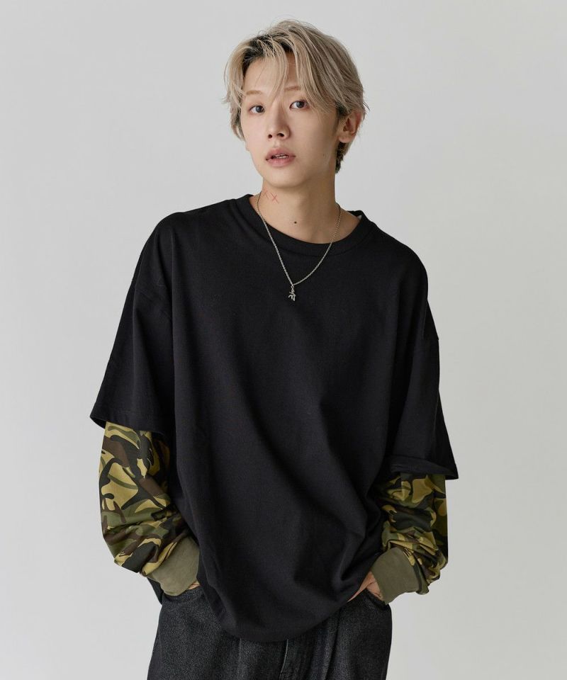 フェイクレイヤードロンT カモフラージュ柄 ボーダー
