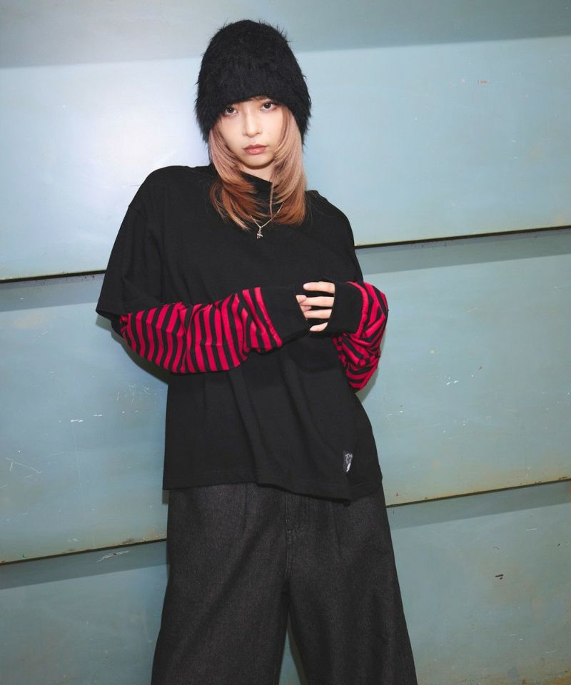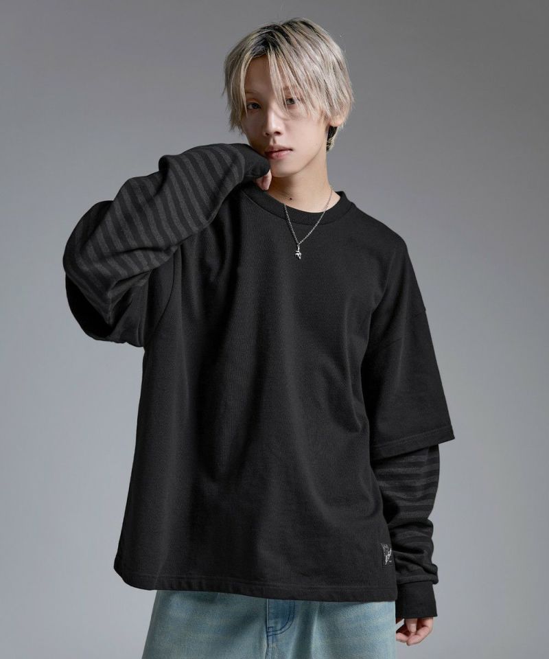 ・重ね着したようなデザインが今っぽい雰囲気のフェイクレイヤードロンT。