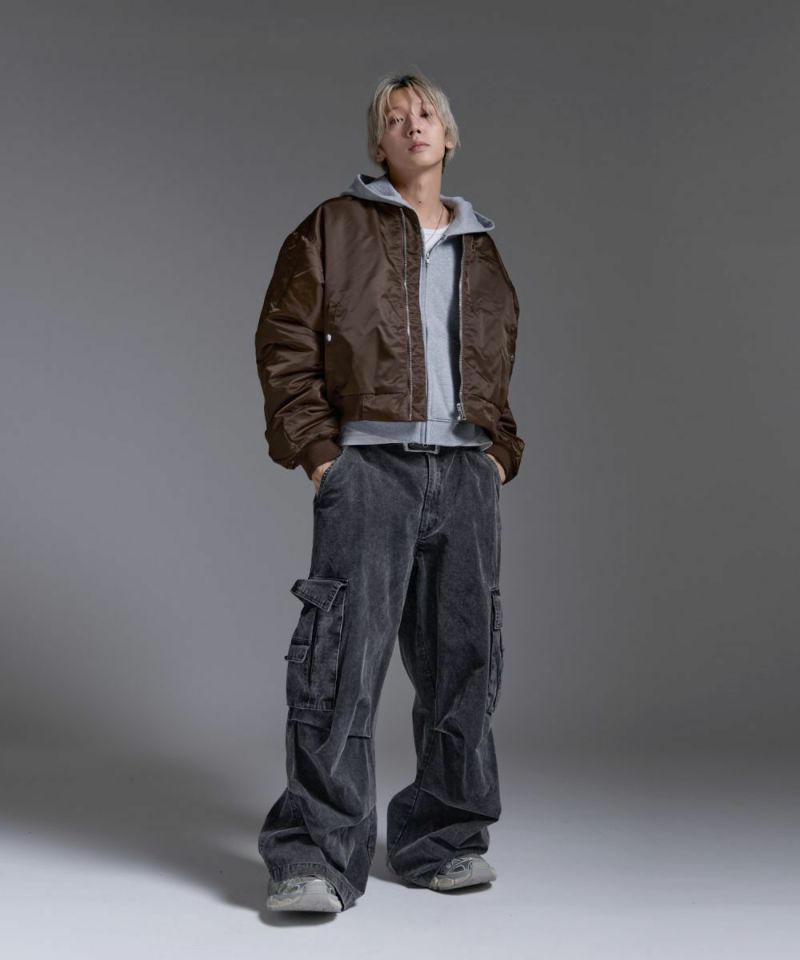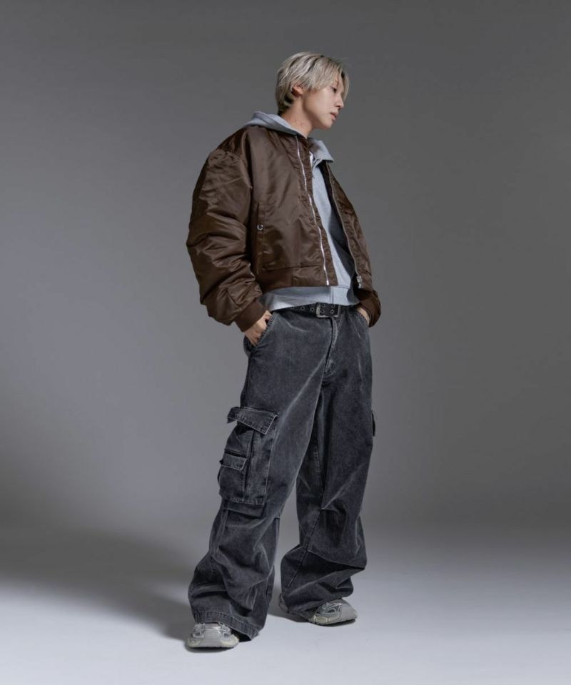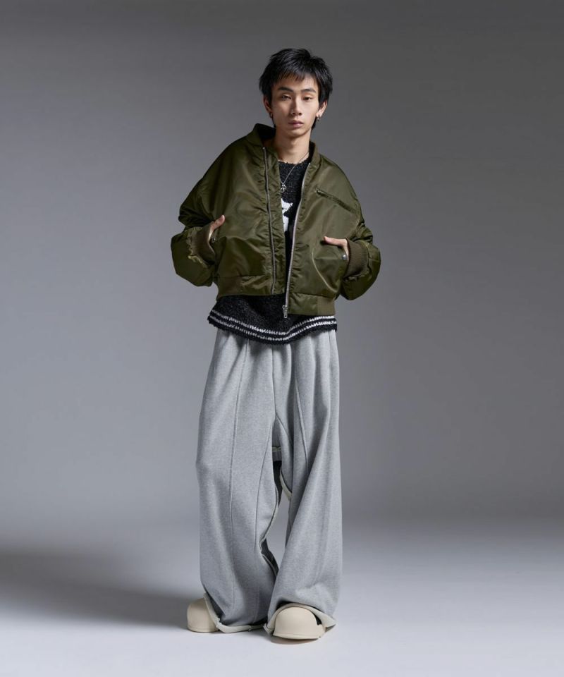 ・ボトムにはワイドめのデニムやスウェットパンツを合わせると今っぽいスタイリングが完成します。