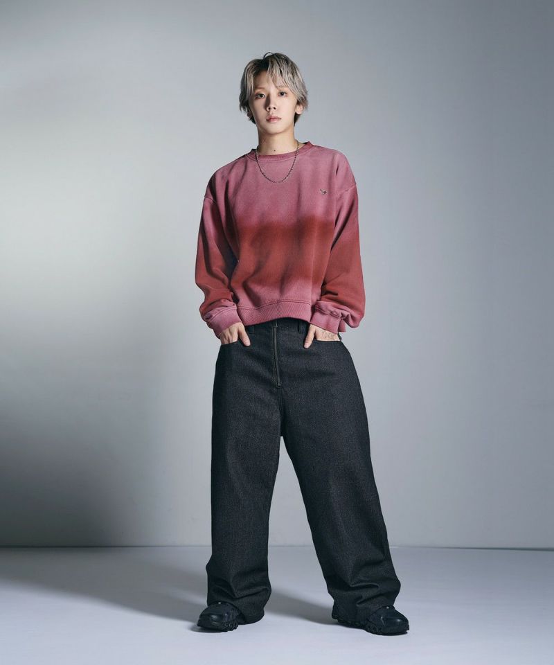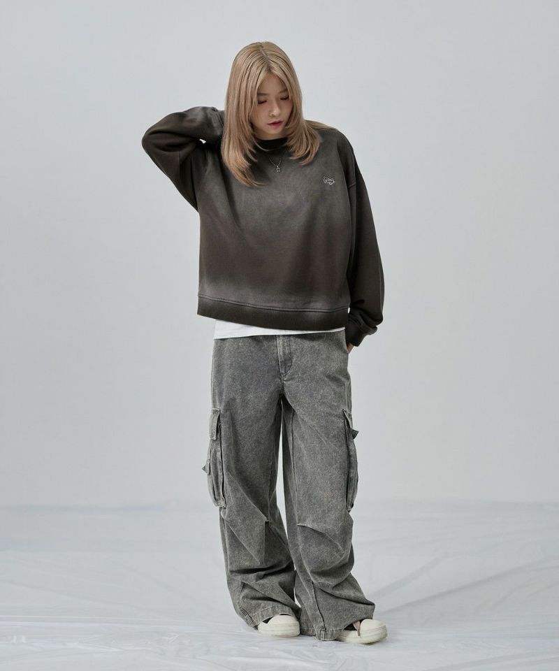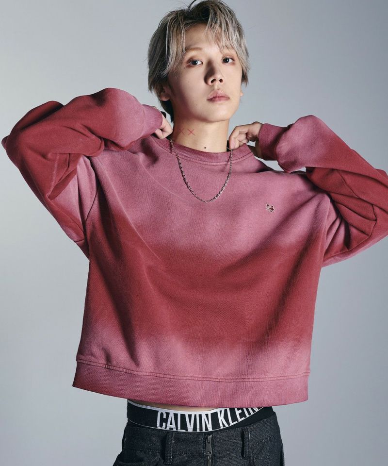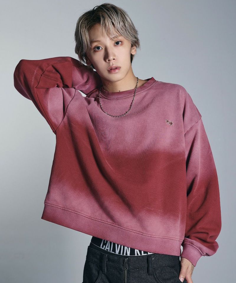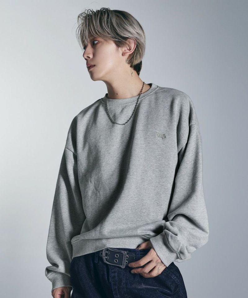 ・日焼けのような加工がこなれた雰囲気のクルーネックスウェット。
