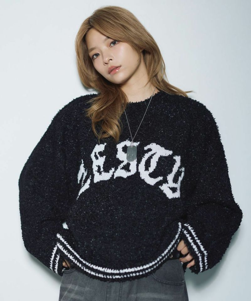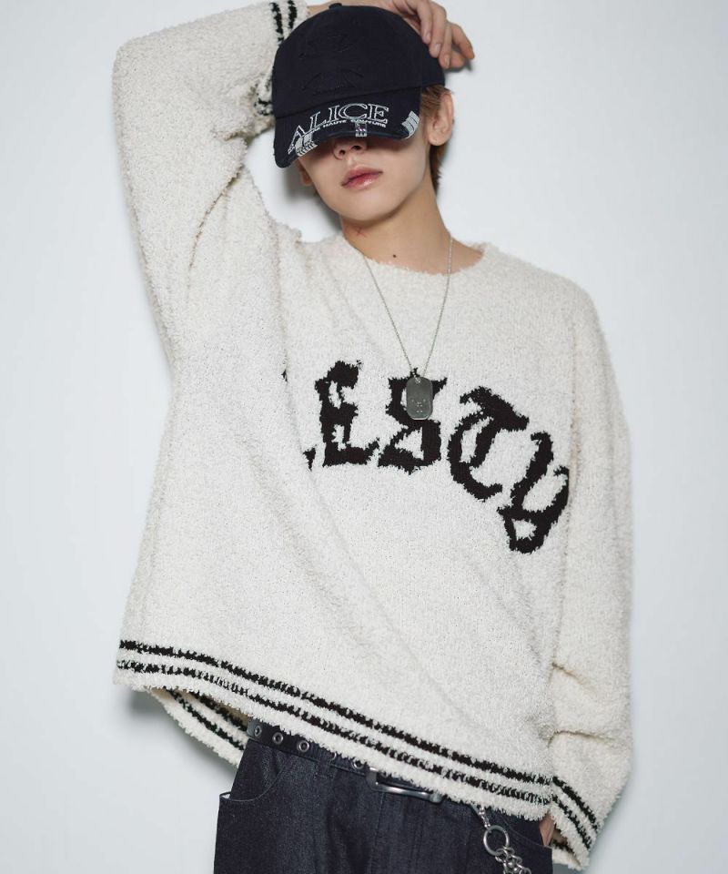 ・1枚でストリート感を演出できるデザインニットです。