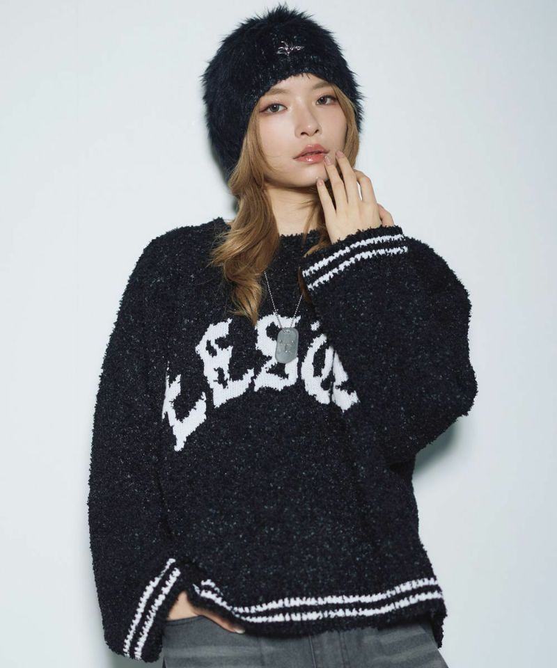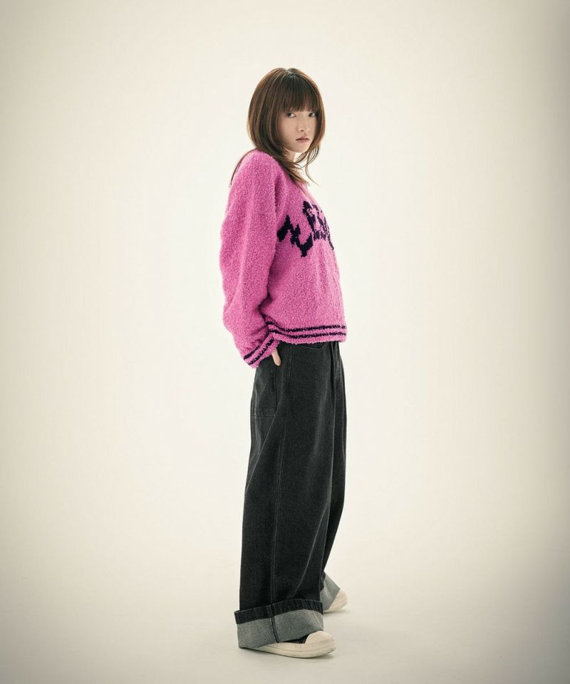 ・表面に立体感のあるリボンヤーンを使用した、存在感抜群のグラフィックニット。