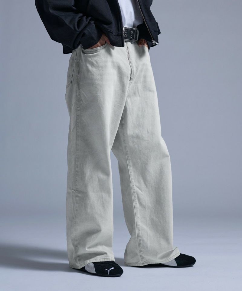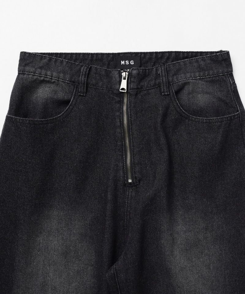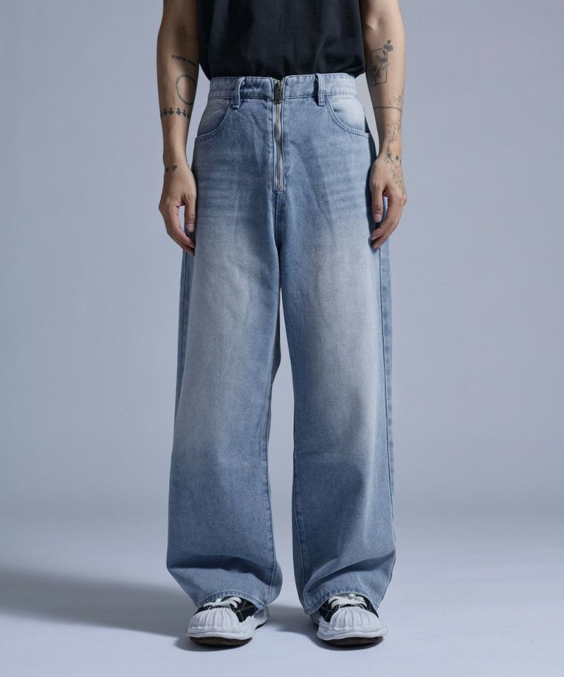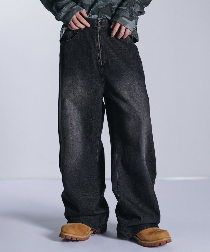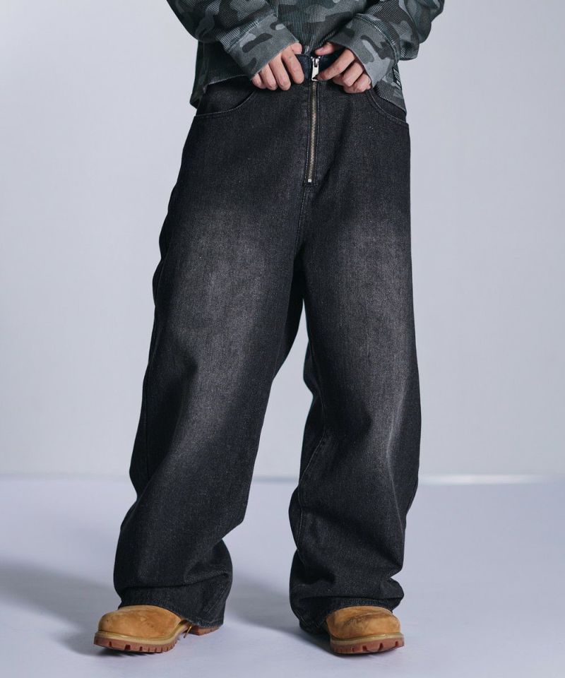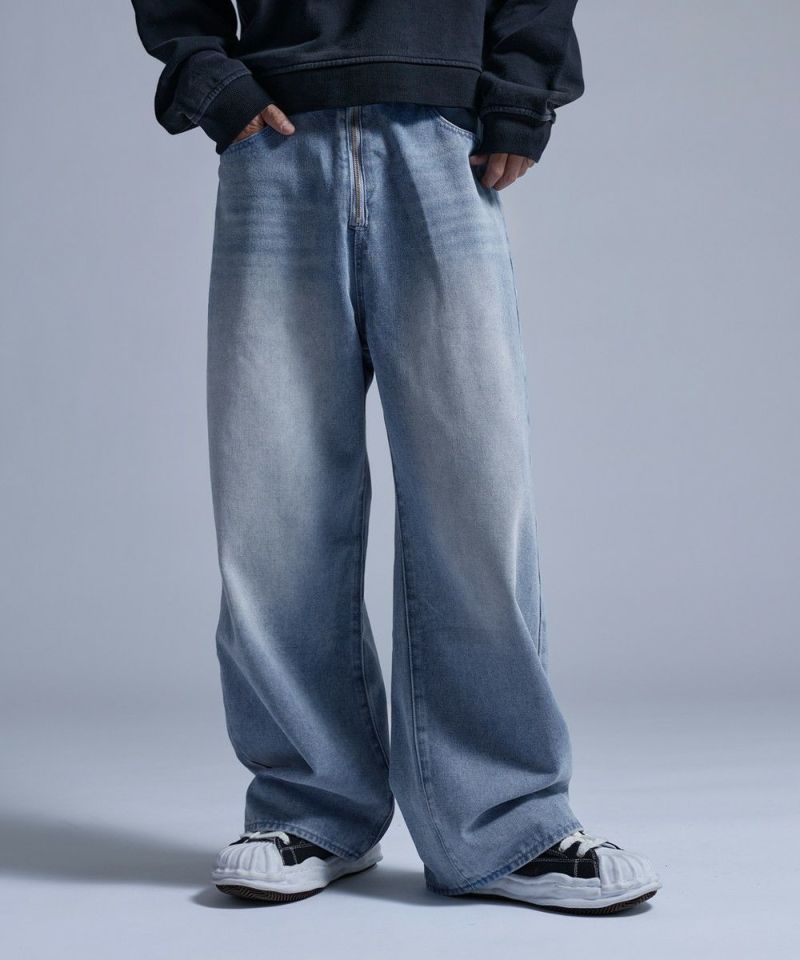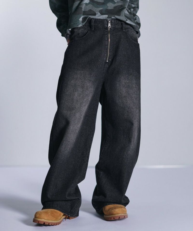 ・大胆なワイドシルエットとフロントのセンタージップが特徴的なバギーデニムパンツ。