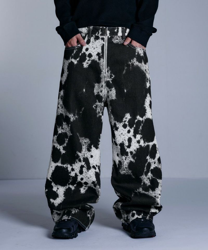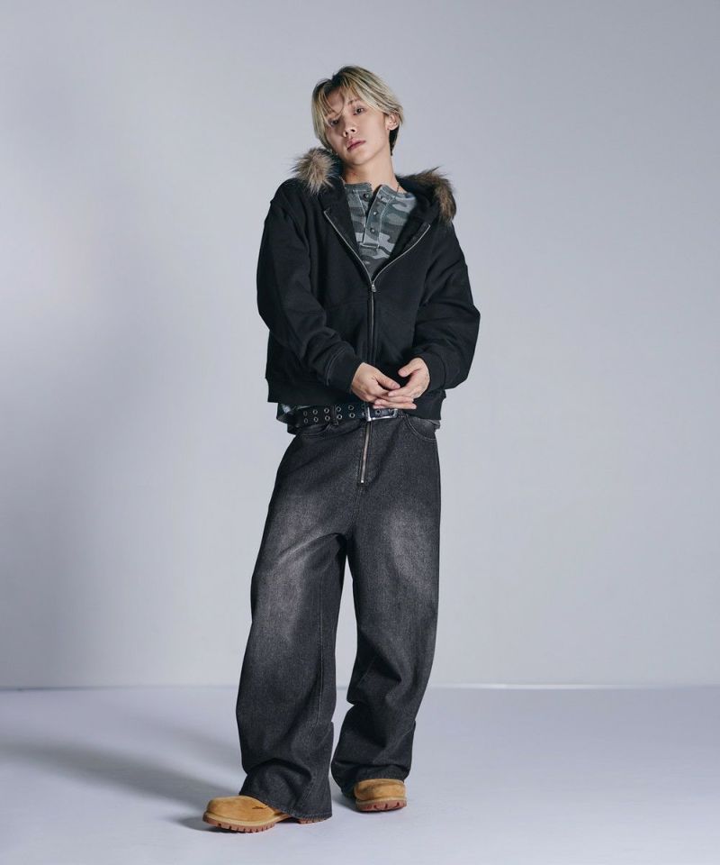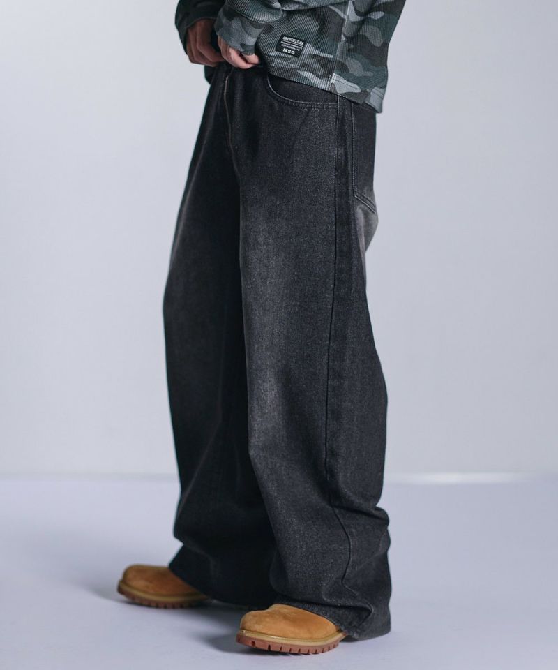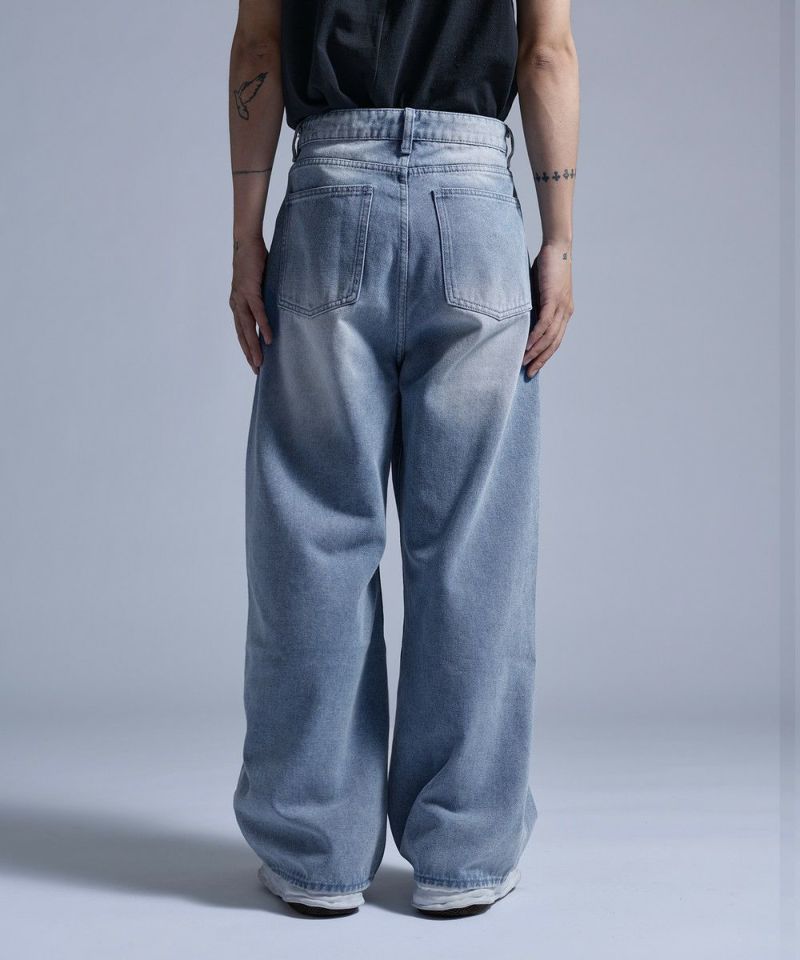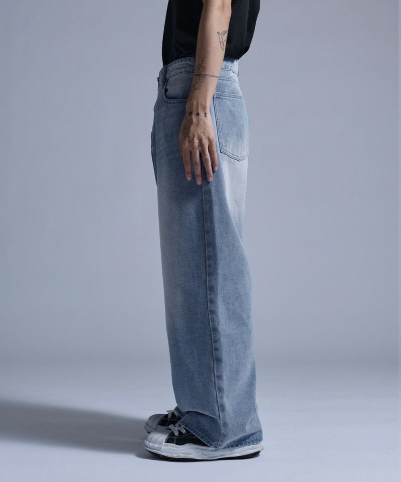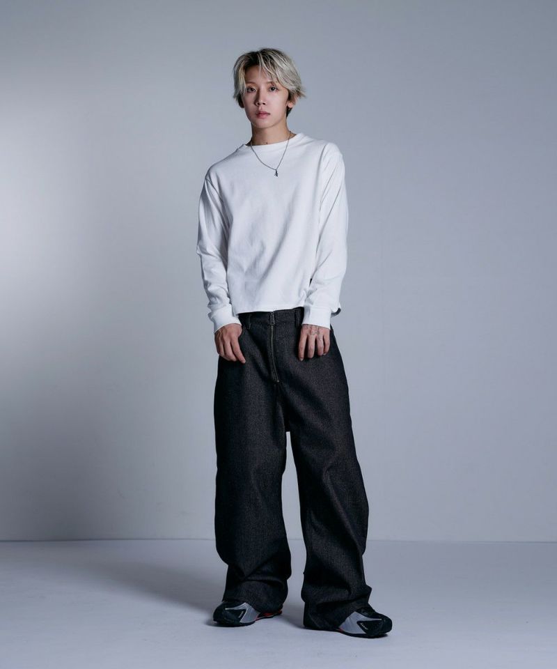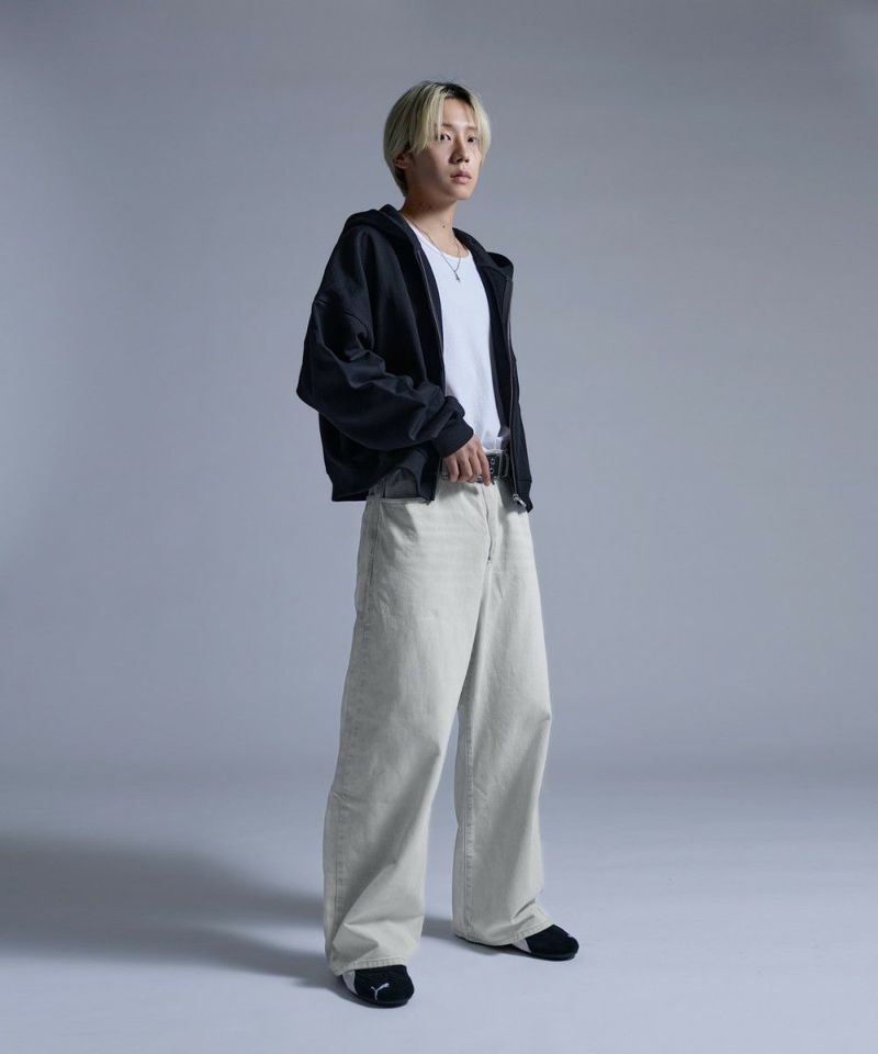 ・大胆なワイドシルエットとフロントのセンタージップが特徴的なバギーデニムパンツ。