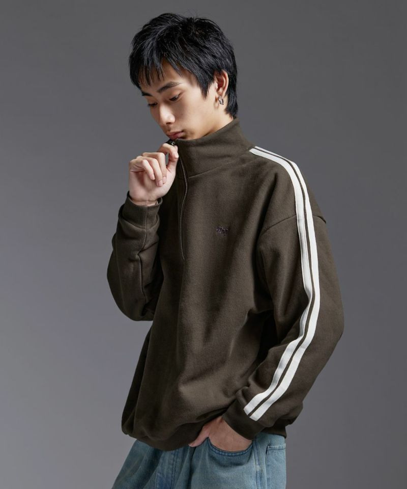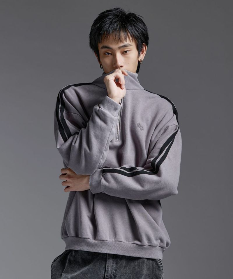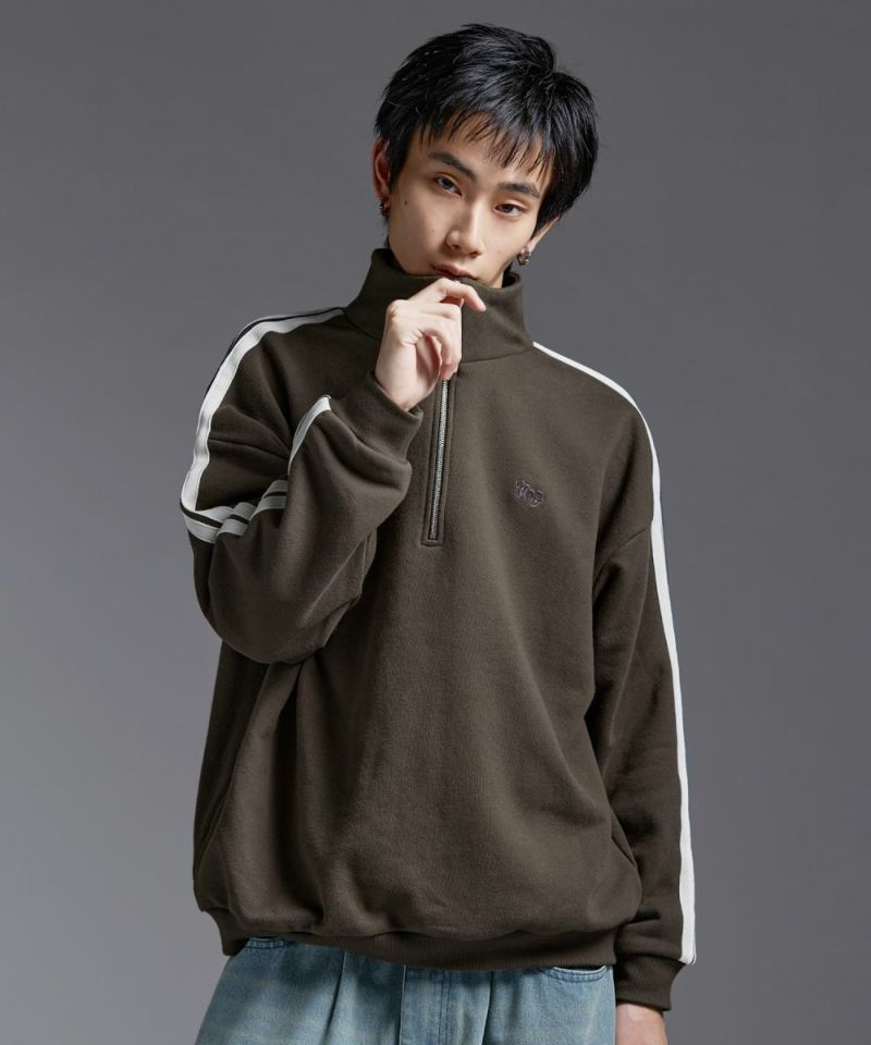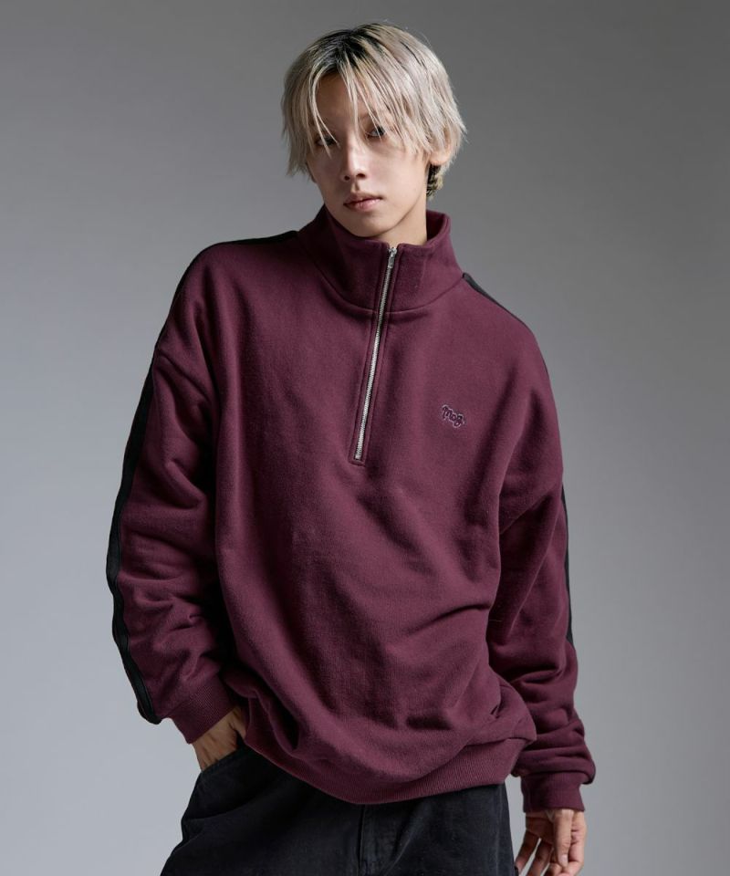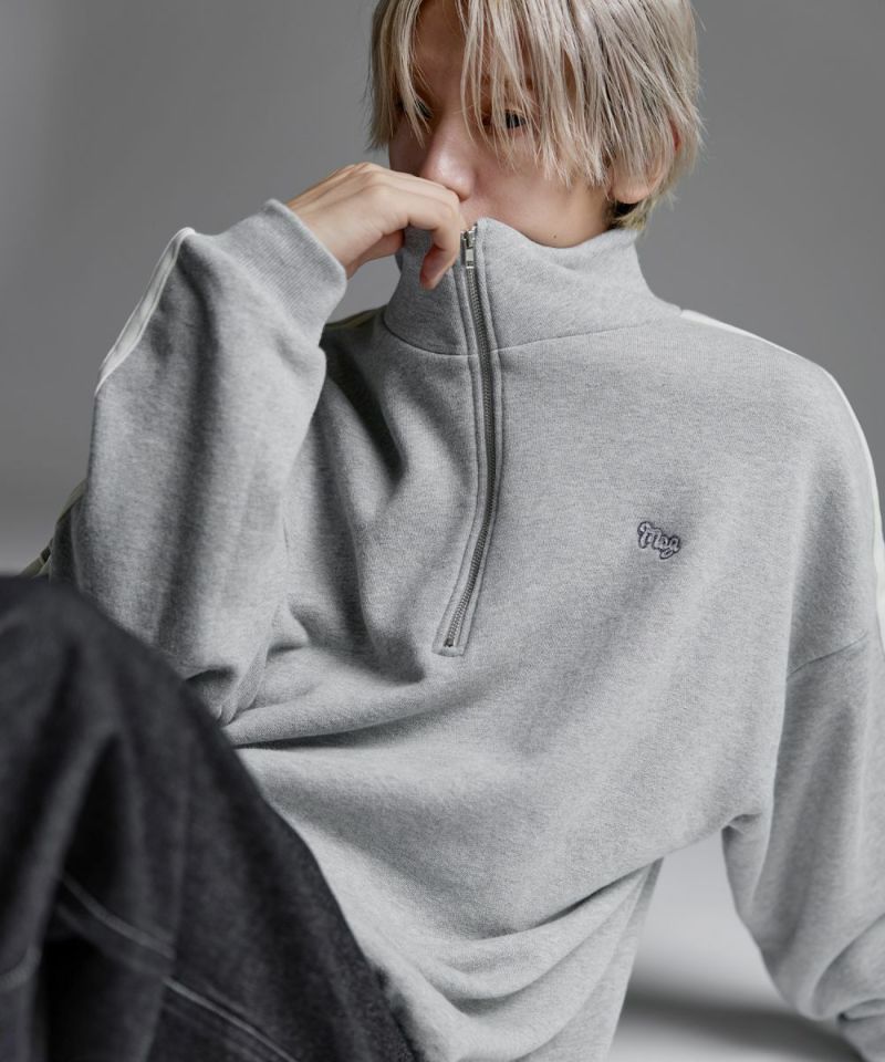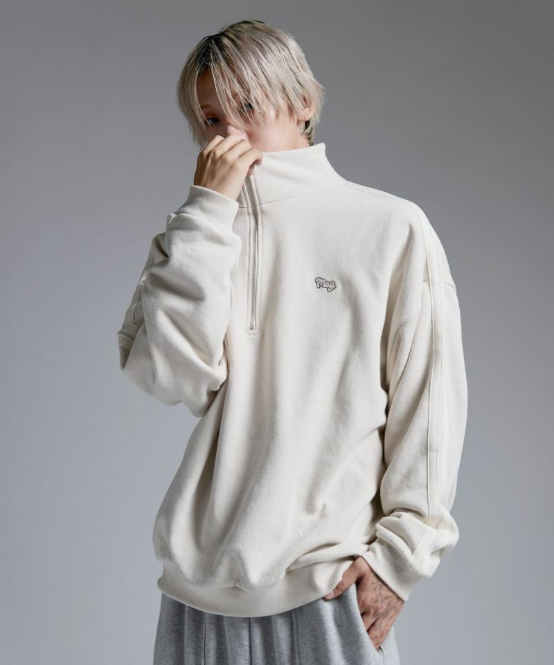・ハーフジップタイプのスウェット地プルオーバー。
