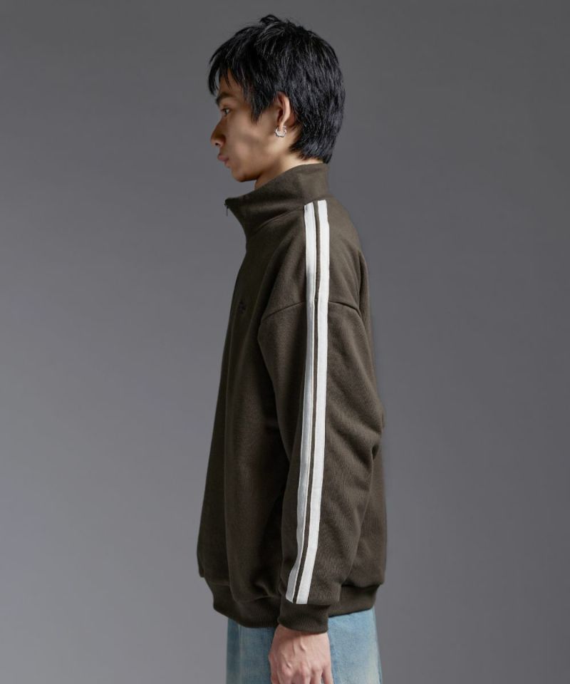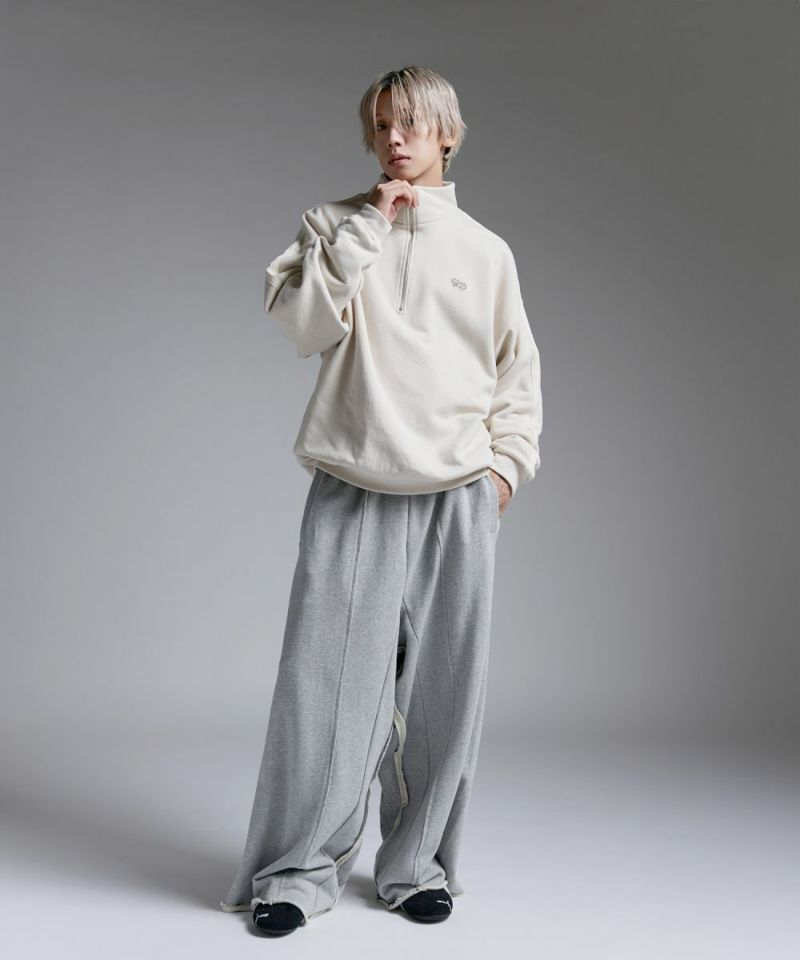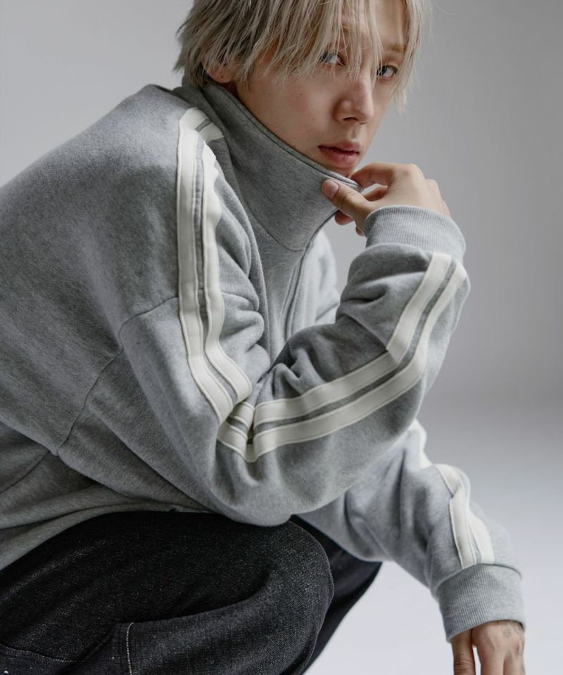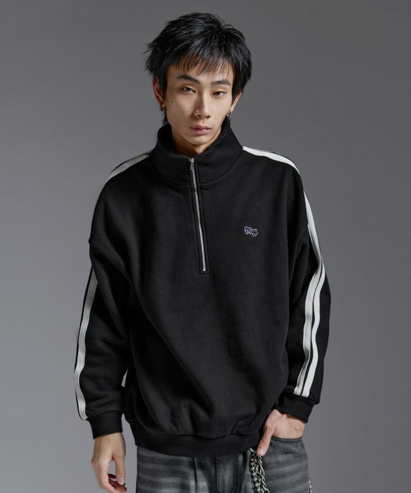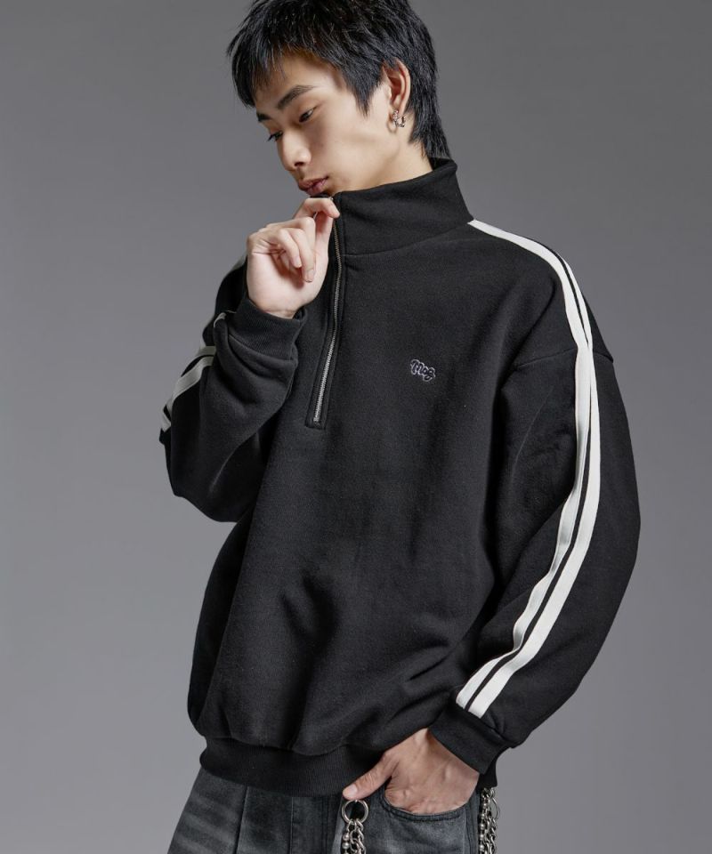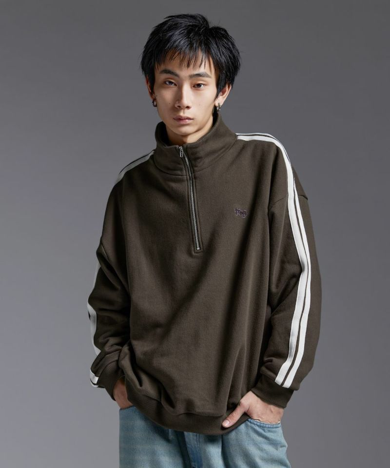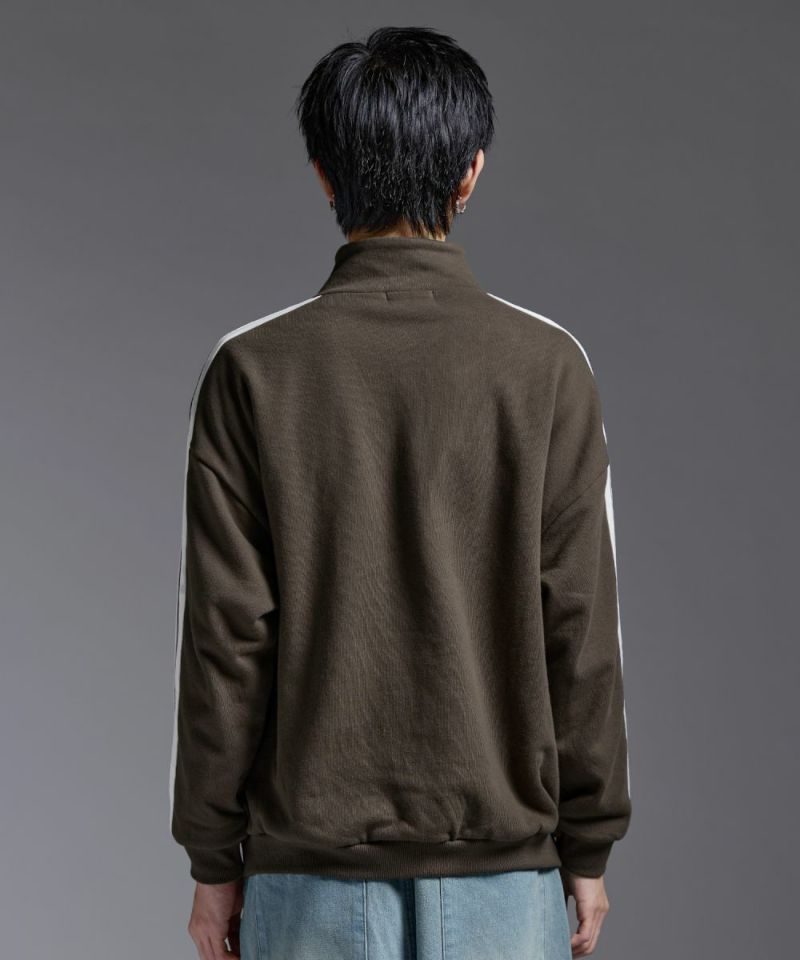 ・ハーフジップタイプのスウェット地プルオーバー。