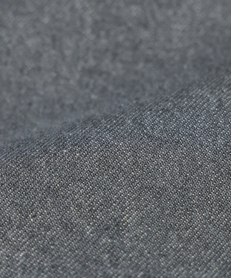 ハリ感がありながらも、着用時には柔らかさを感じられる生地で、快適な着心地に仕上げています。着用を重ねることで風合いの変化も楽しめ、シーズンを問わず着用しやすい素材感です。