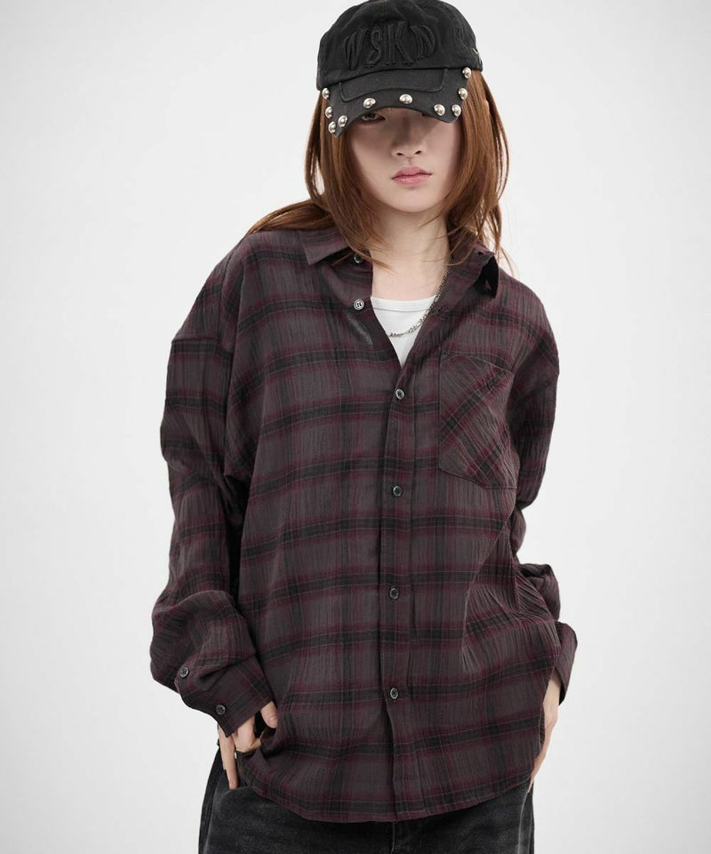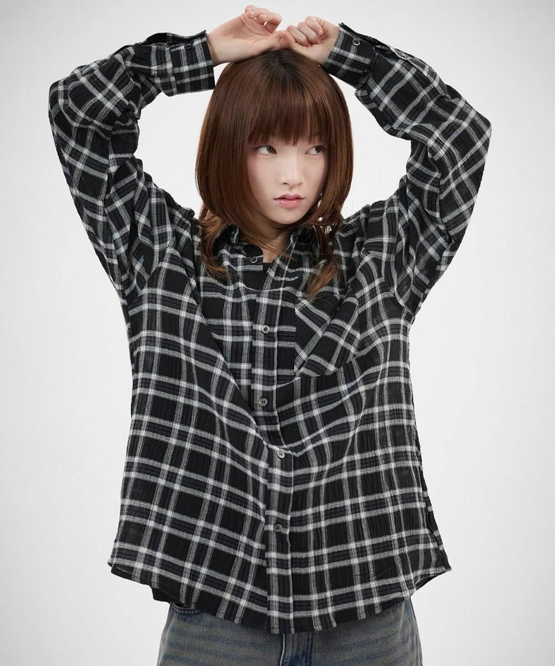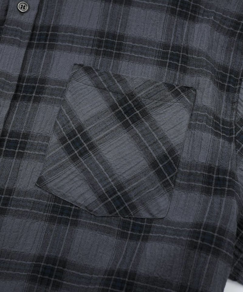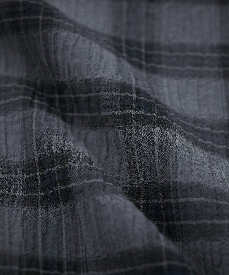 軽やかな透け感が魅力の、リンクルシアーチェックシャツ。