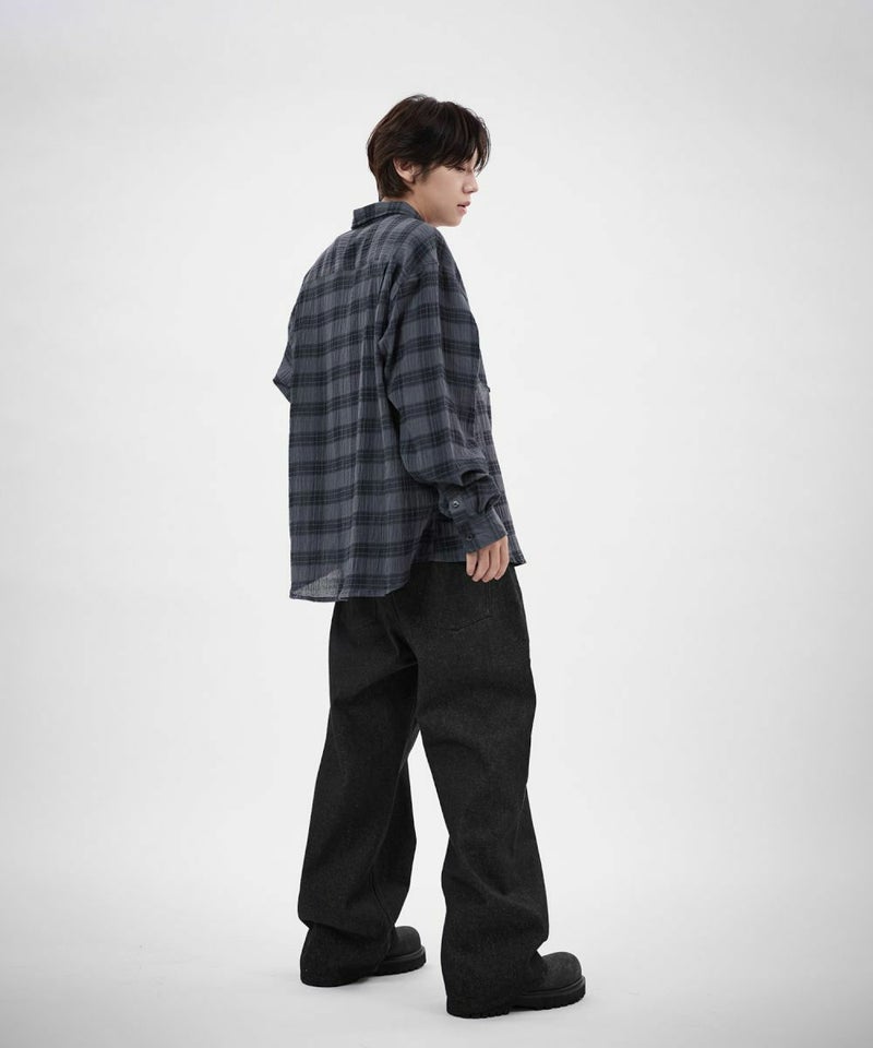 表面に施したさりげない凹凸感(リンクル加工)が、ナチュラルな立体感を生み出し、奥行きのあるチェック柄を引き立てます。