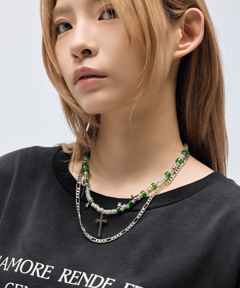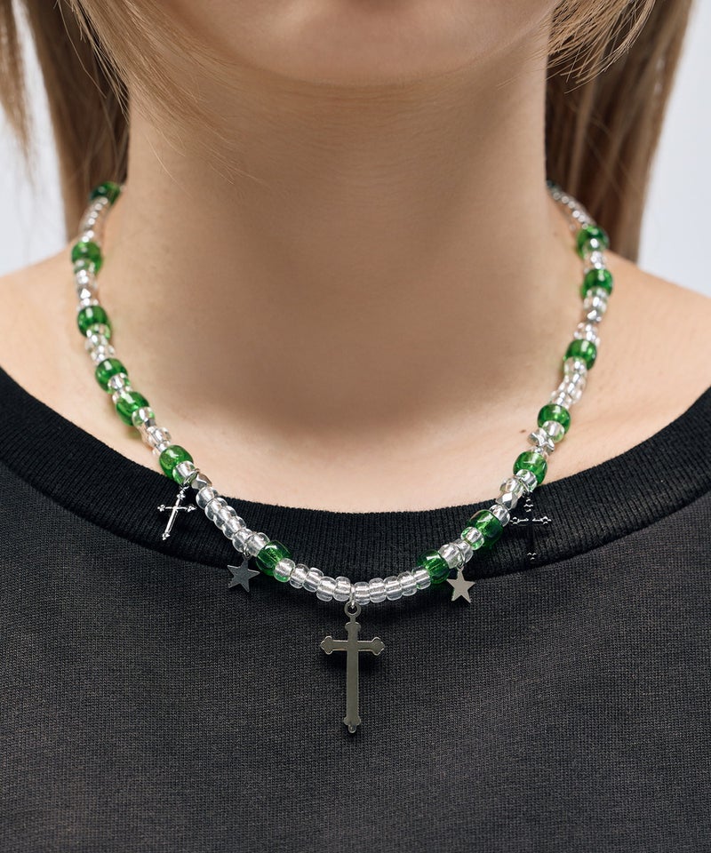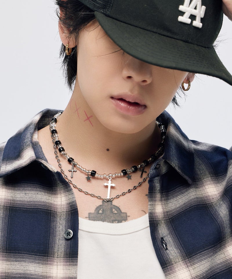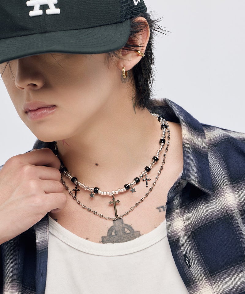 中央にはクロスやスターなど、マルチチャームがさりげなくアクセントを与えます。