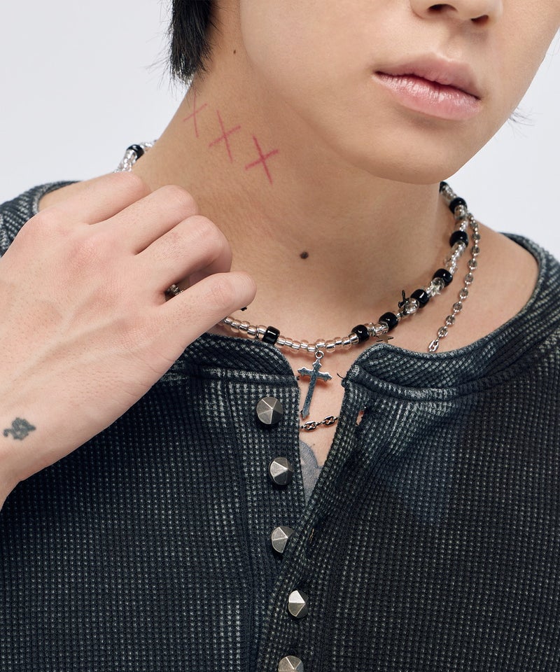 単体での着用はもちろん、お手持ちのネックレスとの重ね付けでさらに重厚な雰囲気を楽しめます。