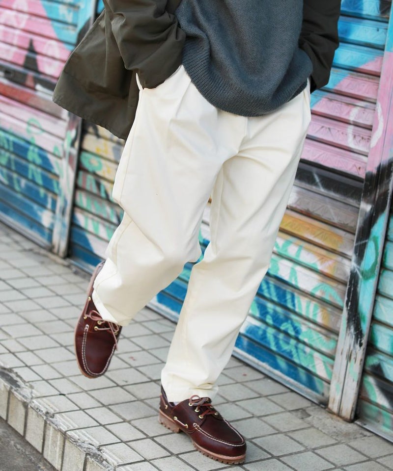 動きやすさ&ファッショナブルなスタイル不問のシェフパンツ。もともとは仕事着として現場のシェフたちが着用していたということから、厨房で忙しく動き回ってもずり落ちてこないように、ウエストはゴム仕様&紐で調節ができるように作られています。ベルト要らずで着用できる手軽さと、締め付け感の少ないイージーさが魅力です。シーズンやトップスに合わせて何枚でも持っていたくなるコストパフォーマンスに優れたアイテム。