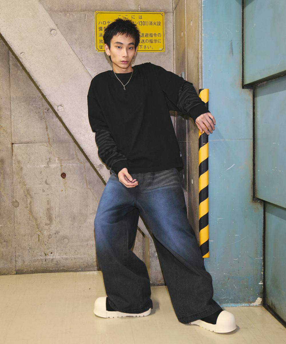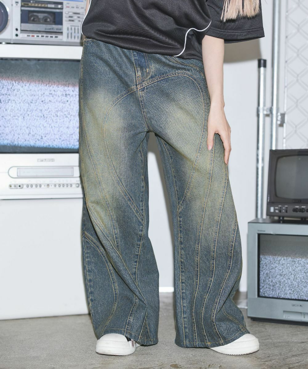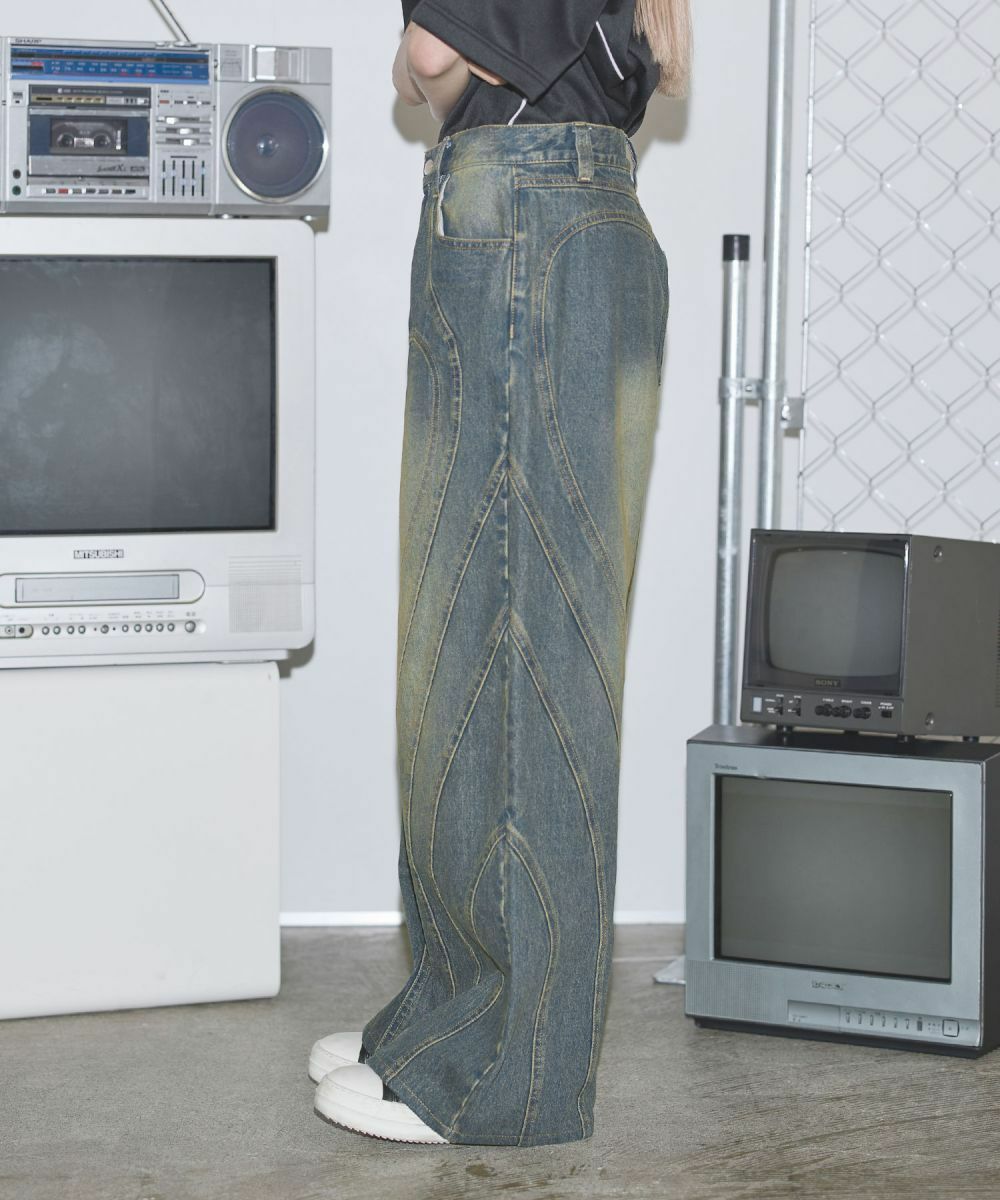 他の画像を見る MSG オーバーダイ/ウォッシュ加工オーバーサイズウェーブ切替ワイドストレートバギーデニムパンツ 11.5oz 定価 ¥ 6,930 のところ ¥ 3,960 税込 カートに入れる お気に入りに登録する