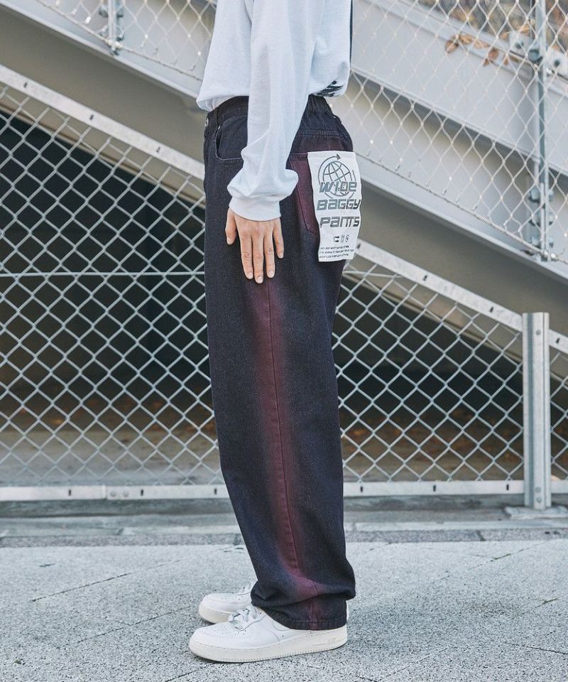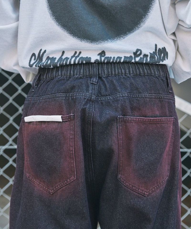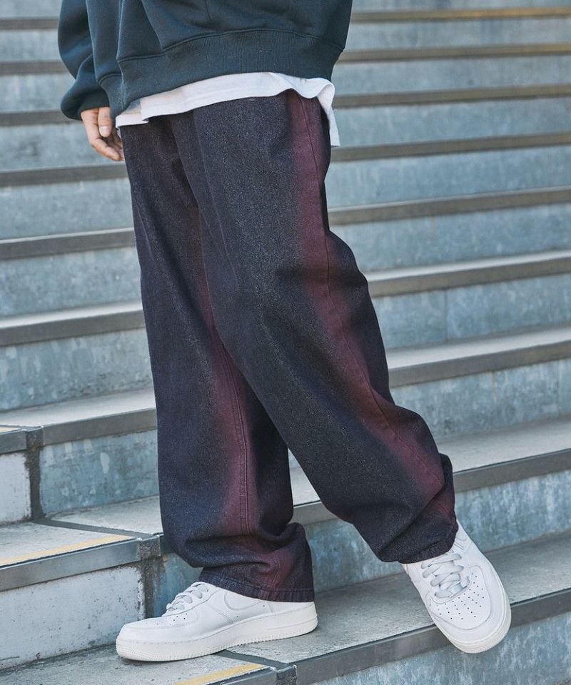 スプレープリントワイドバギーデニム