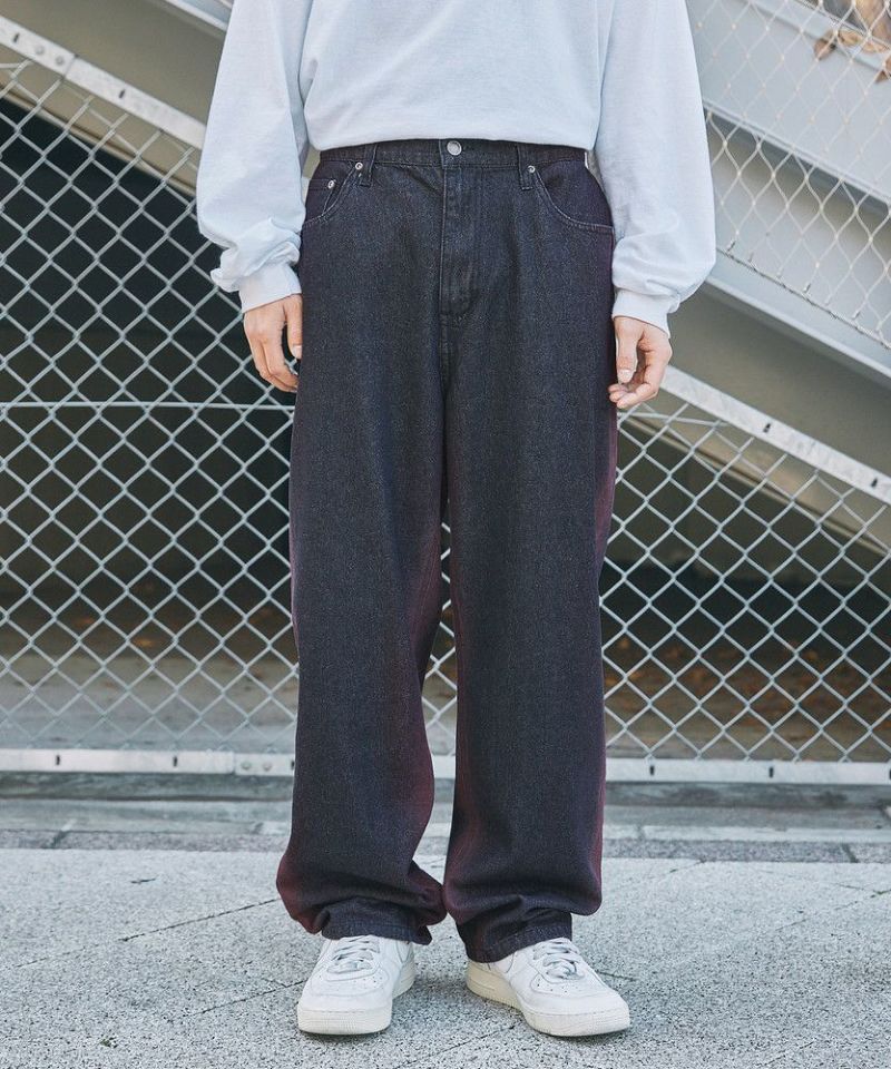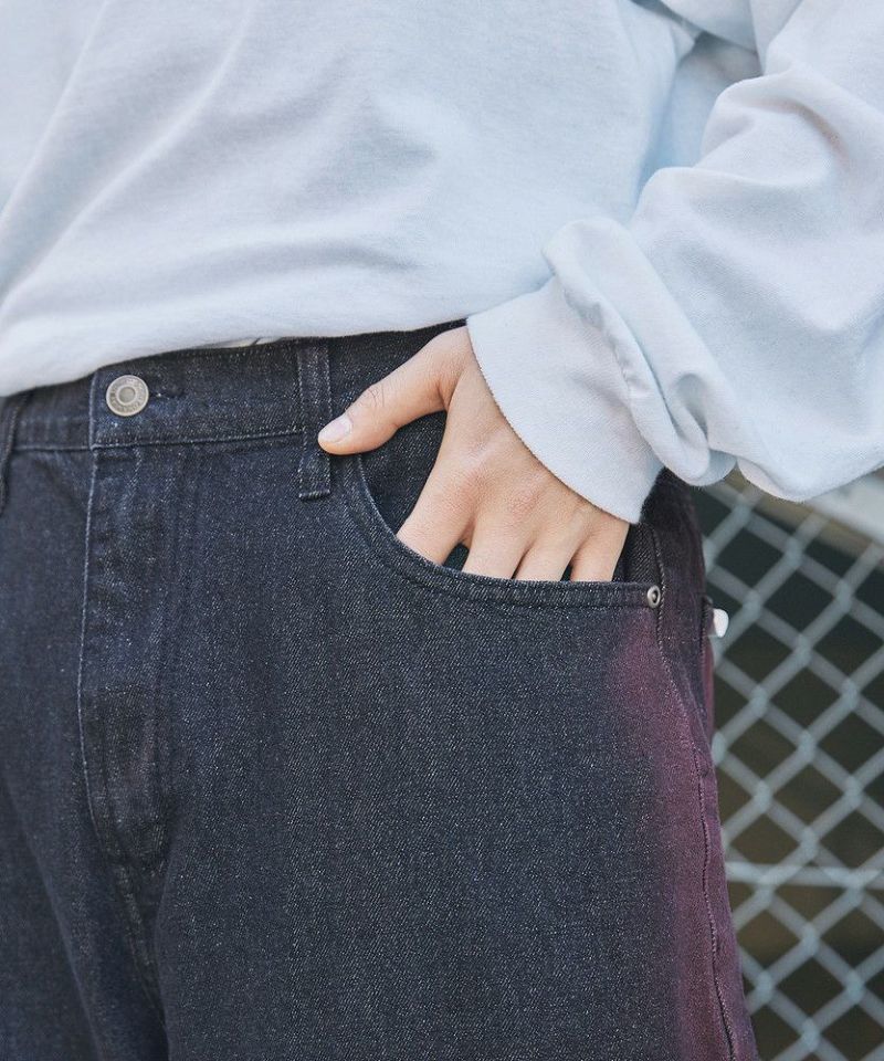 古着ミックスやストリートコーデに最適な一本で、ルーズなトップスを合わせたリラックス感のあるスタイリングがおすすめ。ベーシックなデニムパンツとは一味違う、シンプルながら着こなしのアクセントになるアイテムです。