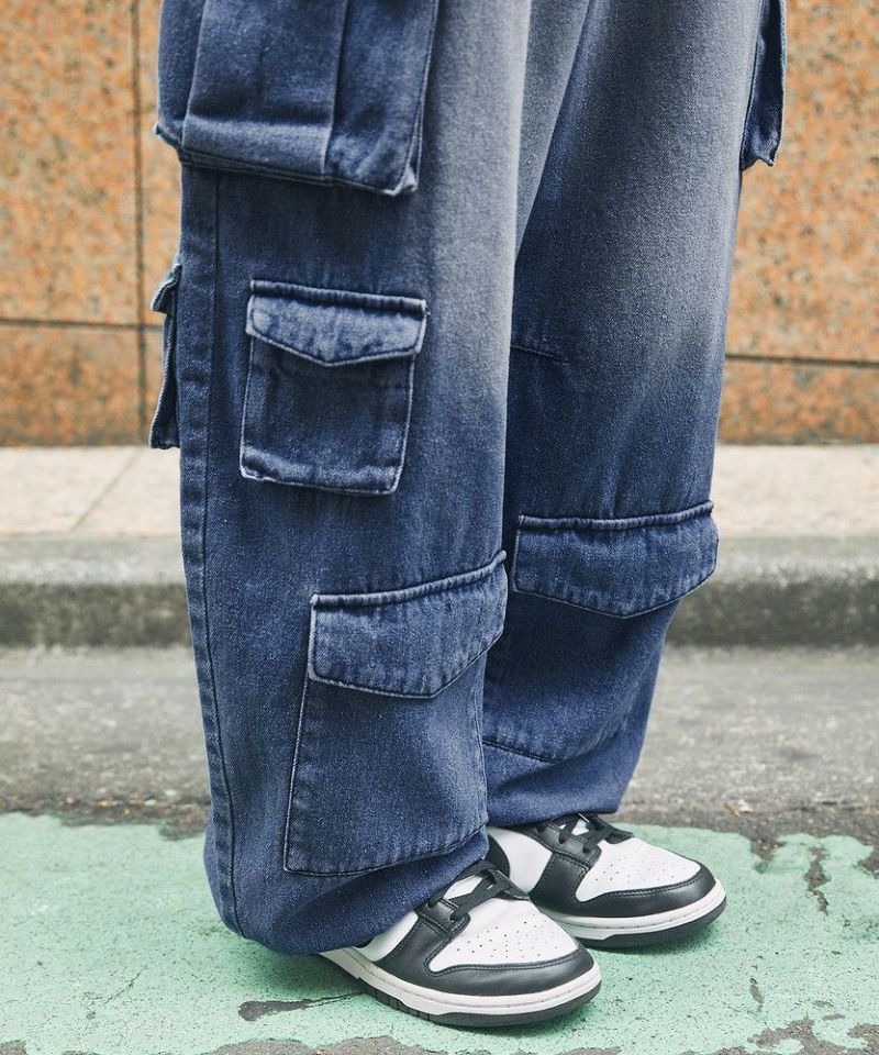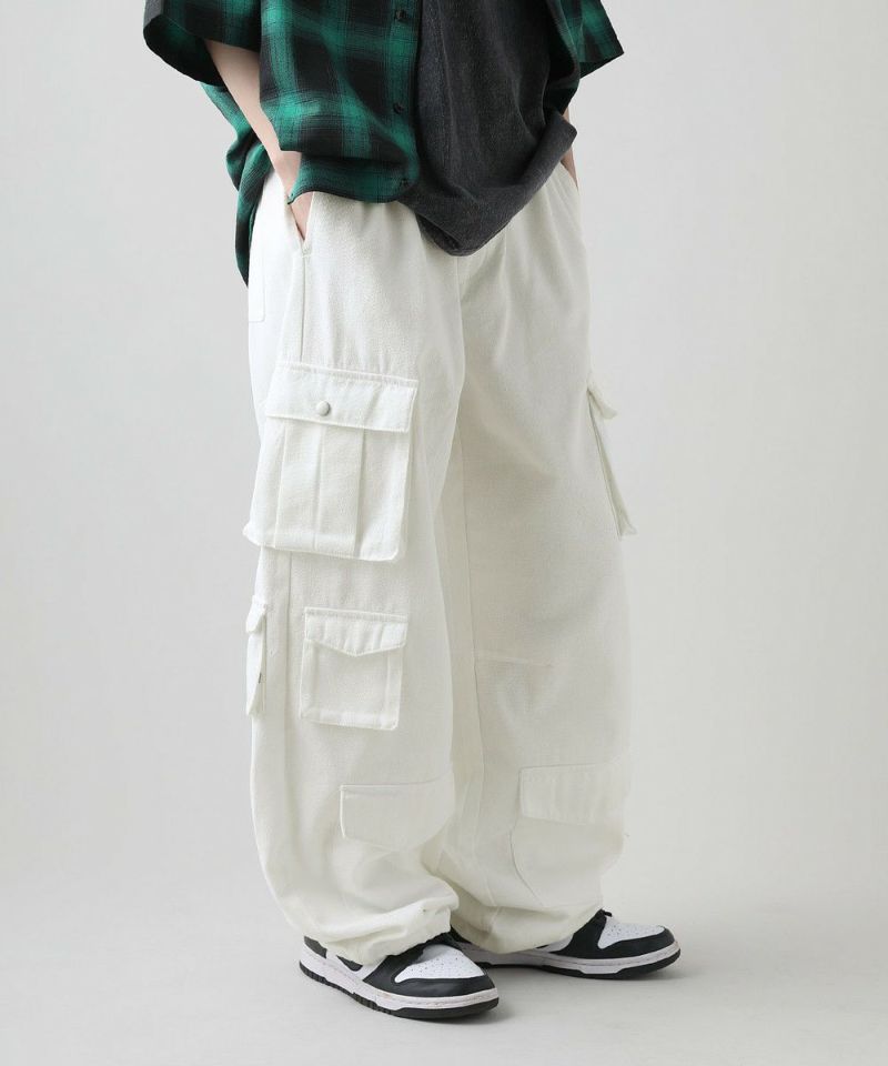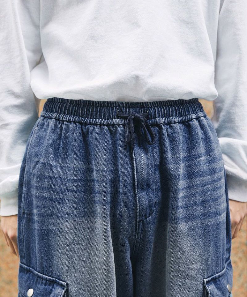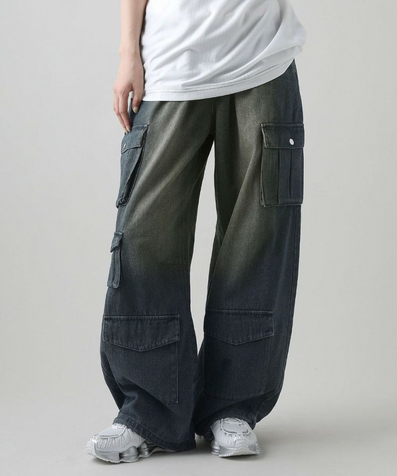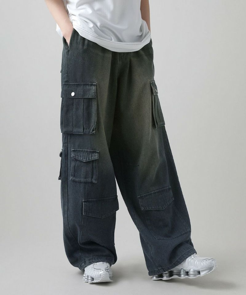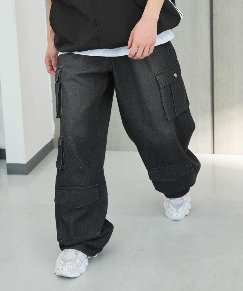 ナイロン/デニムマルチポケットドレープバギーカーゴパンツ
