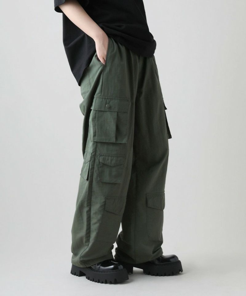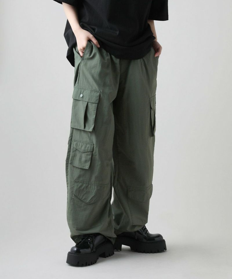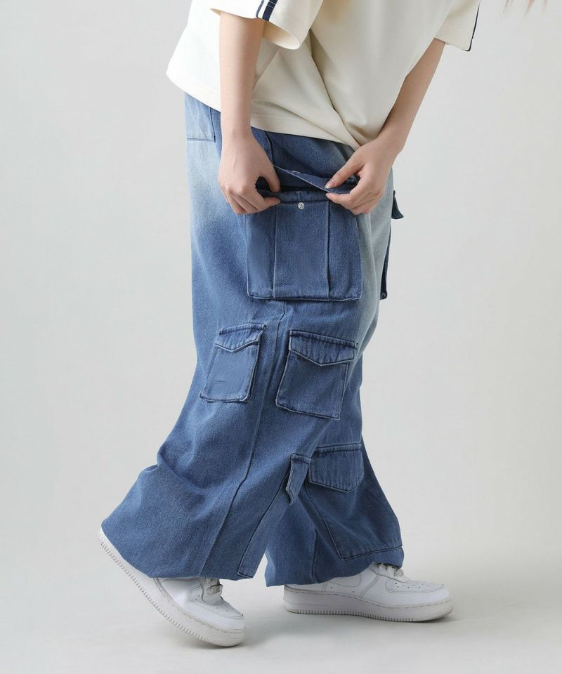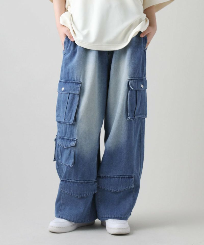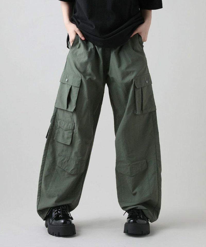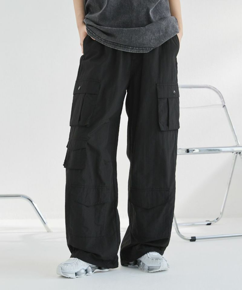 ナイロン/デニムマルチポケットドレープバギーカーゴパンツ