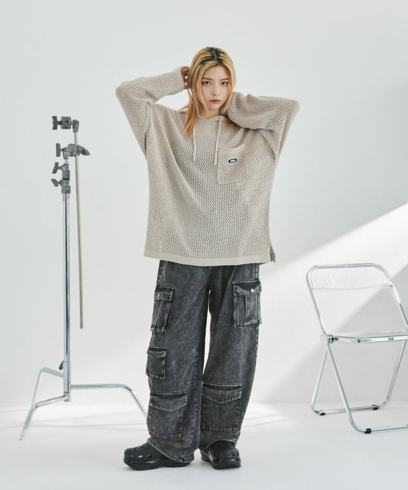 デニム素材は綿100%のデニム生地に、後加工を施した個性的な表情が特徴。