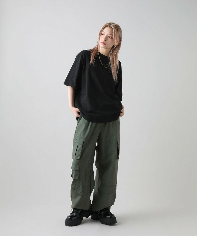 裾のドローコードで裾幅の調節ができるので、ワイドストレート・バルーンシルエットの2wayで着こなしが可能。
