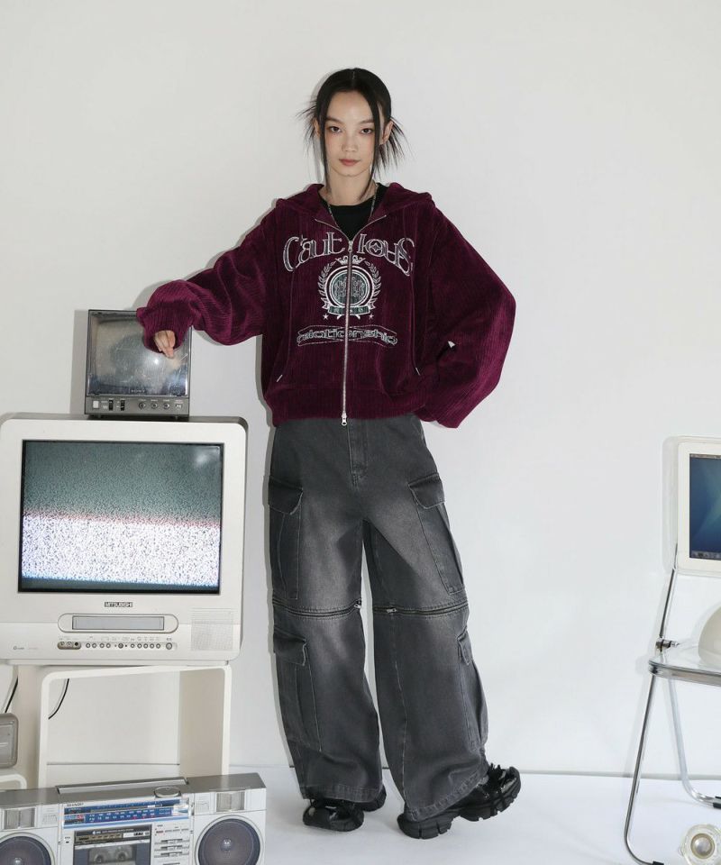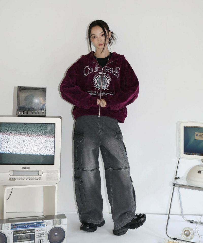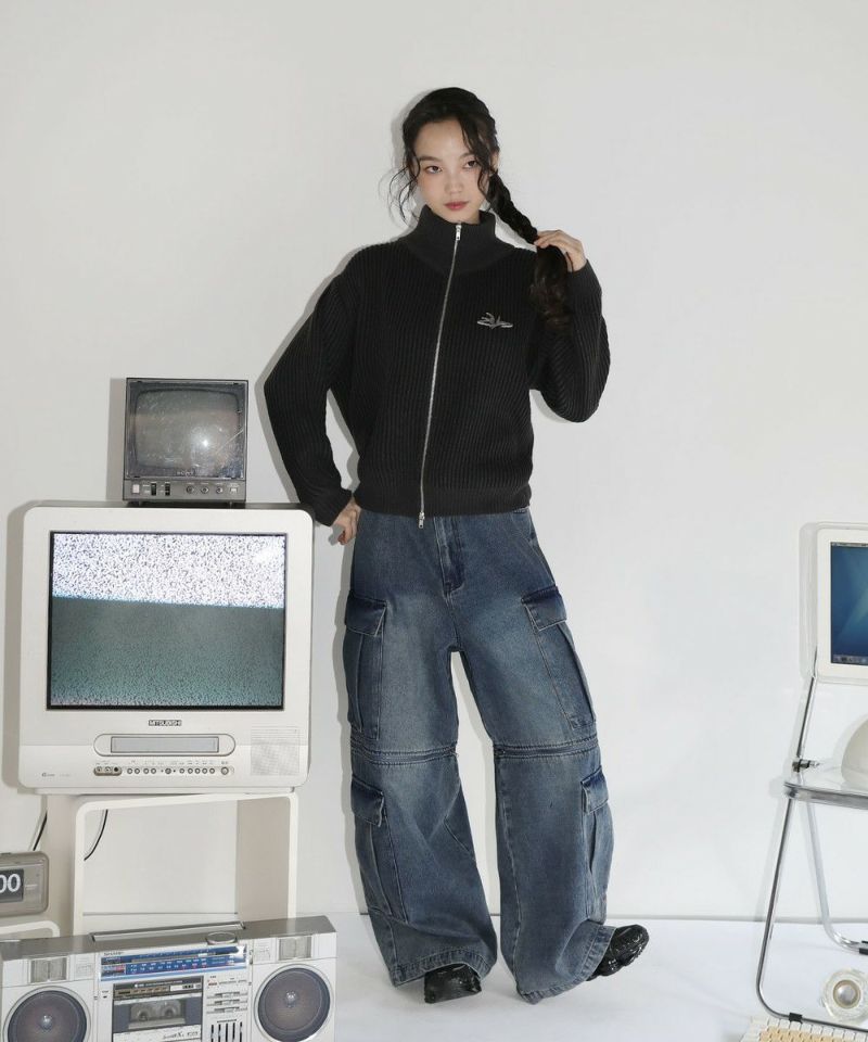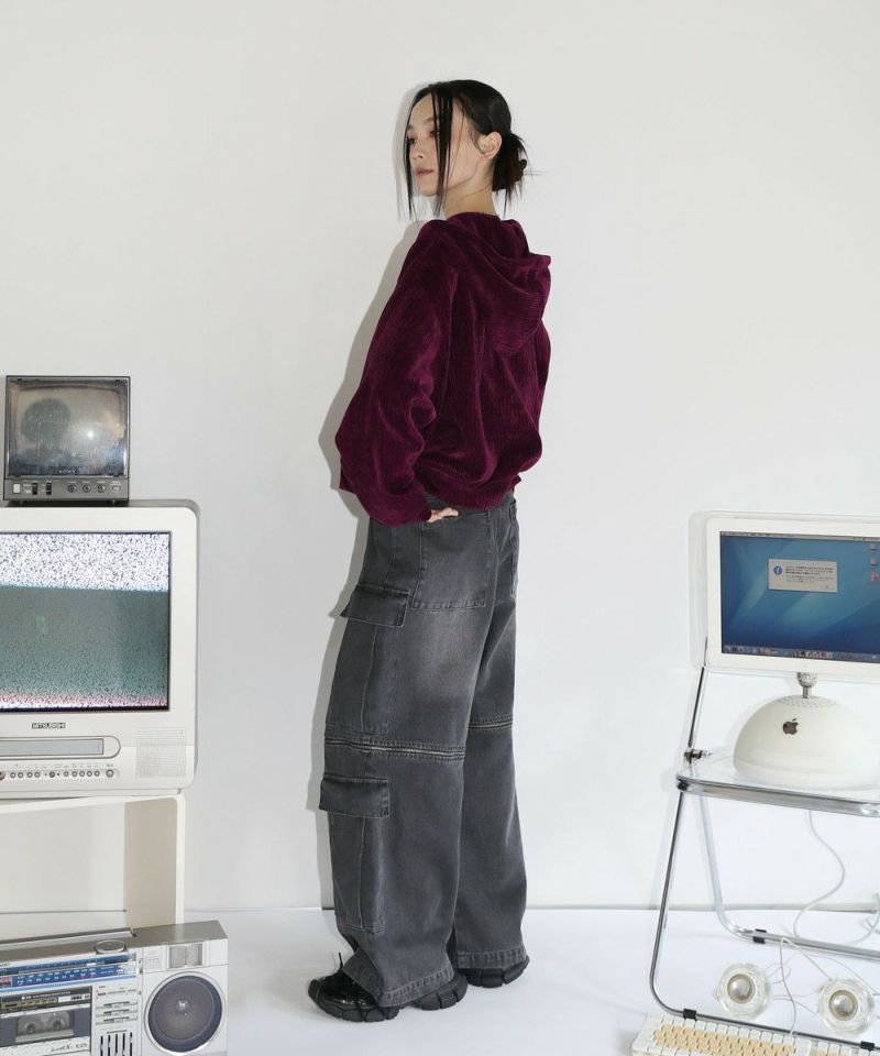 12oz オーバーサイズワイドストレート 2wayZIPカーゴデニムパンツ