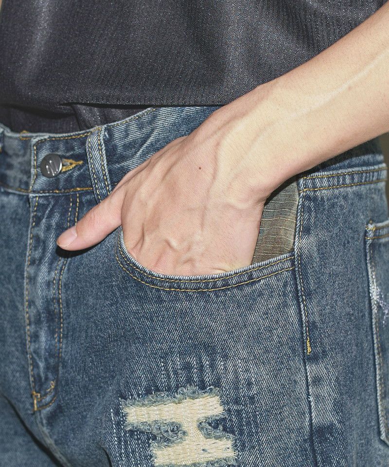 ・ダメージと補修がミックスされた独特のルックスで、コーディネートの主役にぴったり。