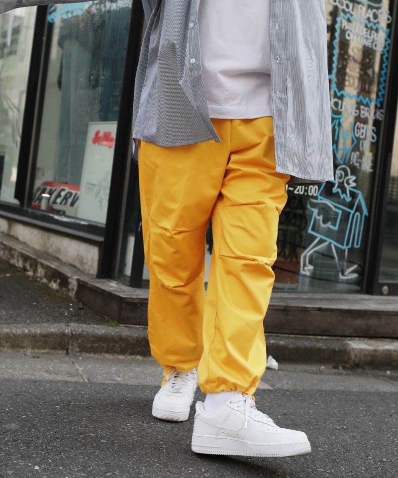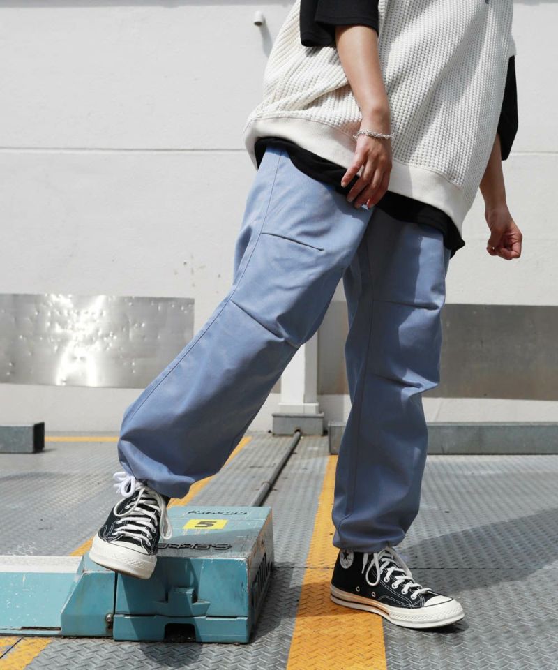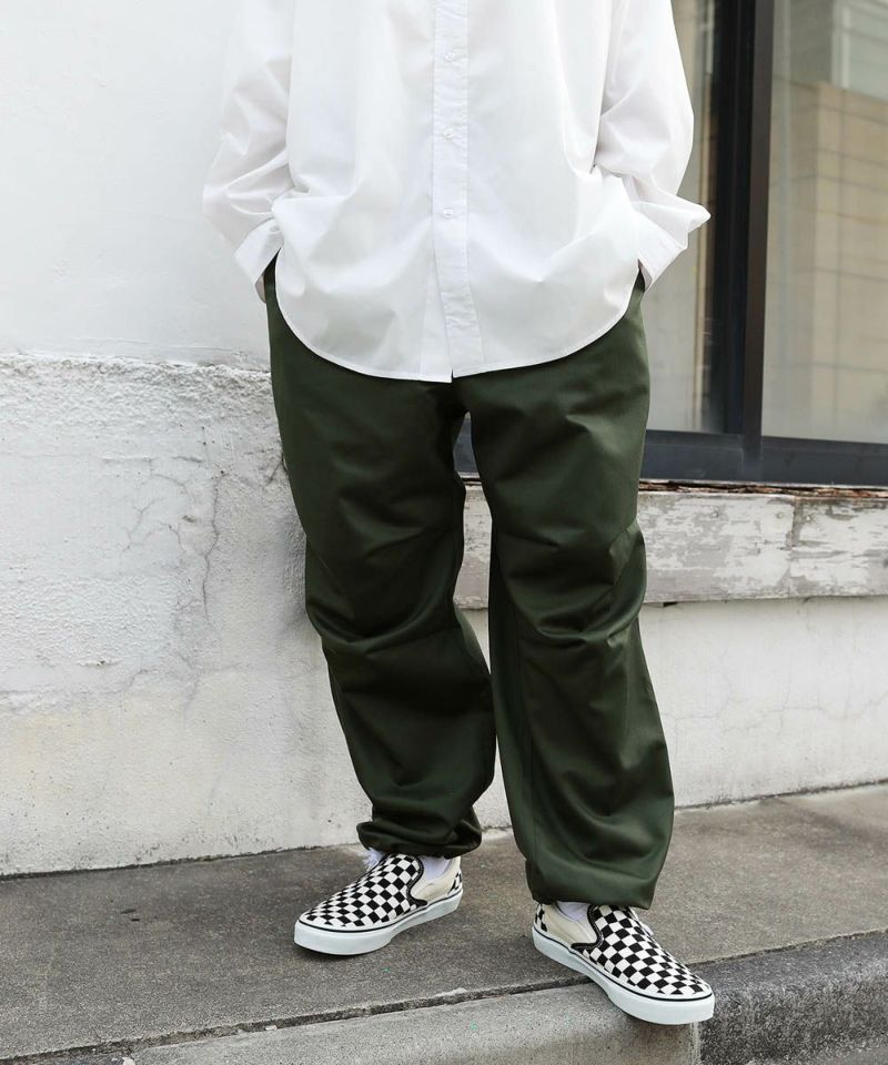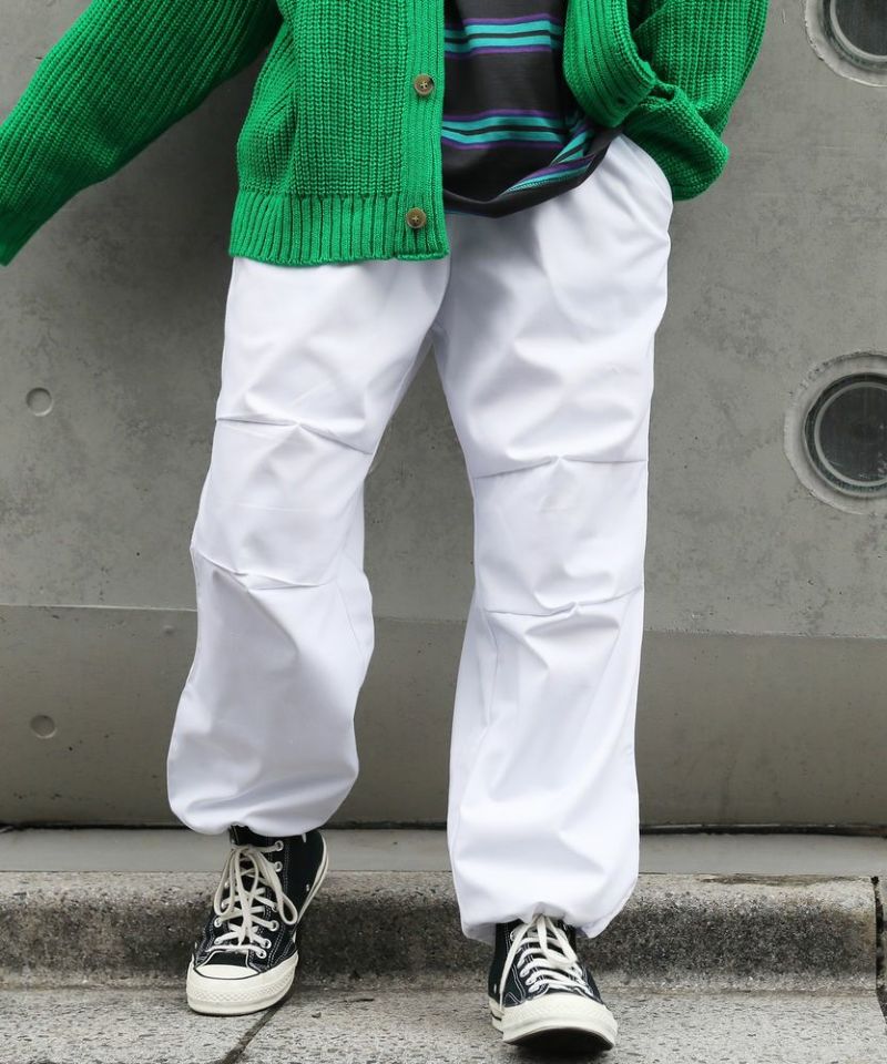 ゆったりとしたワイドシルエットと立体感あるデザインが特徴のスノーパンツ。降雪地帯で使用されるパンツをベースに作られており、膝のラインをしぼり、立体裁断された動きやすさとキレイなシルエットを両立。裾のドローコードを絞ることで着用時のシルエットに変化を着けて穿くことができます。シンプルで無駄のないデザインなのでスウェットやシャツ、Tシャツなどトップスを選ばすオールシーズン活躍します。