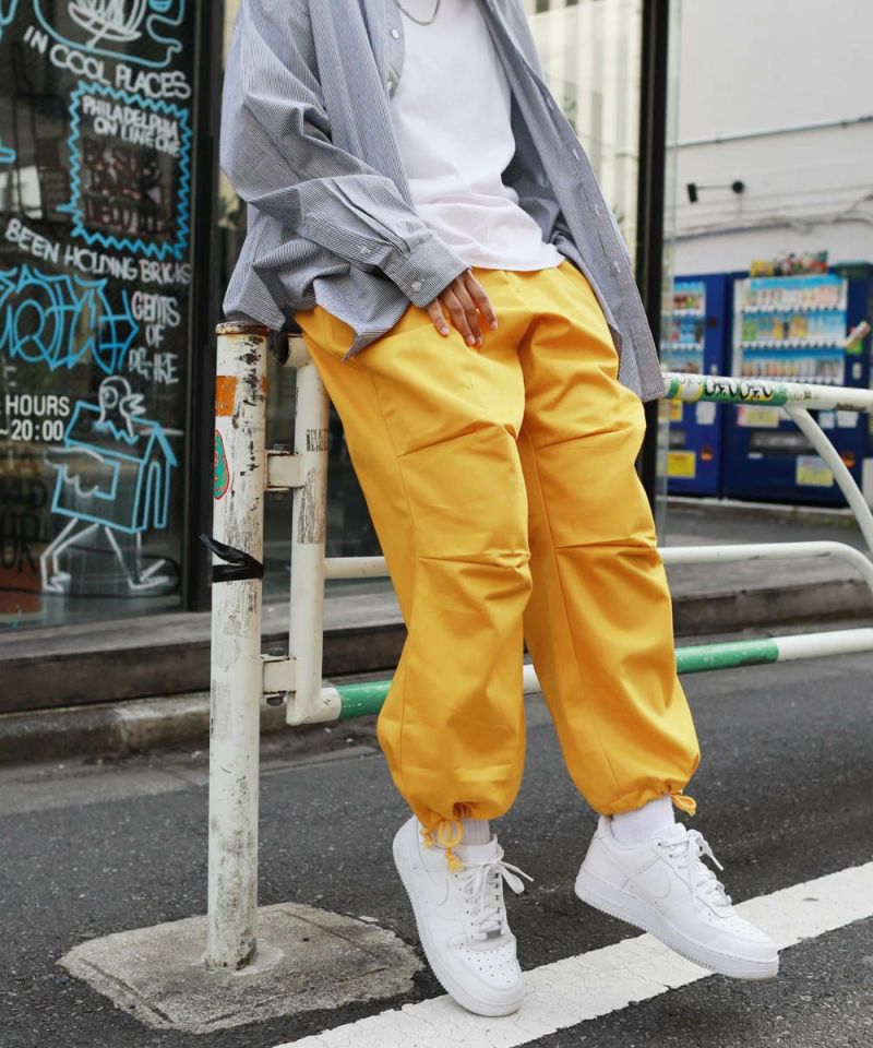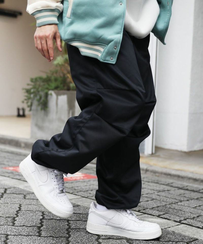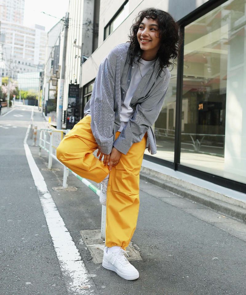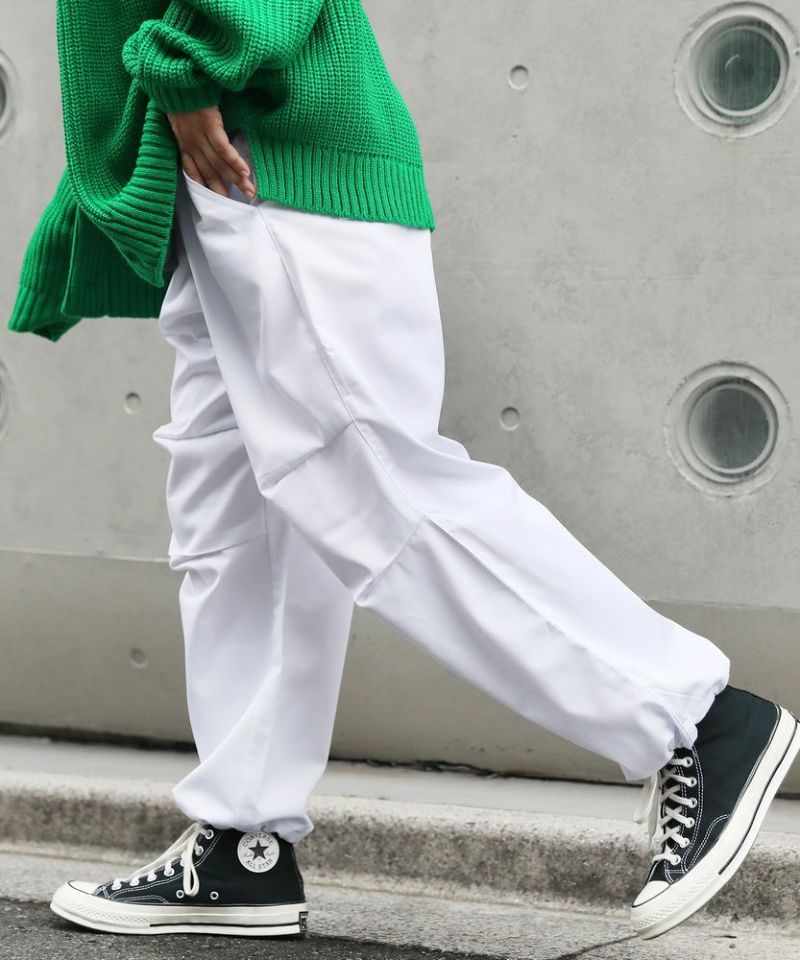 ルーズなトップスと合わせたストリートスタイルがおすすめです。ワイドパンツやシェフパンツなどと並び、使いやすさは抜群。シンプルなスニーカーやカットそーを合わせればトレンド感のある着こなしが完成します。