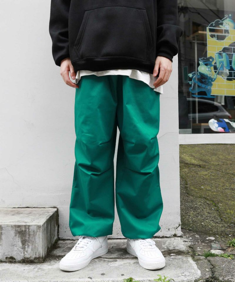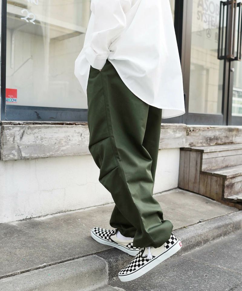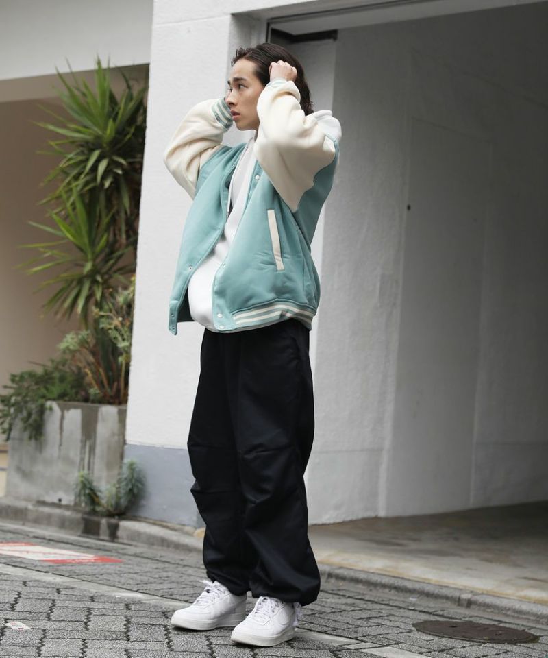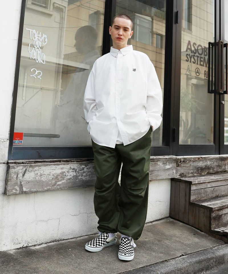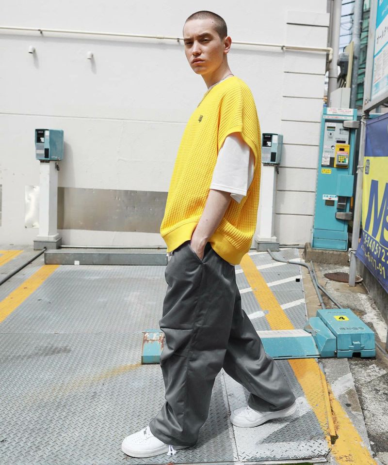ルーズなトップスと合わせたストリートスタイルがおすすめです。ワイドパンツやシェフパンツなどと並び、使いやすさは抜群。シンプルなスニーカーやカットそーを合わせればトレンド感のある着こなしが完成します。