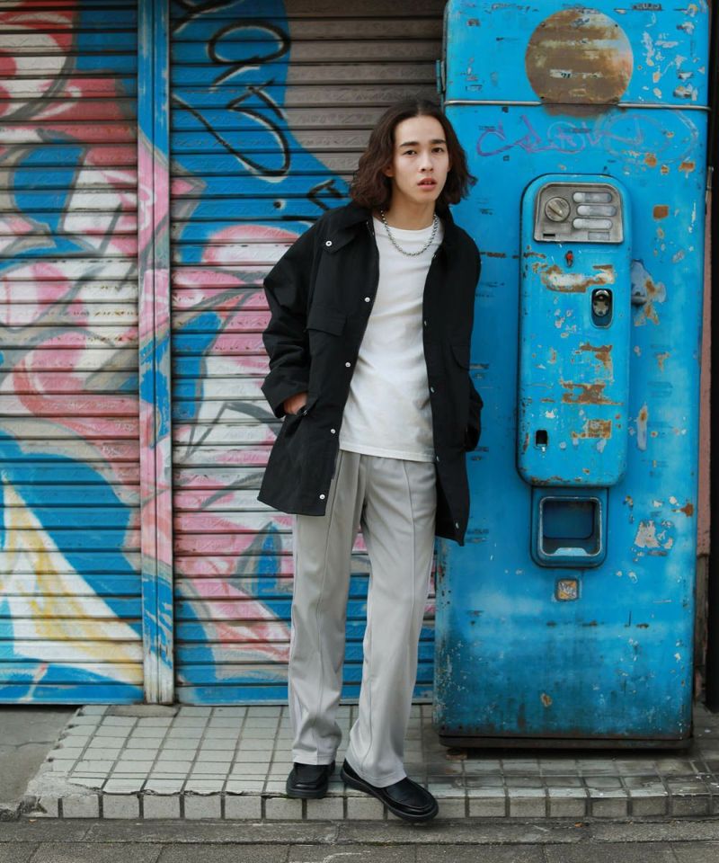 程よくゆったりしたストレートシルエットにサイドにラインを入れることで、スタイルが綺麗に見えるように計算されたデザインです。