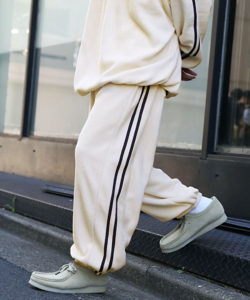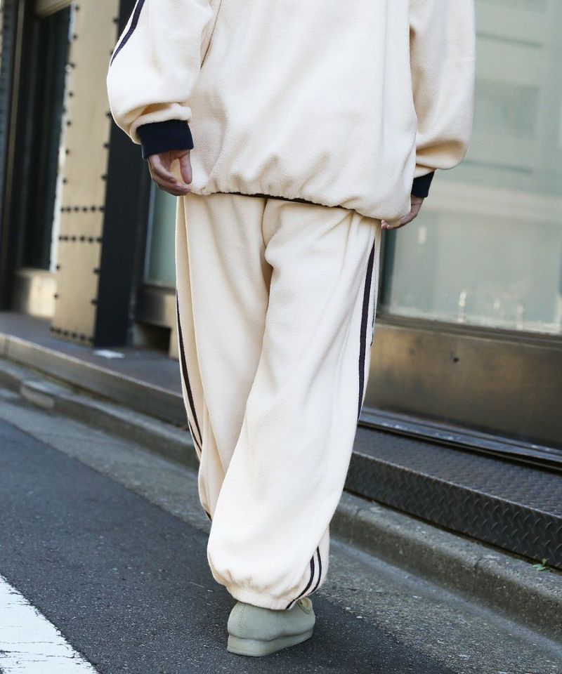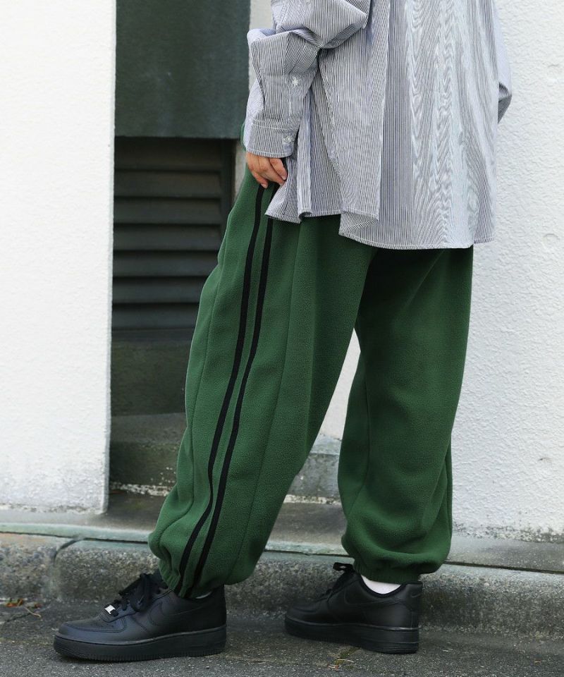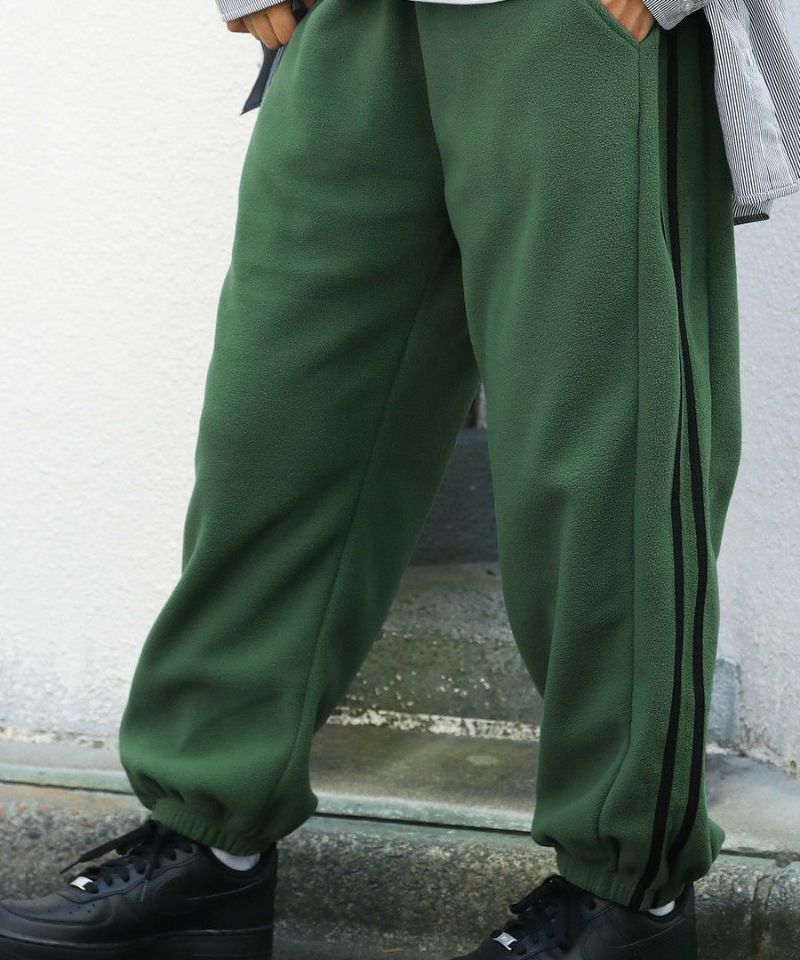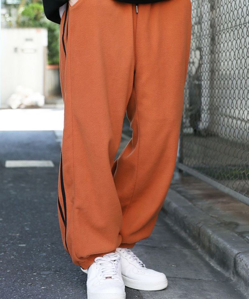 ワイドなシルエットながら裾のゴム仕様や、サイドに入ったラインがメリハリを与え、コーデにアクセントをプラス。(※サイドライン入りはアイボリー、オレンジ、ダークグリーンのみになります。)