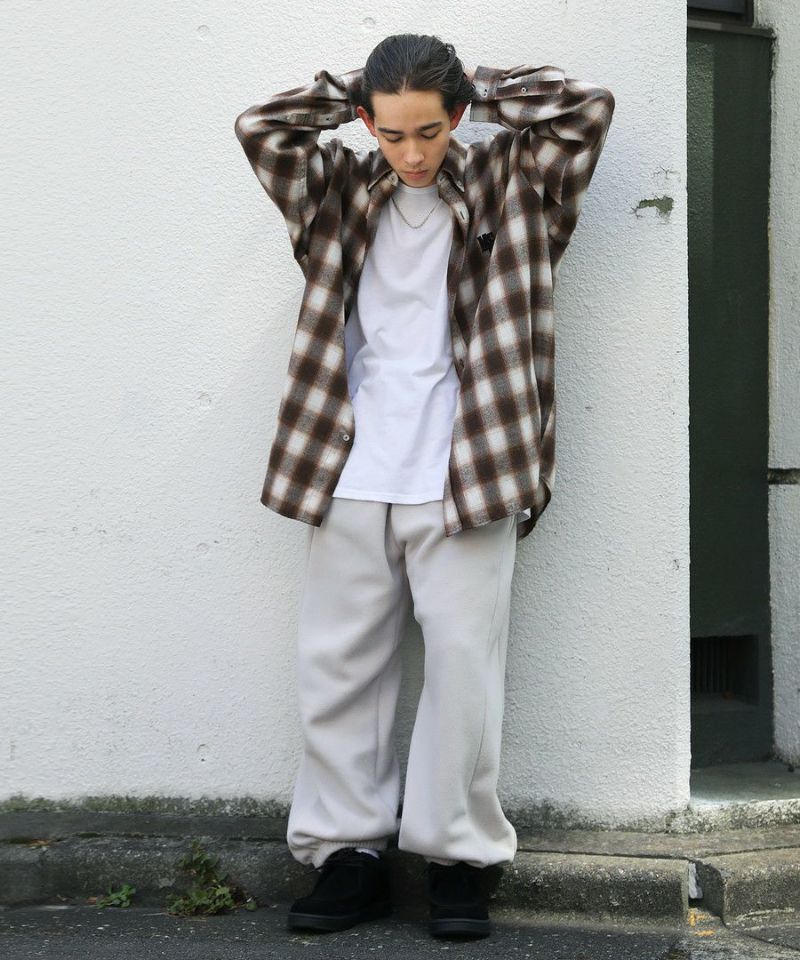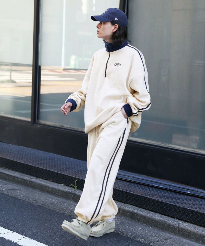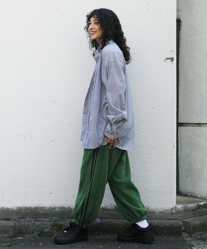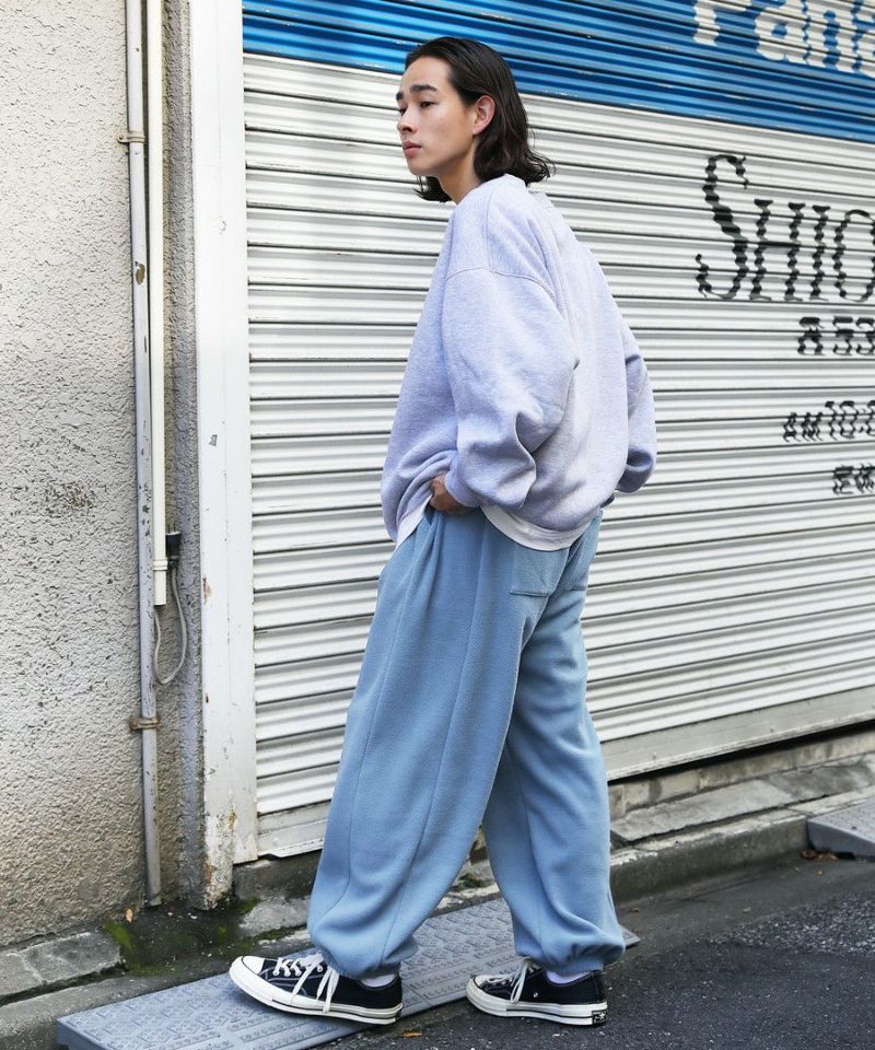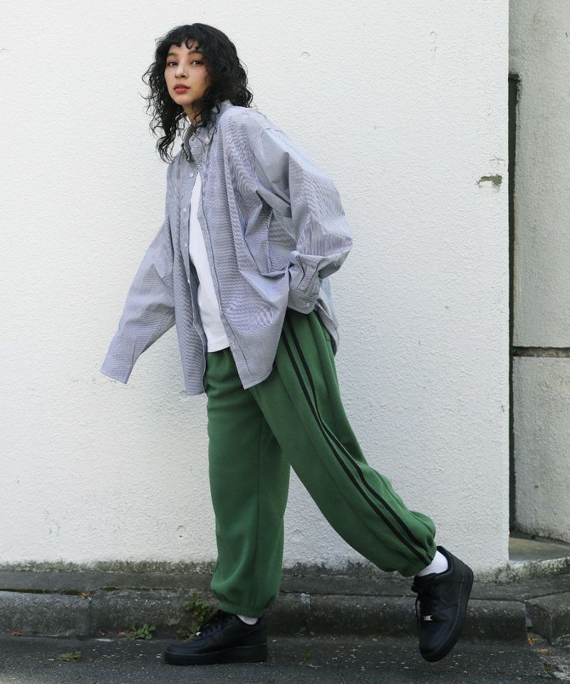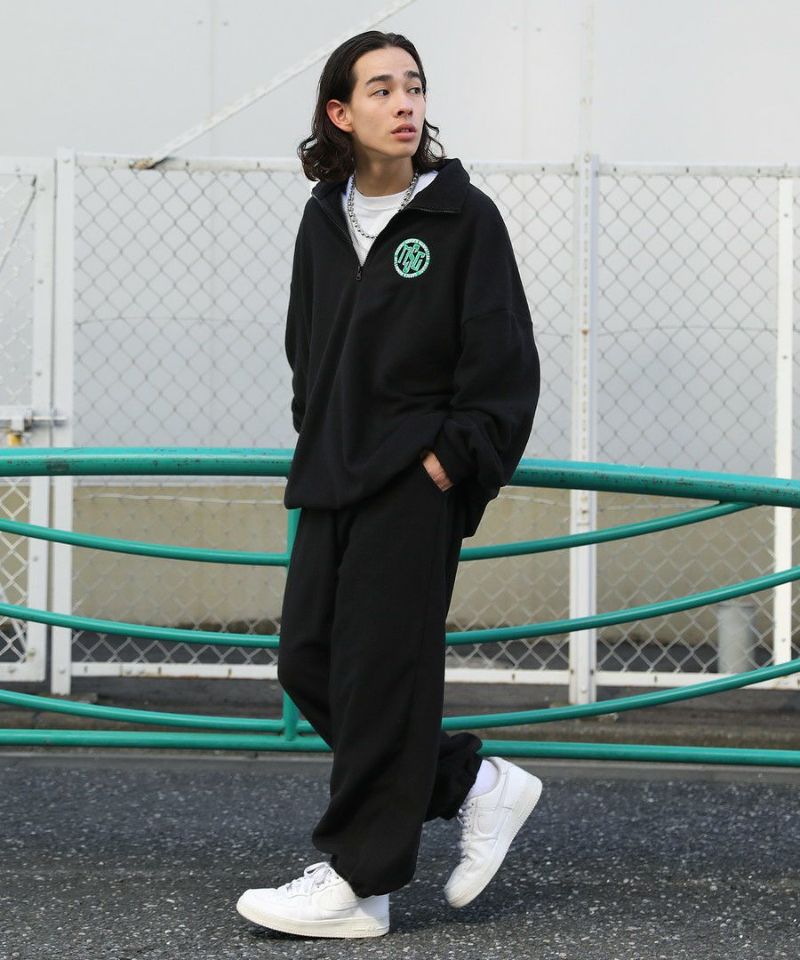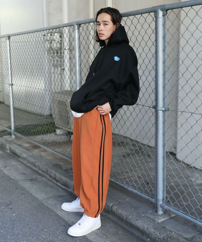 トップスもルーズなスウェットやシャツを合わせて、ストリートやスポーティースタイルに相性抜群です。