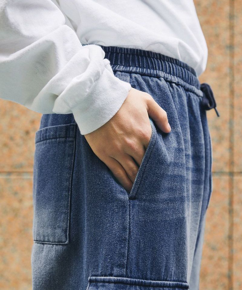 ナイロン/デニムマルチポケットドレープバギーカーゴパンツ