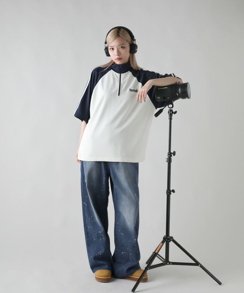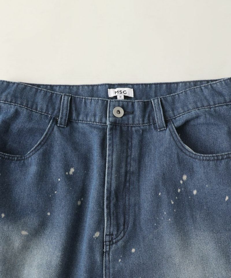 マルチ加工グランジバギーデニムパンツ ペイント加工/ペンキ加工